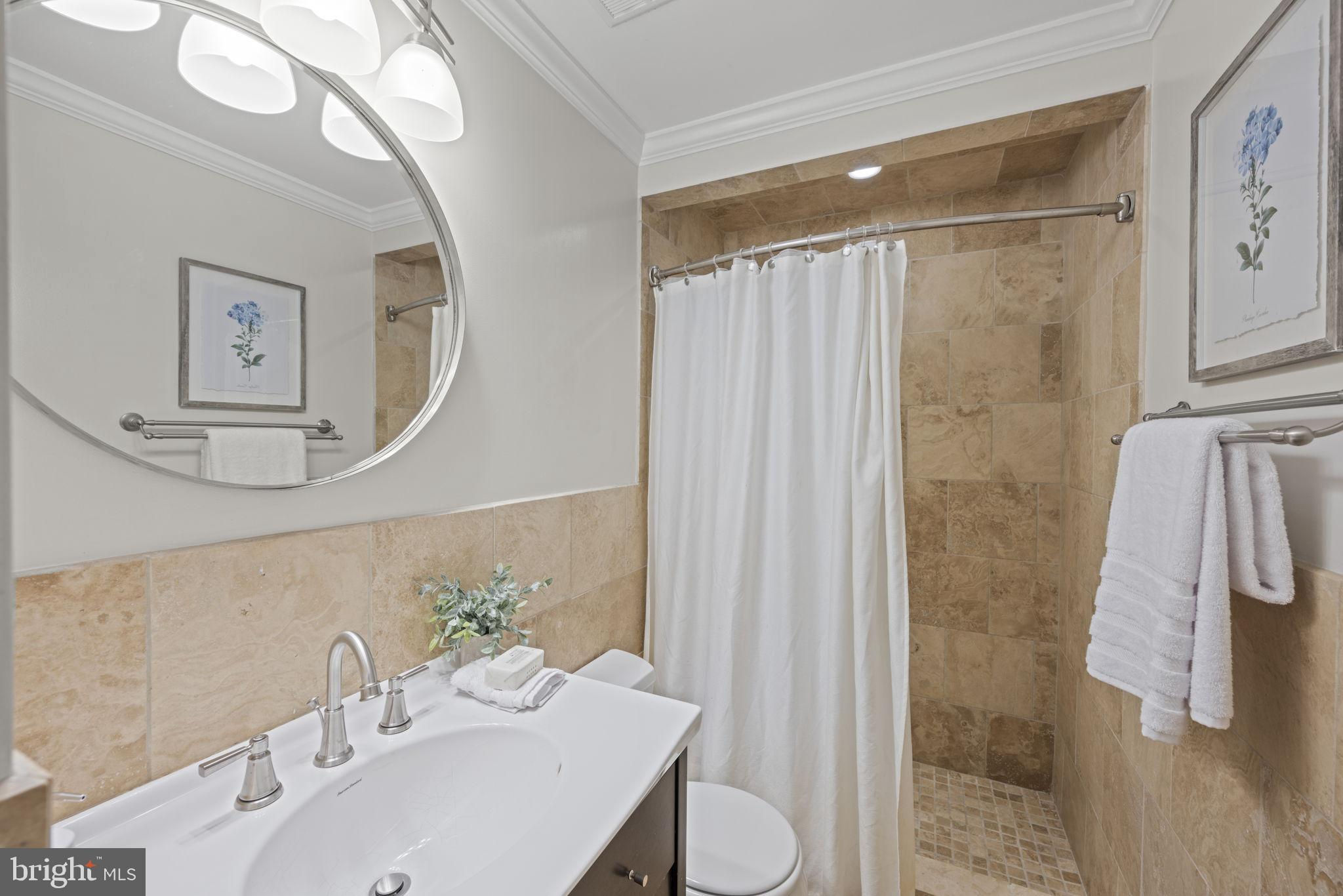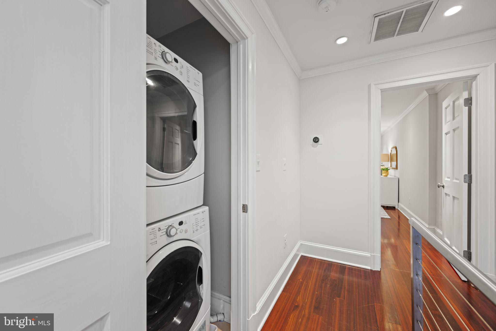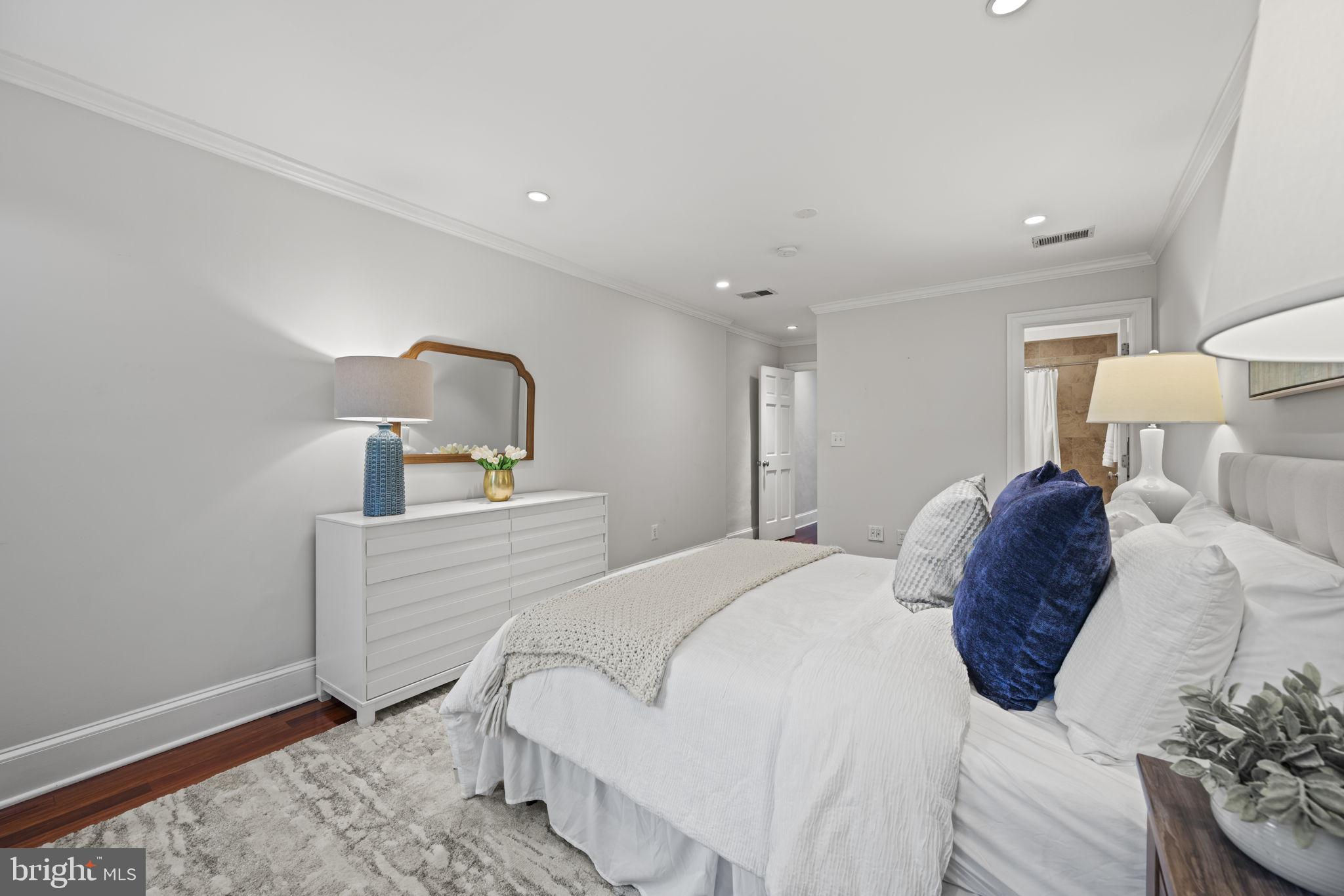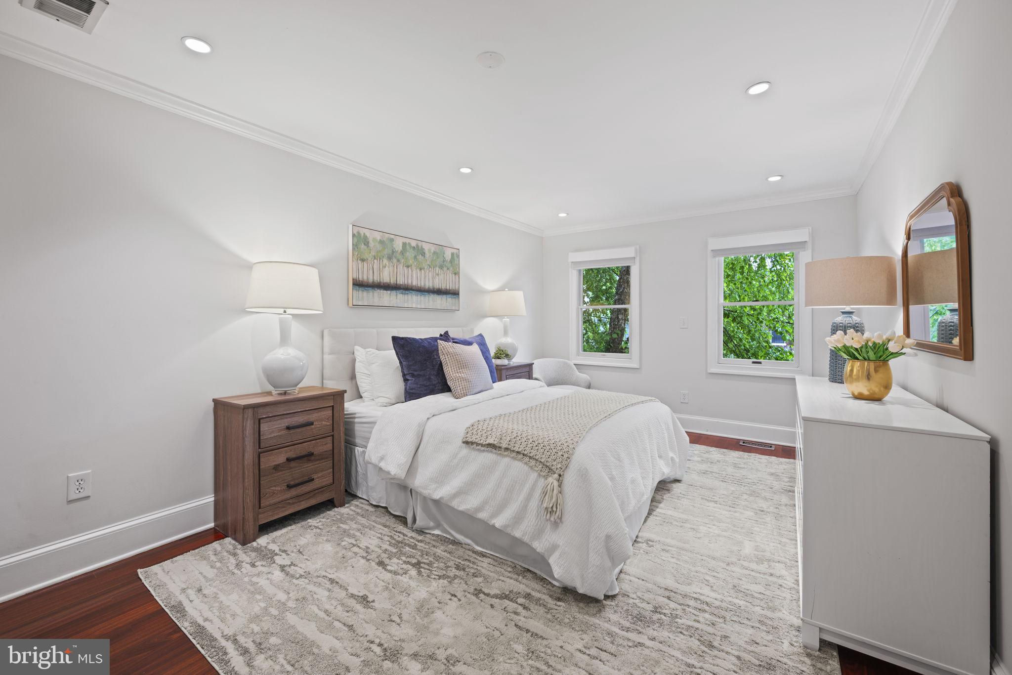 Originally built in 1880 and reconstructed to meticulous standards, this stunning two-bedroom, two-and-a-half-bathroom residence now boasts a contemporary 21st-century design behind a historic Federal facade from the turn of the century. Situated on an exceptionally deep lot spanning 99 feet, the property allows for an impressive open floor plan, lofty ceiling heights, and generously proportioned rooms. Its East/West orientation welcomes ample morning sunlight to the front of the home and lovely sunsets enjoyed from the rear garden and flagstone terrace. Among its notable features are a chef's kitchen with granite countertops and breakfast bar, stainless steel appliances including a gas range, and a dining area featuring an exposed brick accent wall. There is a convenient first-floor powder room, and a spacious family room/den with French doors opening to the rear garden, terrace, and private parking area. The second level comprises two expansive bedrooms and two full bathrooms, including the owner's suite which offers ample space for a king-sized bed, and an ensuite bath adorned with travertine marble tile and an oversized shower. The front bedroom is equally spacious, accentuated by a coffered ceiling with dual skylights. A new roof was installed in 2022, as well as a tankless hot water heater in 2023, and commercial-grade Carrier HVAC system in late 2020, both of which contribute to high efficiency and reduced energy consumption. With a front garden enclosed by a historic wrought iron fence and a newly landscaped garden, as well as a flagstone terrace and gated parking area at the rear, this home presents an attractive, private alternative to luxury condominium living. Positioned less than half a block from the METRO station, just two blocks from Whole Foods Market, and steps from the shops and restaurants along the vibrant U Street Corridor, this property offers a rare opportunity for refined urban living .