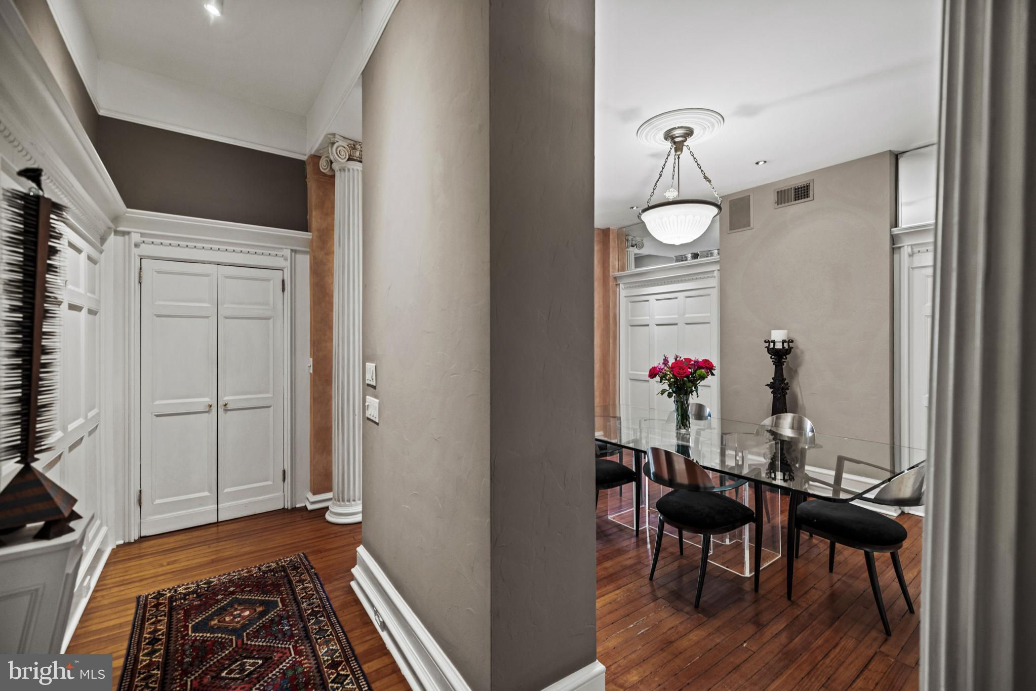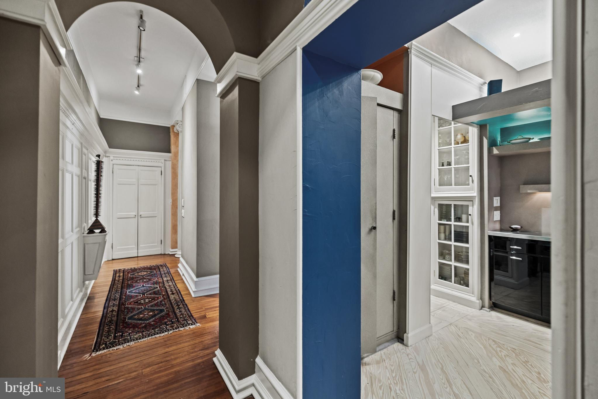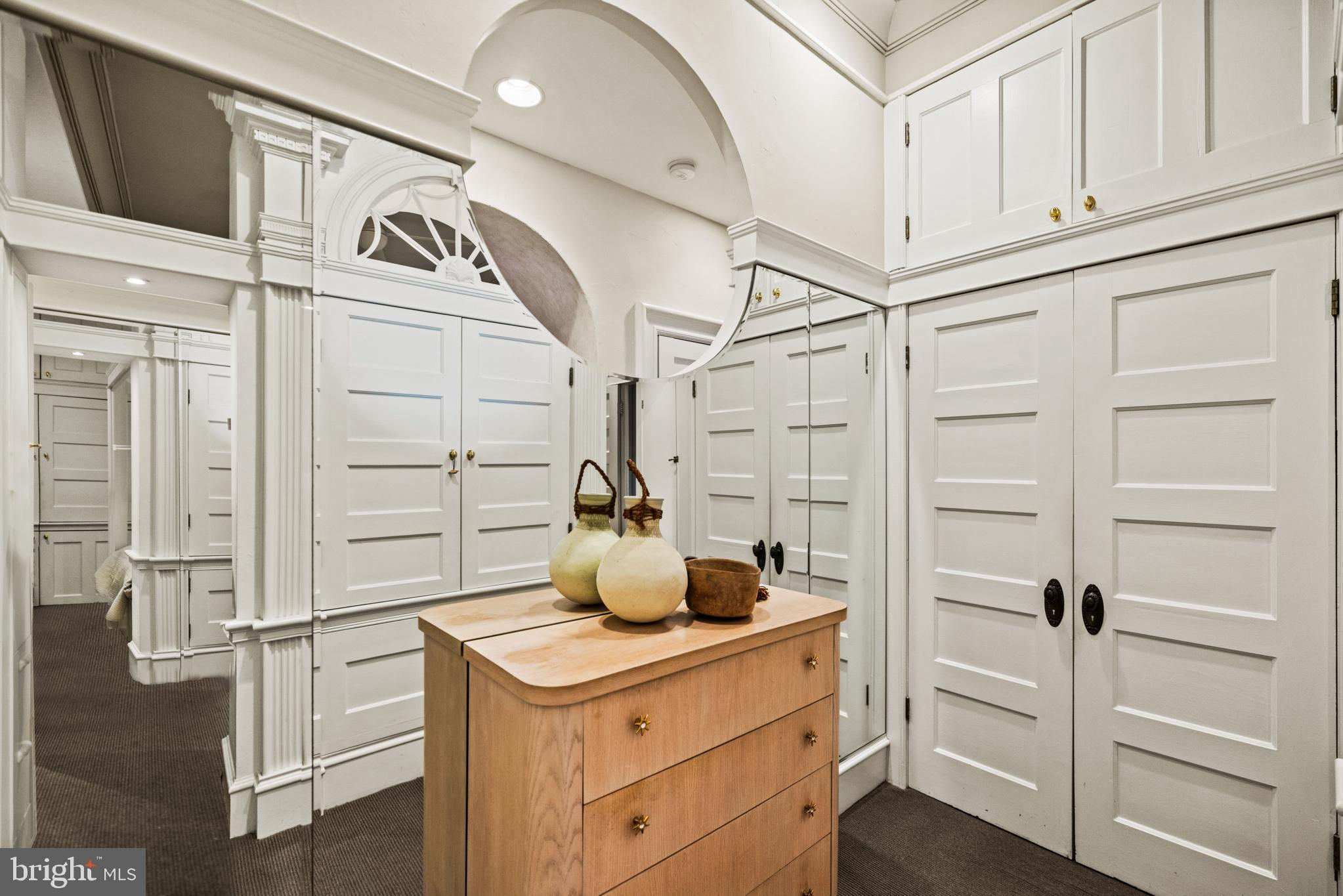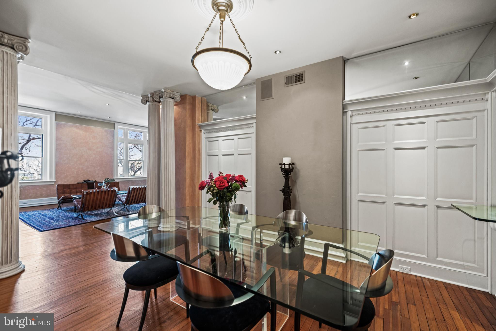 Major price reduction! Welcome to The Wyoming, a "Best Address" in Washington, DC, exuding early 20th-century grandeur. This rare Beaux Arts condominium offers a blend of historic charm with urban city living. Listed on the National Register of Historic Places, The Wyoming was formerly home to notable figures such as Activist and author Betty Friedan and former President Dwight Eisenhower. The ornate marble lobby was featured in the Clint Eastwood movie, "Absolute Power." The building offers 24-7 concierge, a stunning shared roof-top deck, a common indoor space, and a lush rear garden with a play area for children. A captivating home with tales to tell as the former lobby before the second wing was built by architect B. Stanley Simmons and developer Lester A. Barr. The home's imposing columns and distinctive built-in cabinetry stand as a reminder of the space's past life as the entry to the building. You'll find typical Beaux Arts features—tall ceilings, arched doorways, large windows, and extensive millwork—plus unexpected, unique and dramatic renovations by the former designer owners in the 1990’s: a wild modernist character kitchen filled with built-in display nooks; bold bathrooms with flair; and a built-in primary canopy bed backed by a dressing room fit for a queen. You truly have to see this home to believe it. Located in sought-after Kalorama you'll be in the heart of DC and within walking distance to all that the city has to offer. Tons of local businesses and restaurants are just down the street in Adams Morgan, wonderful restaurants just blocks away in DuPont Circle, you'll have your pick of multiple Farmer's Markets within a stones throw. A plethora of green space awaits at the nearby Kalorama Park, walk to the Zoo, Georgetown, and Rock Creek with walking paths, dog parks, and horse trails. Just half a mile from the DuPont Circle metro and multiple options for transportation are right outside your door.