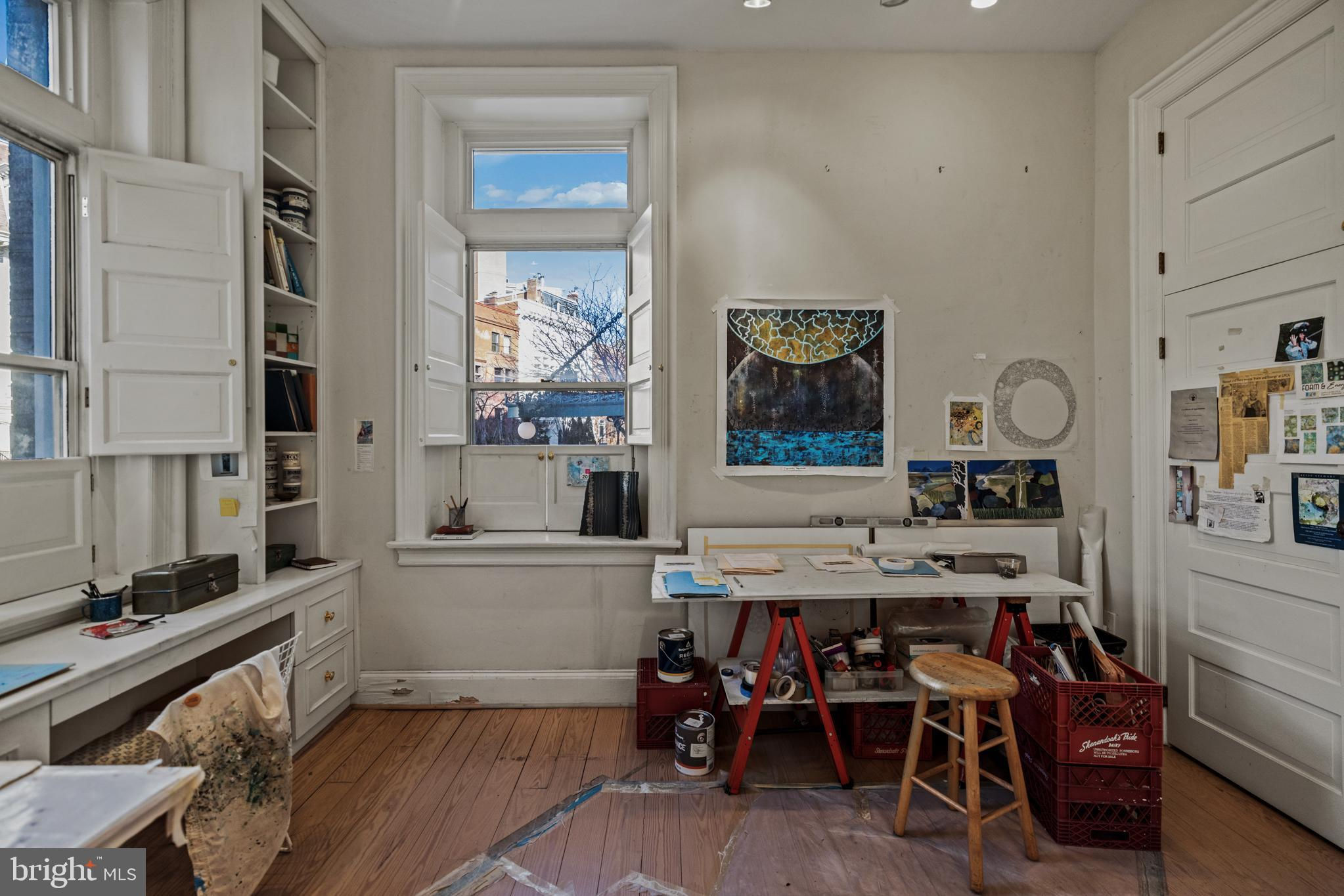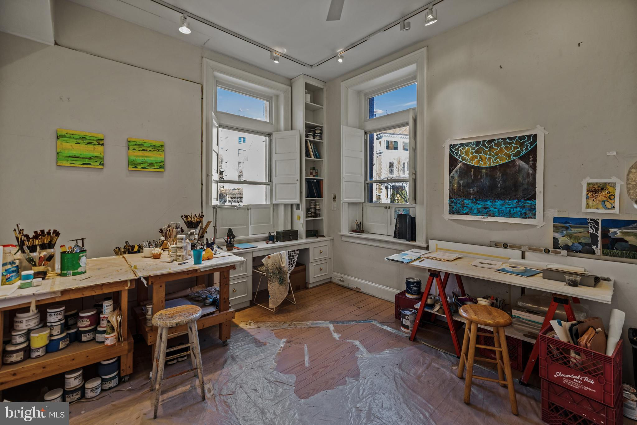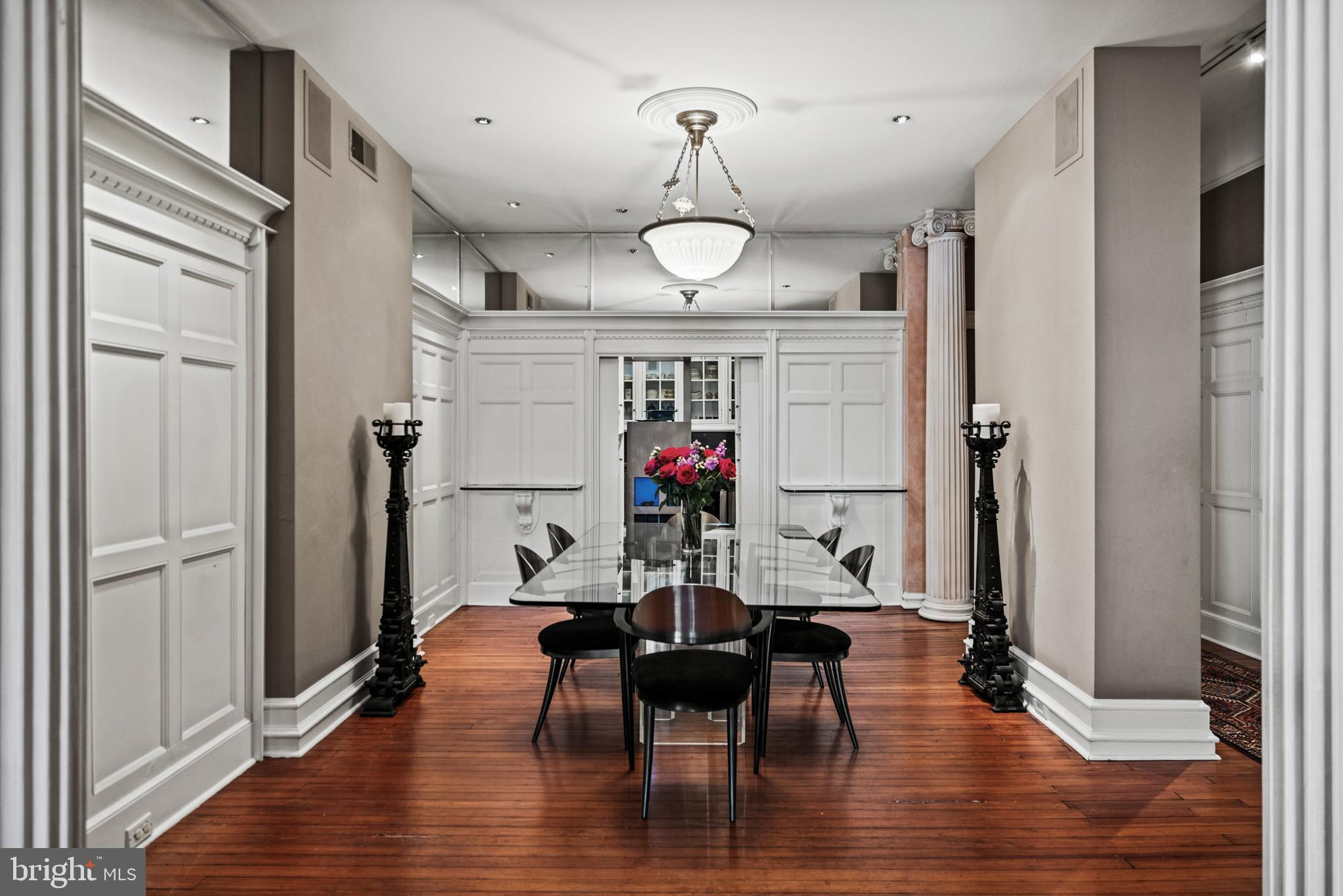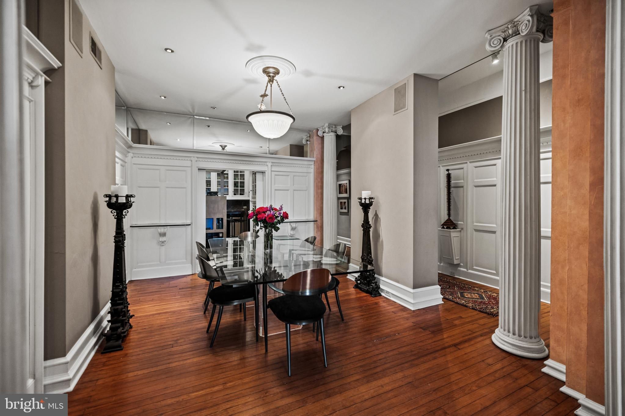 Major price reduction! Welcome to The Wyoming, a "Best Address" in Washington, DC, exuding early 20th-century grandeur. This rare Beaux Arts condominium offers a blend of historic charm with urban city living. Listed on the National Register of Historic Places, The Wyoming was formerly home to notable figures such as Activist and author Betty Friedan and former President Dwight Eisenhower. The ornate marble lobby was featured in the Clint Eastwood movie, "Absolute Power." The building offers 24-7 concierge, a stunning shared roof-top deck, a common indoor space, and a lush rear garden with a play area for children. A captivating home with tales to tell as the former lobby before the second wing was built by architect B. Stanley Simmons and developer Lester A. Barr. The home's imposing columns and distinctive built-in cabinetry stand as a reminder of the space's past life as the entry to the building. You'll find typical Beaux Arts features—tall ceilings, arched doorways, large windows, and extensive millwork—plus unexpected, unique and dramatic renovations by the former designer owners in the 1990’s: a wild modernist character kitchen filled with built-in display nooks; bold bathrooms with flair; and a built-in primary canopy bed backed by a dressing room fit for a queen. You truly have to see this home to believe it. Located in sought-after Kalorama you'll be in the heart of DC and within walking distance to all that the city has to offer. Tons of local businesses and restaurants are just down the street in Adams Morgan, wonderful restaurants just blocks away in DuPont Circle, you'll have your pick of multiple Farmer's Markets within a stones throw. A plethora of green space awaits at the nearby Kalorama Park, walk to the Zoo, Georgetown, and Rock Creek with walking paths, dog parks, and horse trails. Just half a mile from the DuPont Circle metro and multiple options for transportation are right outside your door.