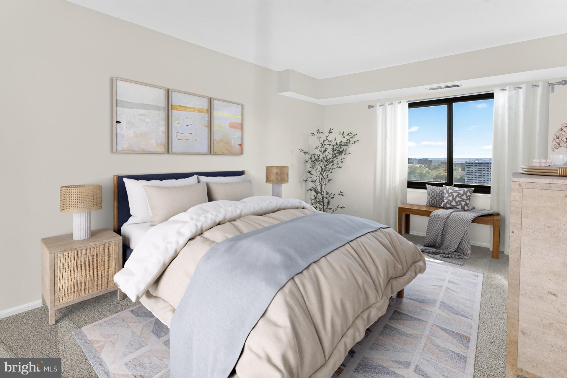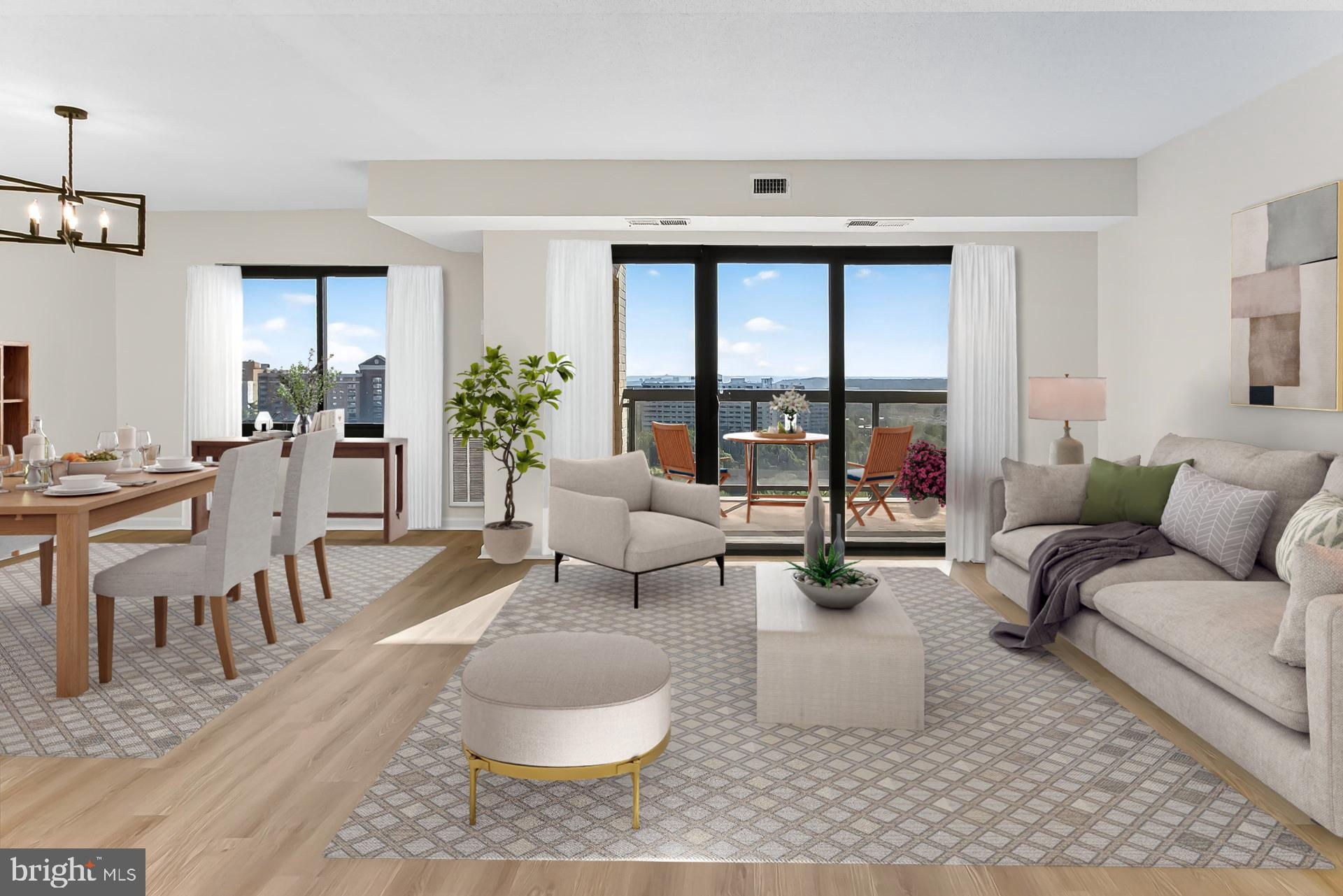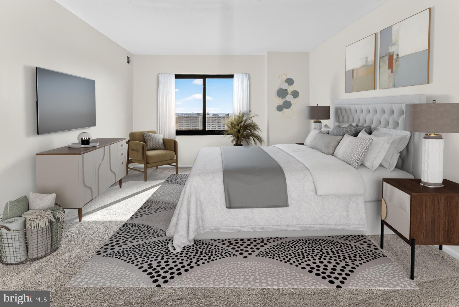 Experience resort-style living in this beautifully renovated 2-bedroom, 2-bath condo at the highly sought-after Watergate at Landmark. Perched on the 15th floor, this bright and spacious 1,309 sq. ft. unit offers breathtaking panoramic views of Alexandria and beyond — including a direct overlook of the community’s lush grounds and resort-style pool. Step inside to find a modern open layout with brand new luxury vinyl flooring, fresh paint, and an abundance of natural light pouring through floor-to-ceiling sliding doors leading to a large private balcony. The gourmet kitchen showcases all new soft-close cabinetry, quartz countertops, stainless steel appliances, tile backsplash, and washer and dryer. The primary suite features plush new carpet, generous closet space, and a fully updated en-suite bath with a sleek dual vanity, frameless glass shower, and elegant tile finishes. The second bedroom and guest bath are equally stylish, offering comfort and versatility for guests, an office, or additional living space. Enjoy the all-inclusive amenities that make Watergate at Landmark one of Northern Virginia’s most desirable communities — including indoor and outdoor pools, fitness center, tennis courts, pickleball, racquetball, putting green, playgrounds, library, café, shuttle service, car wash station, and 24-hour security — all covered by the condo fee, which also includes utilities and parking. Located inside the Beltway with easy access to I-395, Old Town Alexandria, and Washington, D.C., this move-in-ready home combines luxury, convenience, and comfort in one perfect package. Listing Agent has ownership in property.
