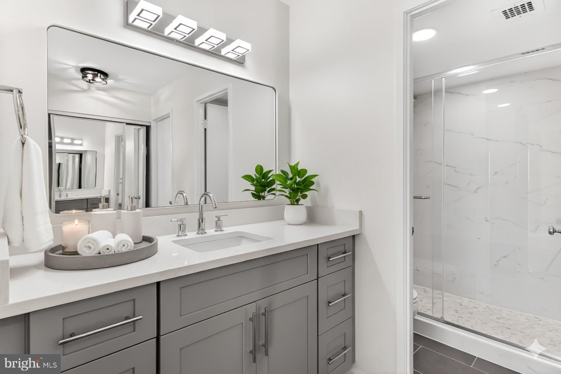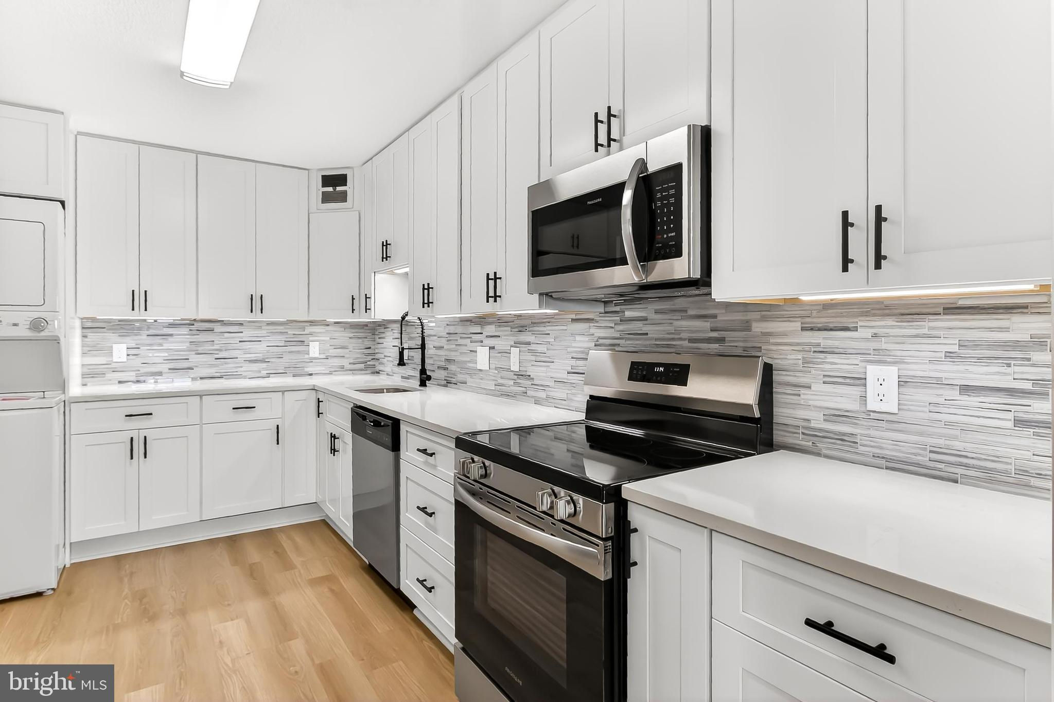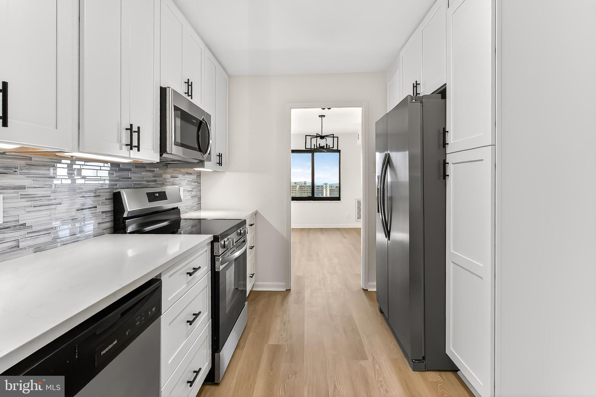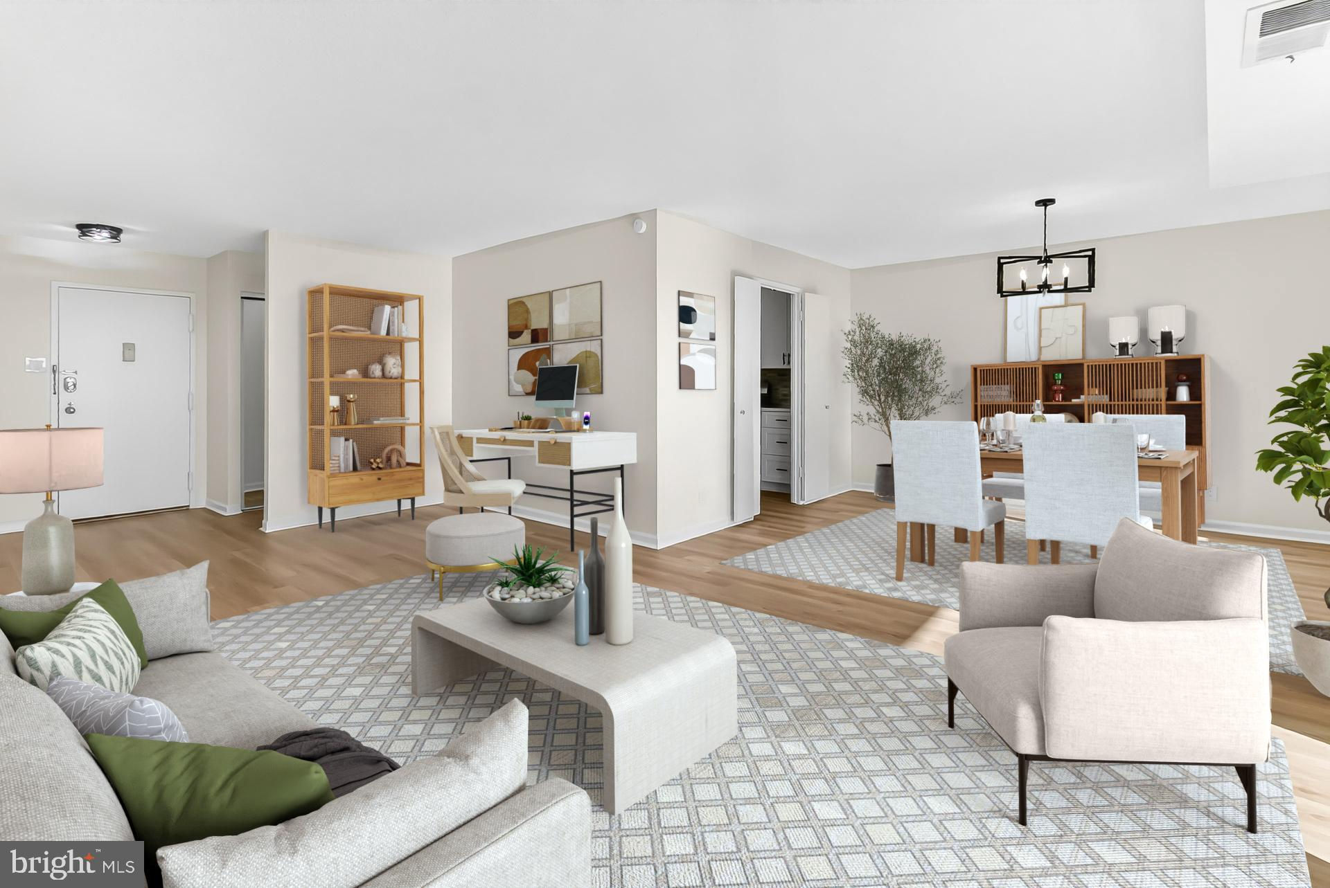 Experience resort-style living in this beautifully renovated 2-bedroom, 2-bath condo at the highly sought-after Watergate at Landmark. Perched on the 15th floor, this bright and spacious 1,309 sq. ft. unit offers breathtaking panoramic views of Alexandria and beyond — including a direct overlook of the community’s lush grounds and resort-style pool. Step inside to find a modern open layout with brand new luxury vinyl flooring, fresh paint, and an abundance of natural light pouring through floor-to-ceiling sliding doors leading to a large private balcony. The gourmet kitchen showcases all new soft-close cabinetry, quartz countertops, stainless steel appliances, tile backsplash, and washer and dryer. The primary suite features plush new carpet, generous closet space, and a fully updated en-suite bath with a sleek dual vanity, frameless glass shower, and elegant tile finishes. The second bedroom and guest bath are equally stylish, offering comfort and versatility for guests, an office, or additional living space. Enjoy the all-inclusive amenities that make Watergate at Landmark one of Northern Virginia’s most desirable communities — including indoor and outdoor pools, fitness center, tennis courts, pickleball, racquetball, putting green, playgrounds, library, café, shuttle service, car wash station, and 24-hour security — all covered by the condo fee, which also includes utilities and parking. Located inside the Beltway with easy access to I-395, Old Town Alexandria, and Washington, D.C., this move-in-ready home combines luxury, convenience, and comfort in one perfect package. Listing Agent has ownership in property.