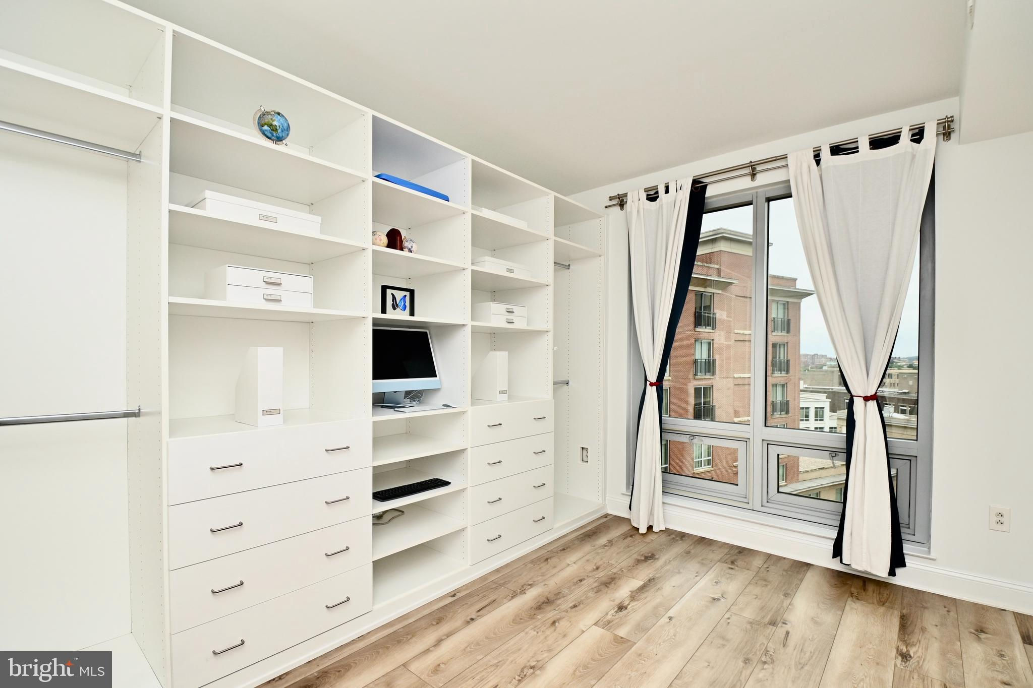 This luxurious condo offers an unparalleled blend of modern design and high-end features in the heart of Alexandria. Step into a beautifully appointed space boasting a light-filled living area, contemporary walk-in shower, sleek luxury plank flooring, and a gourmet kitchen with stainless steel appliances and granite countertops. Enjoy the convenience of smart washer and dryer, custom built-in shelves in living room and second bedroom plus TWO reserved garage parking spaces (a rare option in this condominium). The expansive rooftop terrace provides stunning views, perfect for relaxing or entertaining. Benefit from concierge services and optional Westin Hotel perks, including a fitness center. Ideally situated within a 10-minute walk to Kings St-Old Town & Eisenhower Metro Stations, AMC Movie Theater, Wegmans, and Whole Foods, and just 1.5 miles from the picturesque Potomac River, this condo offers both luxury and convenience. Don't miss the opportunity to make this stunning condo your new home! Condo fee also includes: Gas, Sewer, Trash and Recycling, Building Insurance, Common Area Maintenance, Professional Management, Concierge Services, Custodial Maintenance Service. Residents pay for individually metered Electric and Water.