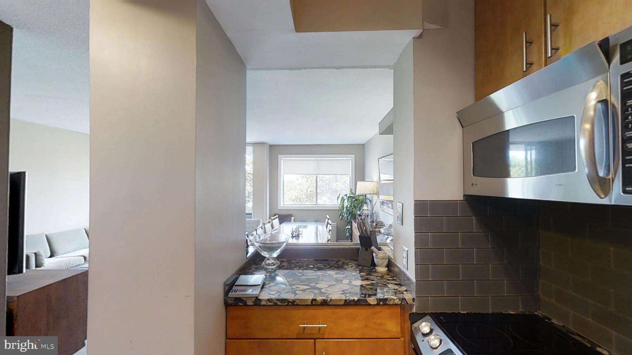 Welcome home to this spacious and meticulously maintained junior one-bedroom condo unit. This calming and scenic river facing condo is flooded with natural light that shines over the white oak plank floors. The updated kitchen with stone counters, glass subway tiles, and stainless-steel appliances opens up to a spacious dining room. Every inch of this unit has been updated with an emphasis on maximizing storage space. The unit has a spacious balcony perfect for your morning coffee or an evening cocktail. The bedroom has plenty of sunlight and is river facing plus a spacious closet. The renovated bathroom has new fixtures, crema marble vanity top and custom cabinets for plenty of additional storage. Other recent updates include new air conditioning units and energy efficient Thermopane windows. This community features a 24-hour concierge desk in the lobby, which is great for Amazon and other deliveries! This freshly updated secure gated community is within walking distance of Huntington Metro and Old Town along with Planet Fitness next door. It is also a short walk to the pedestrian path across Wilson Bridge to National Harbor and the Belle Haven Country Club, GW Parkway bike trail. Everything you would need is nearby: shopping, library, post office, banks, the Mount Vernon Recreation Center reopening in early 2025 after a $74 million revamp, and more. The property features a large heated pool with freshly updated hard surface tennis court. Plenty of unassigned parking and a secure laundry room on each floor. 5 Minutes away driving from National Landing/Amazon HQ2, Virginia Tech Graduate Campus and only 5 metro stops away from Crystal City (National Landing) and DCA Airport. The property features easy access and is minutes away to Telegraph Road, I-495, US Rt. 1/Richmond Hwy & Fort Belvoir, I-395 and Washington DC.