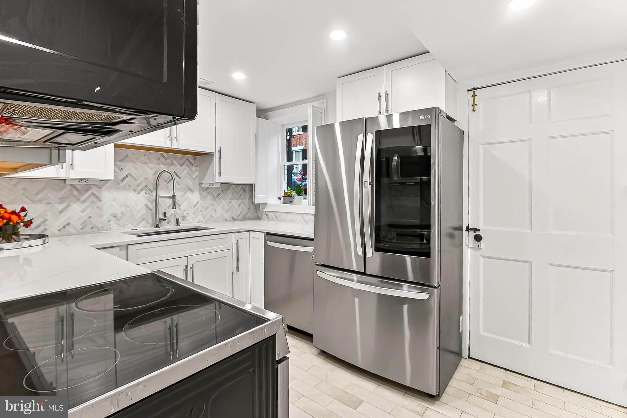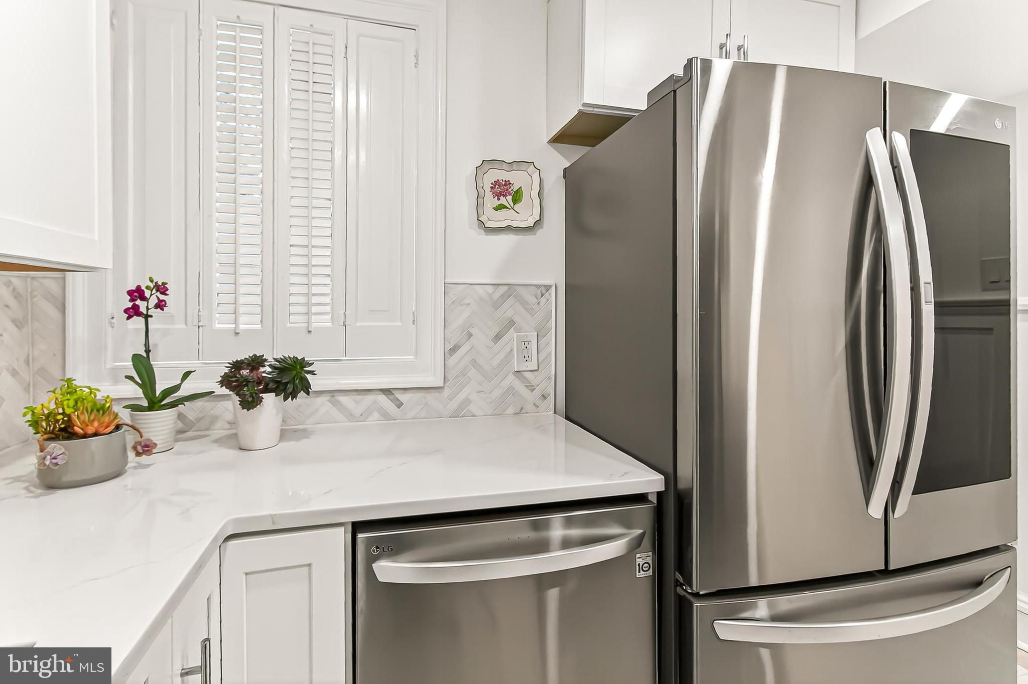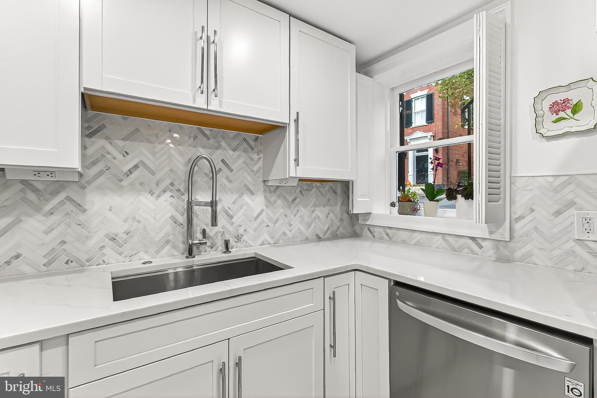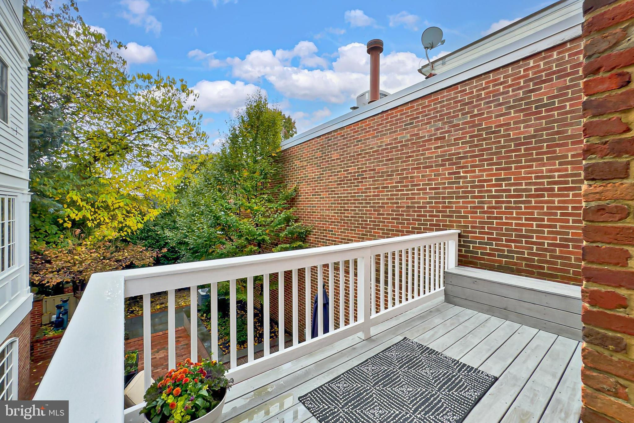 Charming Townhouse in the Heart of Old Town, Alexandria beautifully renovated and ideally situated on coveted South Lee Street in the heart of it all—just steps from the waterfront, shops, and dining. This charming two-bedroom, one-and-a-half-bathroom residence seamlessly blends historic character with modern updates, offering turnkey living in one of Alexandria’s most desirable locations. Completely renovated in 2022, the home features an updated kitchen with modern appliances and a wood-paneled dining room. Step outside to the private, fully redesigned backyard, where bluestone and brick patios create the perfect setting for entertaining or relaxing. A large custom planter box with trees adds natural beauty and privacy, transforming the space into a serene urban retreat. The second floor includes a natural light-filled double living room with a custom bound wool carpet over the original random width pine floors and a balcony overlooking the tree-lined landscape offering additional outdoor space. The third floor includes two identical size bedrooms, joined by a thoughtfully reimagined marble bathroom. Every detail was considered to combine comfort, efficiency, and timeless style. Experience the best of Old Town living in this elegant, move-in-ready home—where classic charm meets contemporary convenience. Windows and fireplaces convey "as-is." Owner is co-listing agent.