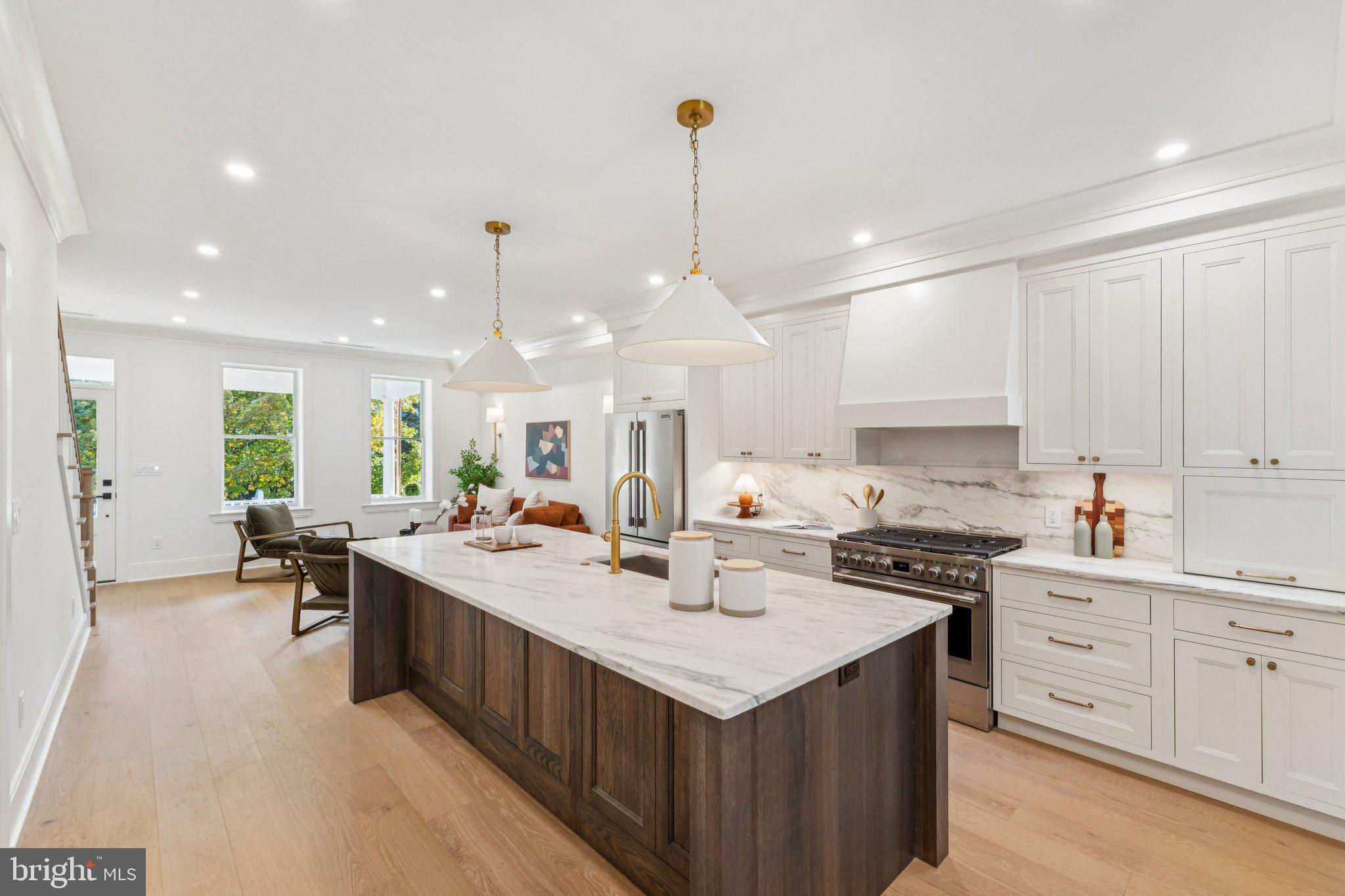 LOCATION • SPACE • LUXURY — this stunning home has it all. Welcome to this brand-new, full-gut renovation by one of DC’s premier builders, Ziba Management. Every inch of this home has been thoughtfully designed to blend classic charm with modern sophistication, offering both style and comfort — plus the added bonus of a potential Airbnb-ready basement for extra income. Step through the beautifully landscaped front yard and up to the classic Wardman-style front porch. Inside, you’ll be greeted by an open and sun-drenched main level with soaring ceilings and an inviting sitting area — perfect for entertaining friends and family. The chef’s kitchen is a true showpiece, featuring two-tone cabinetry to the ceiling, a large waterfall island with seating for casual meals, ample counter space, and premium finishes throughout. A walk-in pantry provides room for all your appliances and dry goods, while a stylish powder room nearby adds convenience for guests. Adjacent to the kitchen, the elegant dining area easily accommodates a ten-person table — ideal for family gatherings and dinner parties. The custom wet bar with a wine fridge, prep sink, and extra cabinetry adds both function and flair, making it a favorite conversation spot at every event. The spacious family room anchors the rear of the home with space for your largest sectional and entertainment setup. Expansive sliding glass doors flood the room with light and open to your maintenance-free deck and backyard oasis — perfect for relaxing, grilling, or hosting summer get-togethers. A large detached garage offers secure parking and additional flexible space for a workshop, gym, or extra storage. Upstairs, you’ll find three bedrooms and two full baths, including a luxurious primary suite with vaulted ceilings, a walk-in closet, and plenty of room for a reading nook or additional furniture. The spa-inspired primary bathroom boasts dual vanities, floor-to-ceiling tile, and a wet room shower and soaking tub — your private retreat after a long day. The fully finished lower level is designed as a versatile, independent living space, featuring two bedrooms, a full bath, kitchenette, laundry hookups, and front and rear entrances, all with dedicated mini-split systems. Whether used as an Airbnb for extra income, a guest suite, or in-law apartment, the possibilities are endless. Only a few blocks from Reservoir Park and a quick drive to I-395, this home perfectly combines thoughtful design, luxury finishes, and versatile living — all in one of DC’s most desirable neighborhoods. This home won't stay on the market for too long, so be among the first to see it. The square footage is an estimate and not meant for valuation.