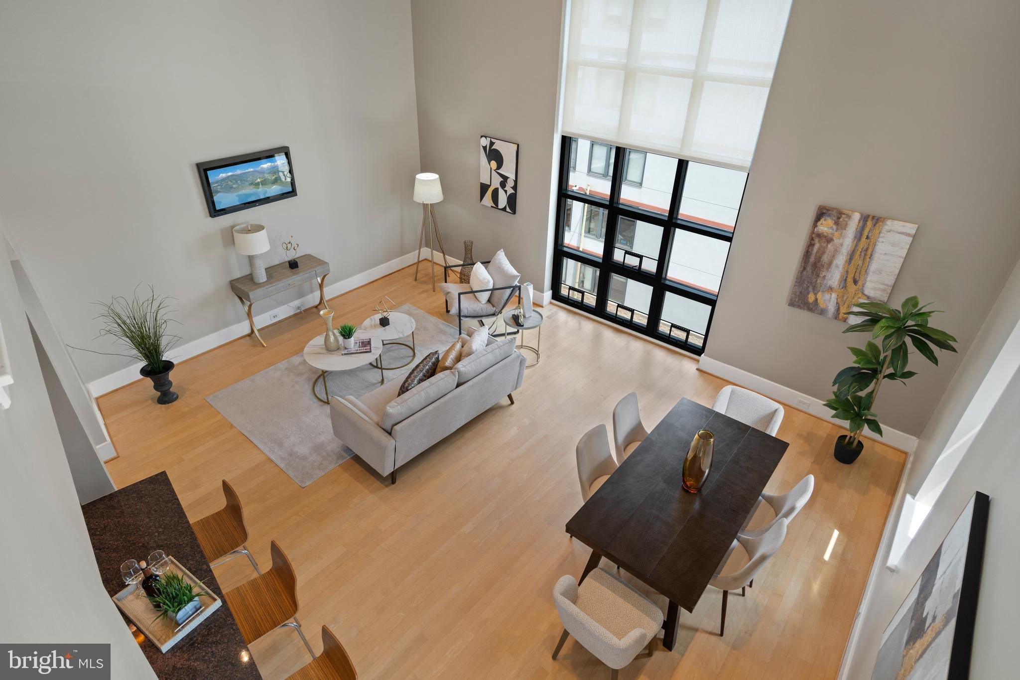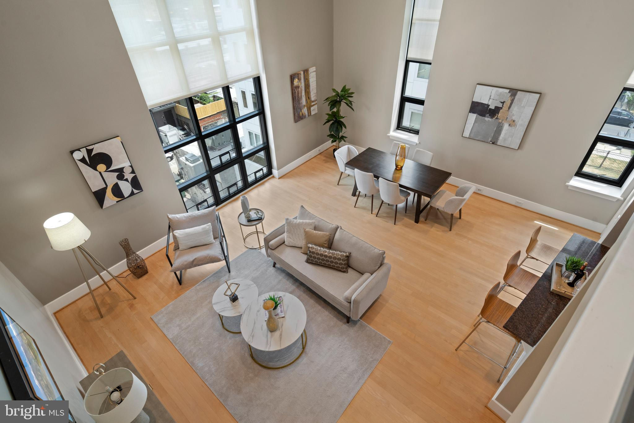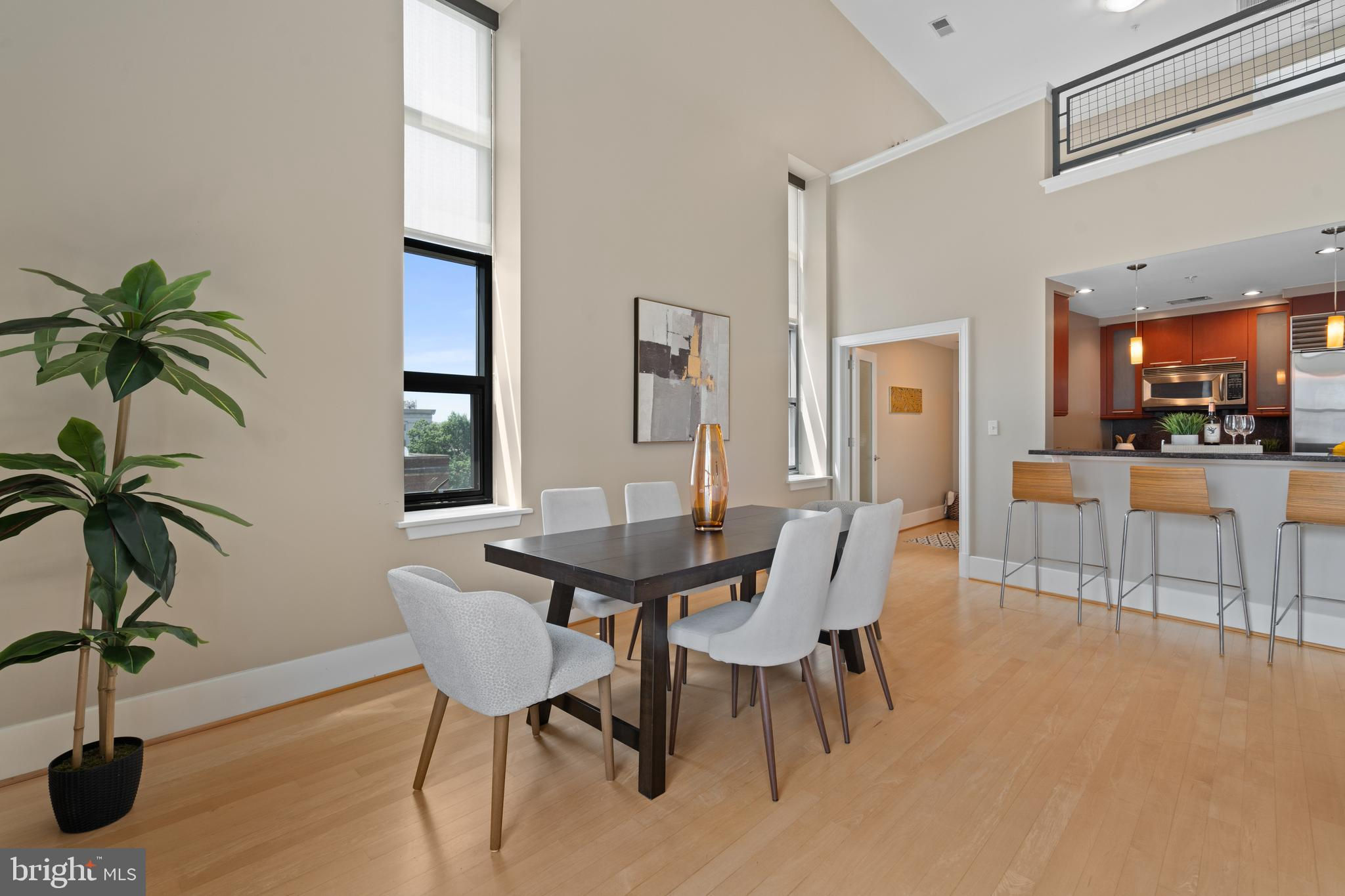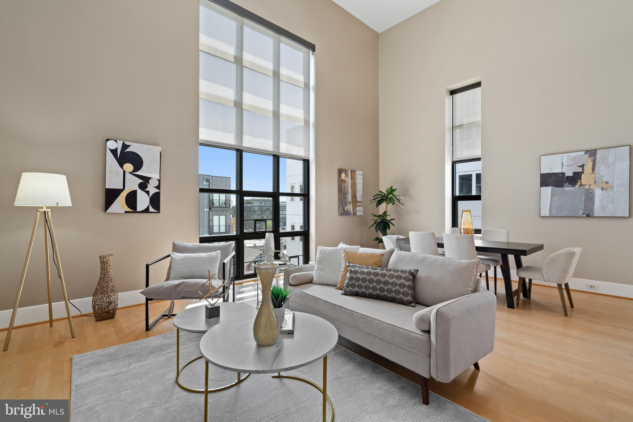 Welcome home to 2109 10th St NW Ph 2 with parking and roof terrace! Located in the Visio by Robertson Development, a Winner of DC's Best Architecture Award, this extraordinary open loft-style penthouse condo is a marvel of contemporary elegance and luxury. With soaring 20+ ft ceilings, a dramatic catwalk, and expansive walls of glass, the space is flooded with natural light, offering an immense open layout perfect for lavish entertaining. The penthouse unit features two bedrooms, two bathrooms, plus a versatile den, and boasts luxurious amenities such as limestone marble baths and a gourmet kitchen equipped with high-end appliances. Ample storage space and covered parking add convenience, while the prime location just one block from the Metro, shopping, and restaurants enhances its appeal. The light-filled space features enormous windows and beautiful hardwood floors. The loft-style primary bedroom includes a modern bath and access to a private roof terrace with breathtaking city views, perfect for relaxation. The high-end kitchen is adorned with Euro-style cabinets and granite counters and breakfast bar seating, ideal for everyday living and entertaining. In unit washer and dryer make everyday a living breeze. Additional amenities include an attic storage space ensuring you have room for everything you need. Home to landmarks like the Howard Theatre, 9:30 Club, 14th St corridor and the U Street corridor, this neighborhood blends historic charm with modern amenities, making it a popular spot for residents and visitors alike. Enjoy all the perks of city living, with Whole Foods, Amazon Fresh, and Trader Joe's just a stone's throw away. Indulge in dining experiences at neighborhood favorites like Le Diplomate and Gypsy Kitchen, or explore the plethora of other top restaurants all right outside your front door! Come discover the best of DC living, where luxury, convenience, and modern design seamlessly blend into one stunning residence.