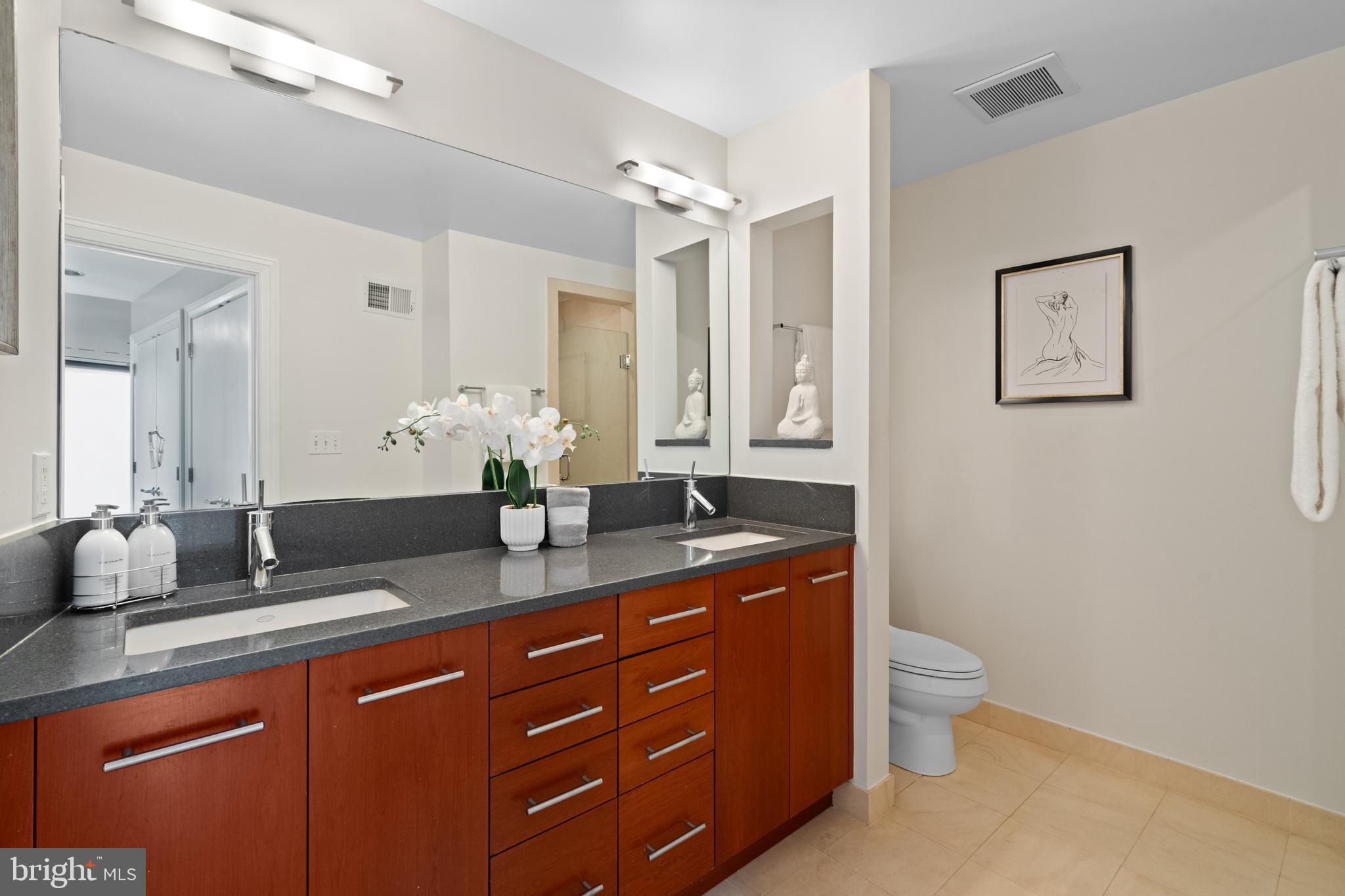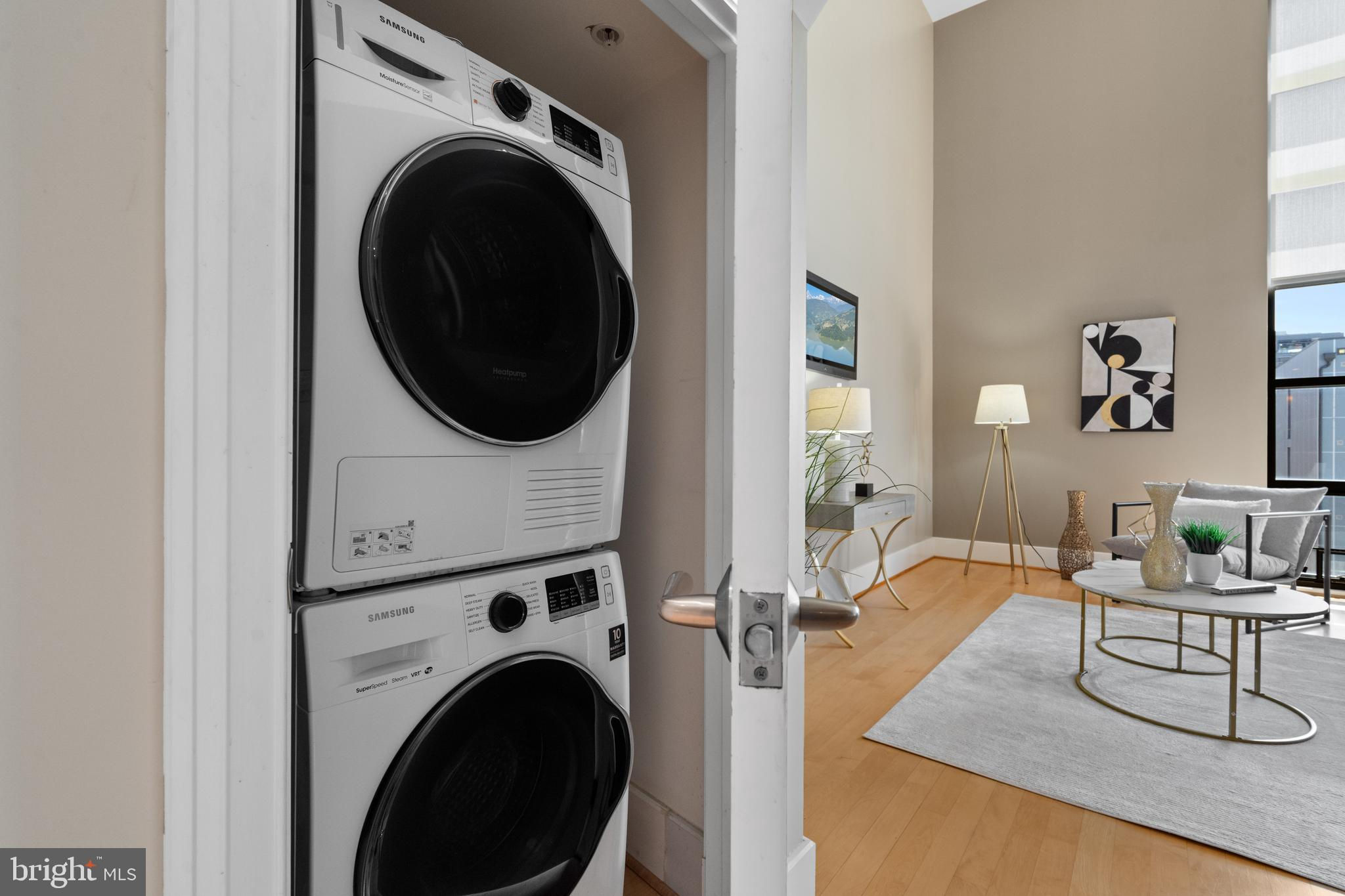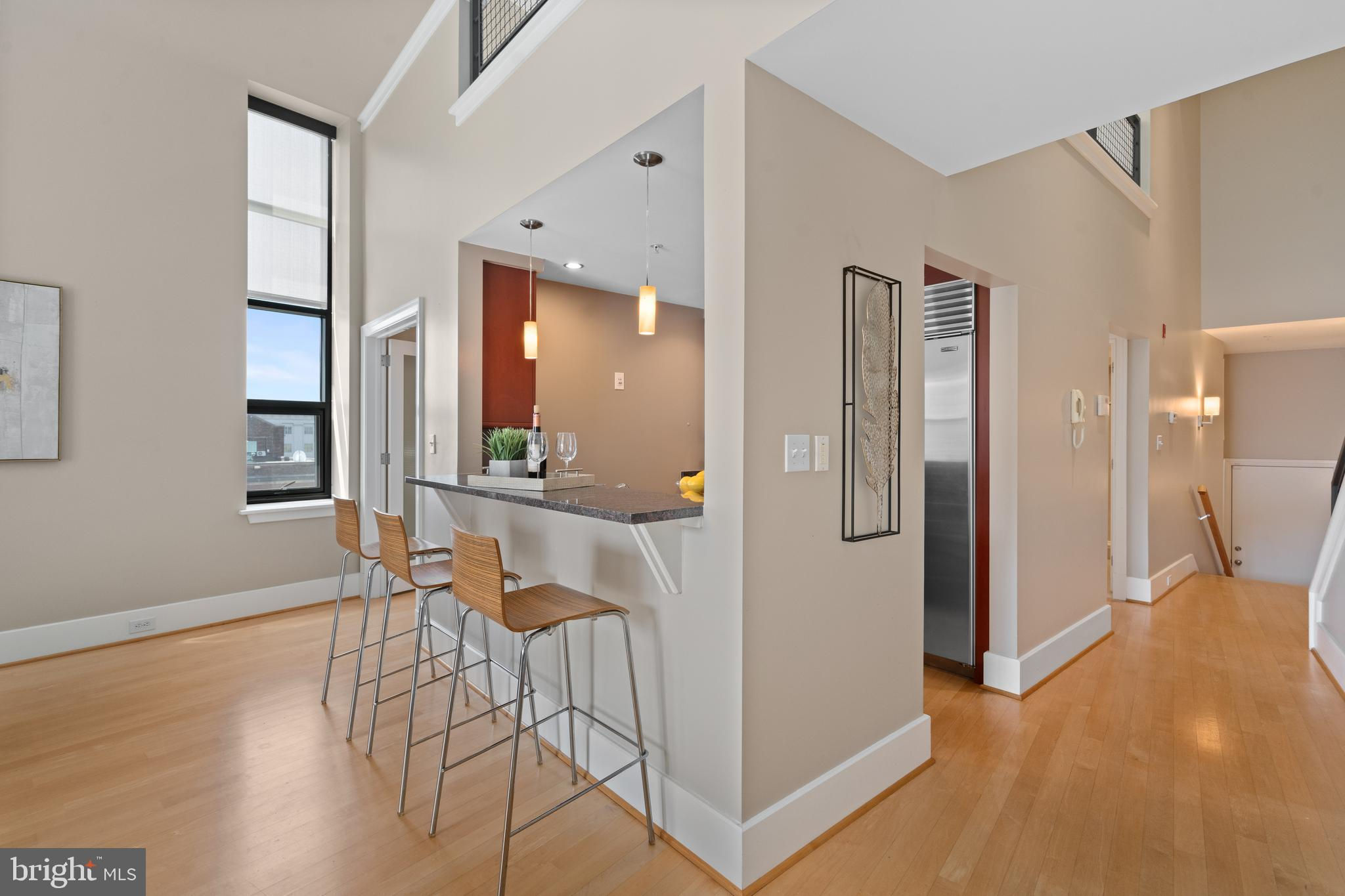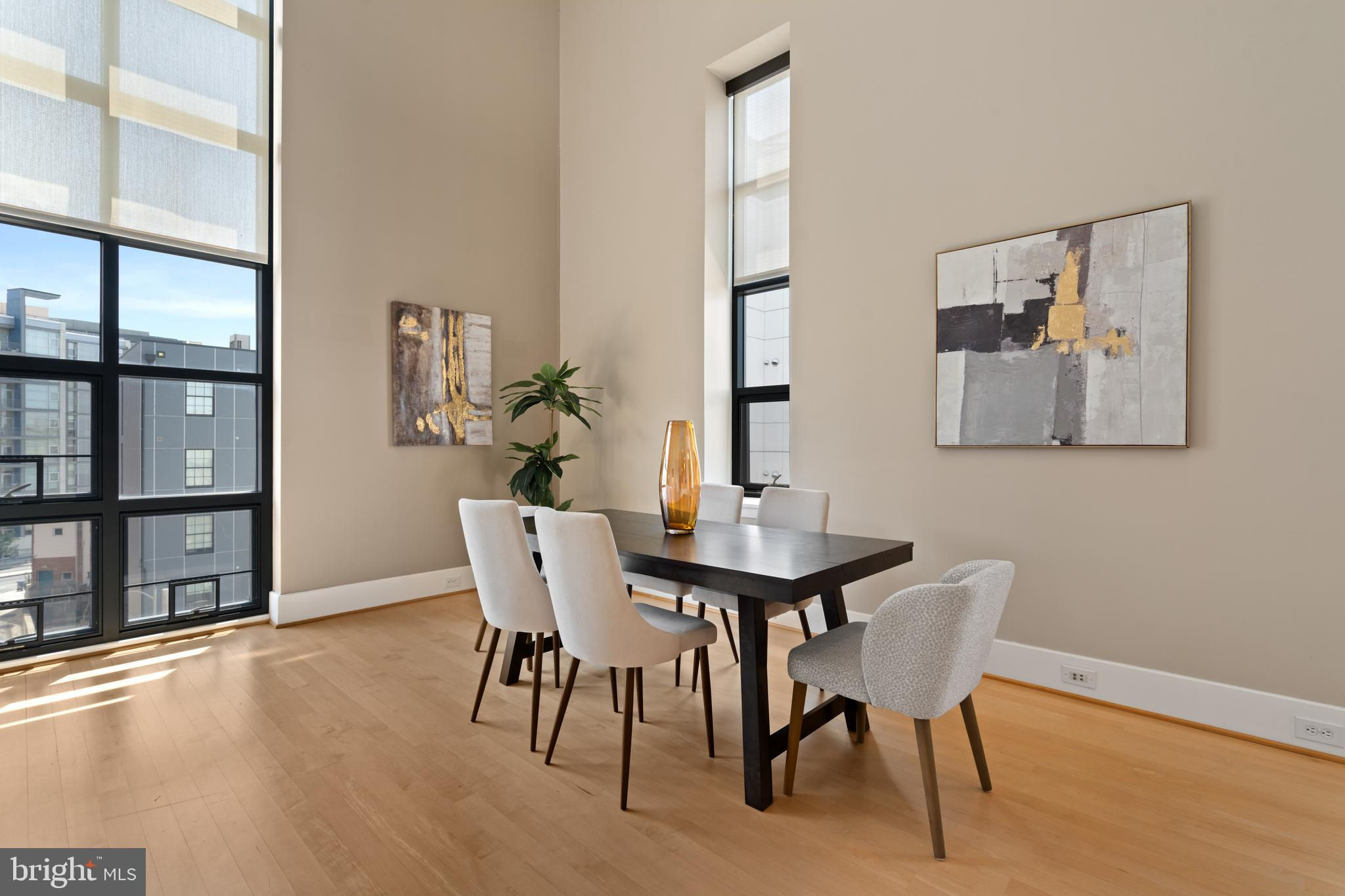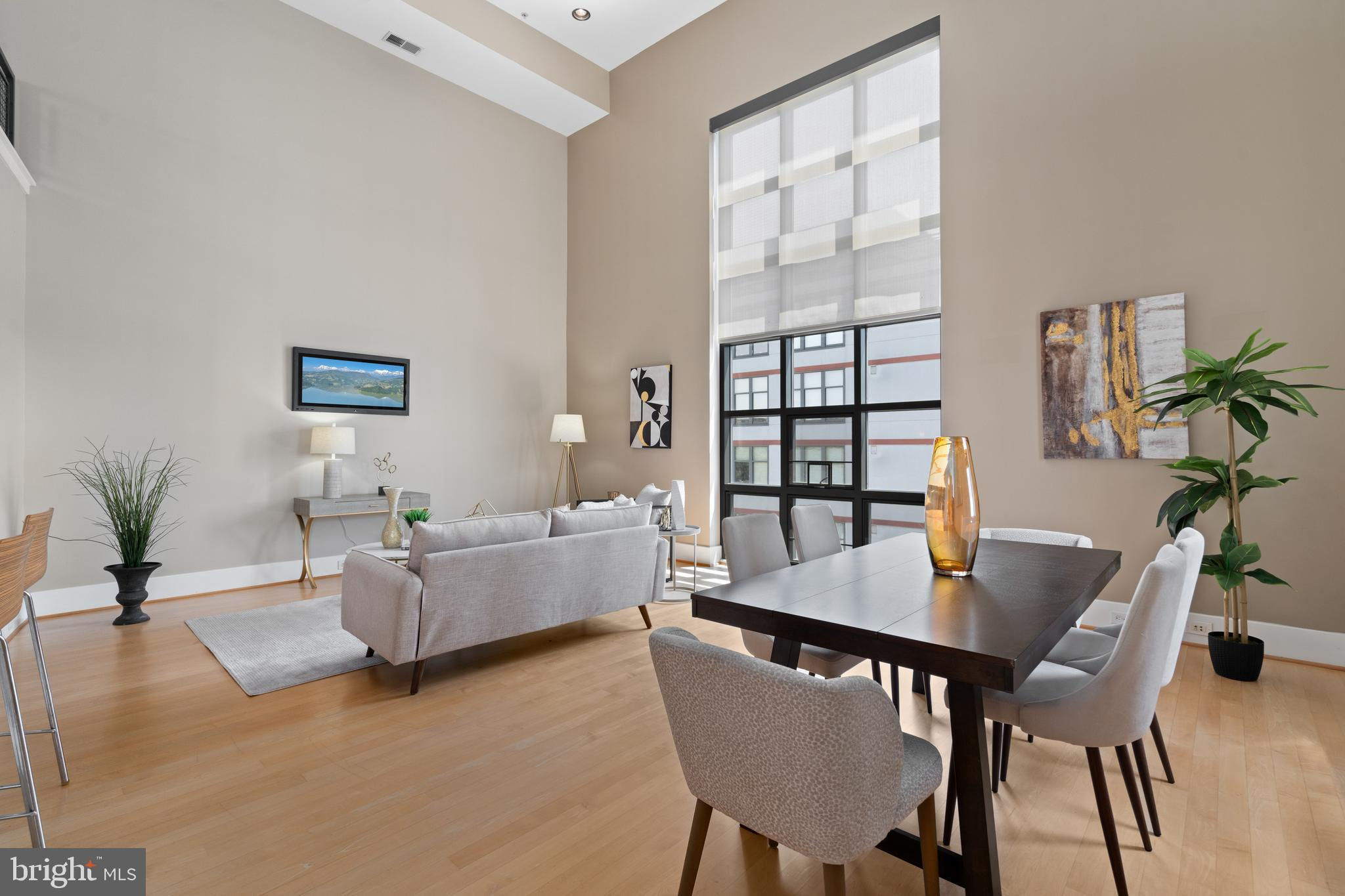 Welcome home to 2109 10th St NW Ph 2 with parking and roof terrace! Located in the Visio by Robertson Development, a Winner of DC's Best Architecture Award, this extraordinary open loft-style penthouse condo is a marvel of contemporary elegance and luxury. With soaring 20+ ft ceilings, a dramatic catwalk, and expansive walls of glass, the space is flooded with natural light, offering an immense open layout perfect for lavish entertaining. The penthouse unit features two bedrooms, two bathrooms, plus a versatile den, and boasts luxurious amenities such as limestone marble baths and a gourmet kitchen equipped with high-end appliances. Ample storage space and covered parking add convenience, while the prime location just one block from the Metro, shopping, and restaurants enhances its appeal. The light-filled space features enormous windows and beautiful hardwood floors. The loft-style primary bedroom includes a modern bath and access to a private roof terrace with breathtaking city views, perfect for relaxation. The high-end kitchen is adorned with Euro-style cabinets and granite counters and breakfast bar seating, ideal for everyday living and entertaining. In unit washer and dryer make everyday a living breeze. Additional amenities include an attic storage space ensuring you have room for everything you need. Home to landmarks like the Howard Theatre, 9:30 Club, 14th St corridor and the U Street corridor, this neighborhood blends historic charm with modern amenities, making it a popular spot for residents and visitors alike. Enjoy all the perks of city living, with Whole Foods, Amazon Fresh, and Trader Joe's just a stone's throw away. Indulge in dining experiences at neighborhood favorites like Le Diplomate and Gypsy Kitchen, or explore the plethora of other top restaurants all right outside your front door! Come discover the best of DC living, where luxury, convenience, and modern design seamlessly blend into one stunning residence.