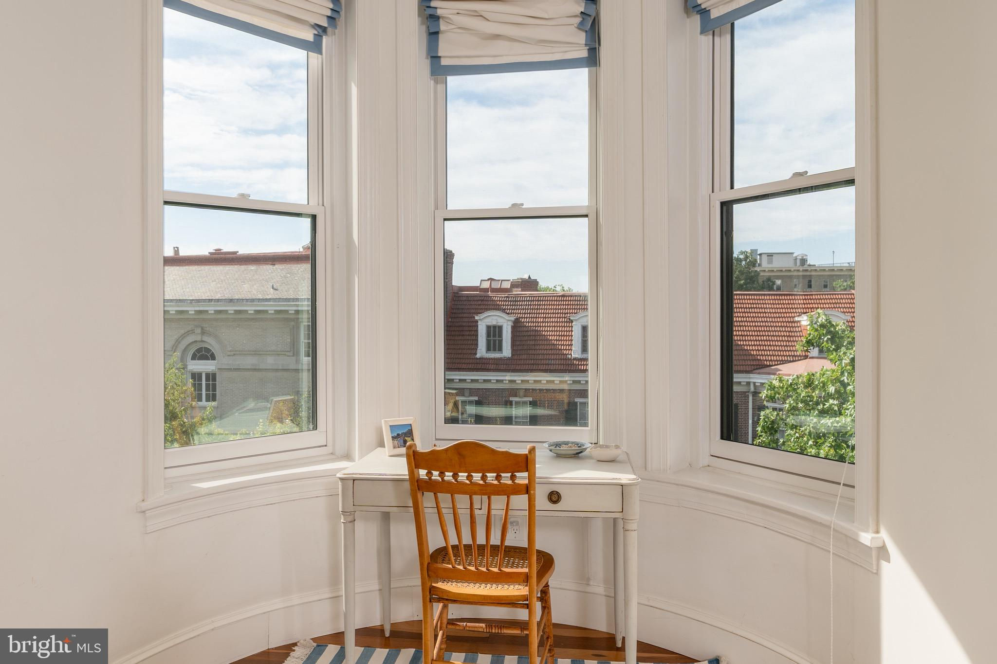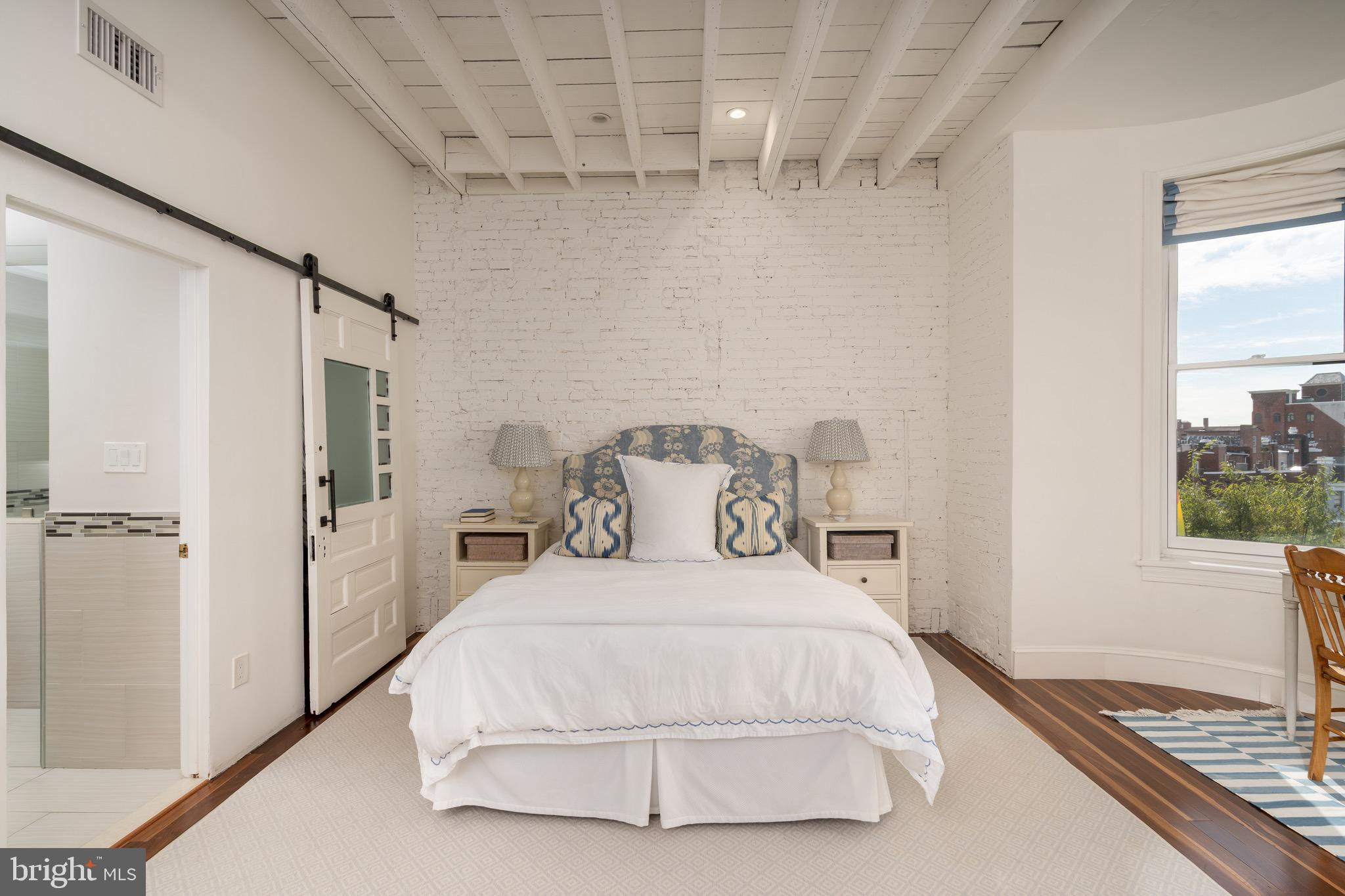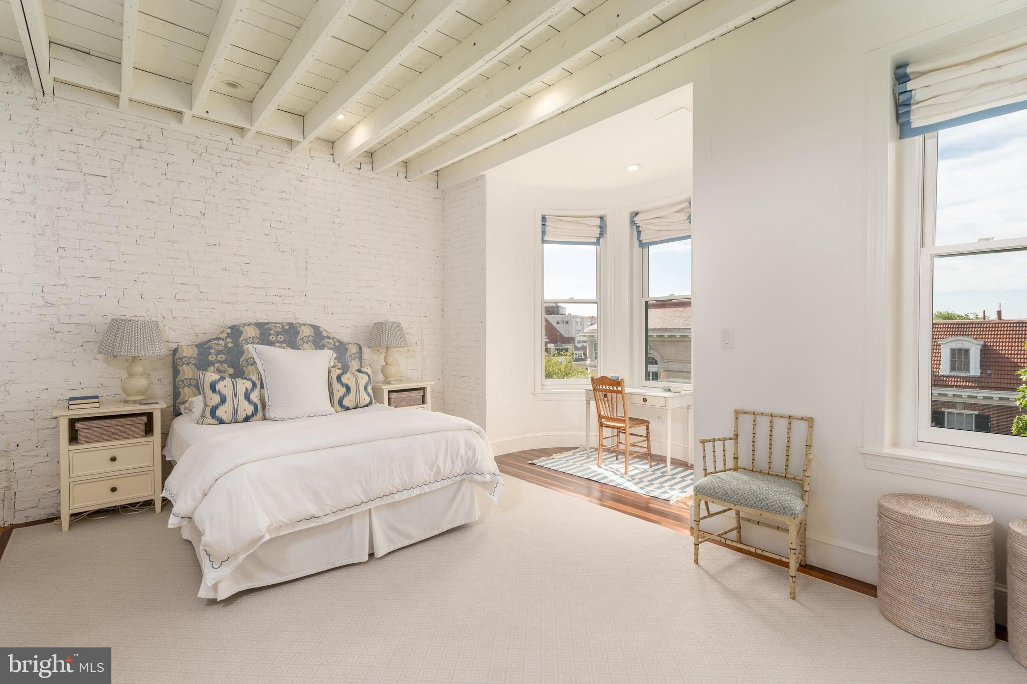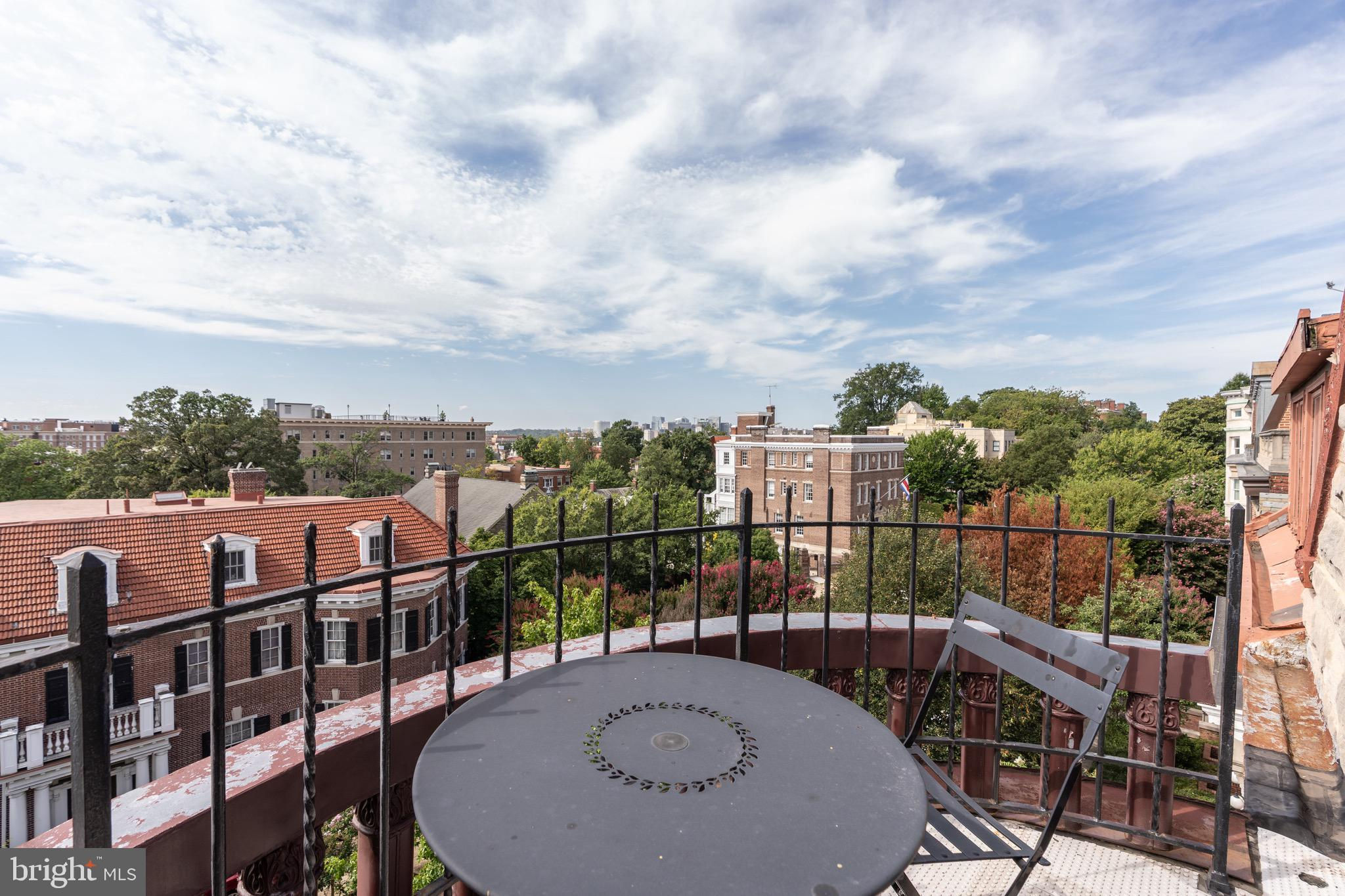 Perched atop a boutique, tree-lined condominium in Kalorama, this bright and spacious residence offers close to 1,500 square feet of thoughtfully designed space across two levels. With soaring ceilings, abundant natural light, and a great layout, the home perfectly balances historic charm with modern convenience. The entry level opens to a generous sitting room - complete with closet space and easily converted into a den or office. The expansive primary suite features a bay window with treetop views, exposed brick accents, dual closets and built-in shelving, and a beautifully renovated ensuite bath with double vanities and a walk-in shower. A full-size washer and dryer are also conveniently located on this floor. Up a skylit staircase, the main living level unfolds with effortless flow. The modern, skylit kitchen is outfitted with updated appliances and ample storage. A formal dining area and powder room complement the large living room, anchored by a wood-burning fireplace and opening onto a serene private balcony. From here, enjoy sweeping, elevated views over Kalorama’s rooftops - an ideal setting for morning coffee or evening relaxation. 2115 S Street NW is a pet-friendly, boutique condominium offering a highly coveted location at the crossroads of Dupont and Kalorama. Residents enjoy easy access to Metro, neighborhood cafés, grocery stores, restaurants, galleries, and the best of city living.