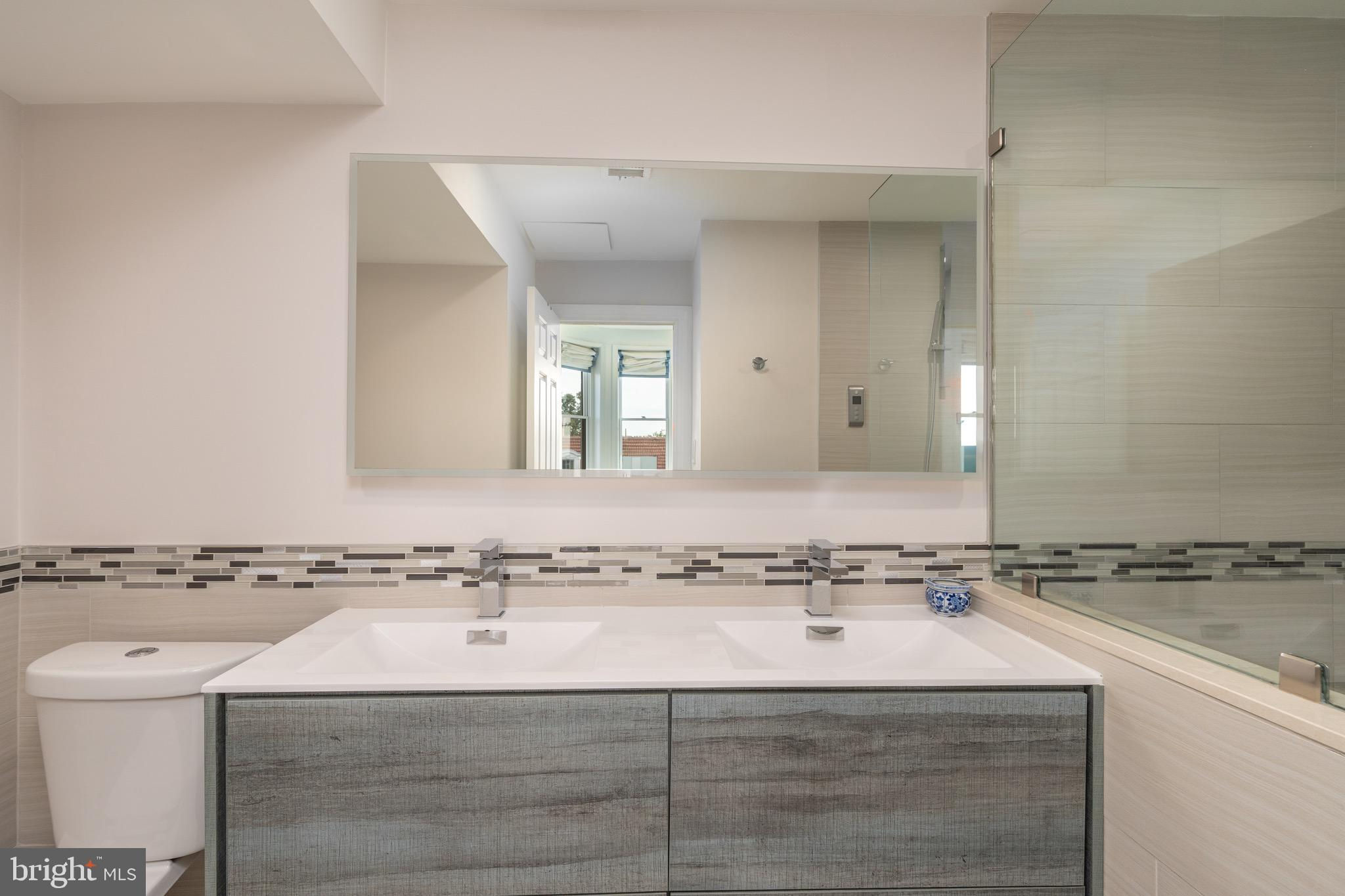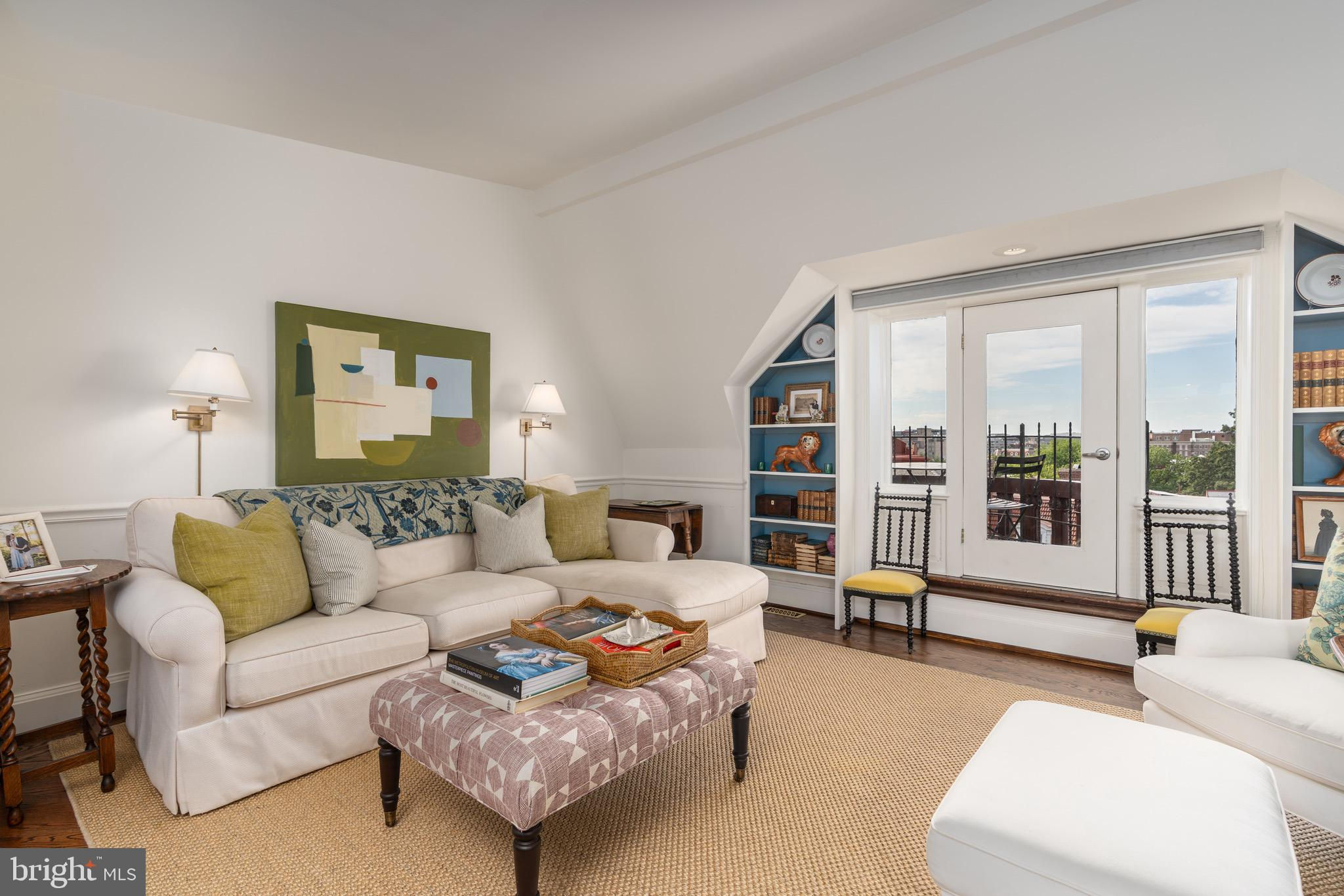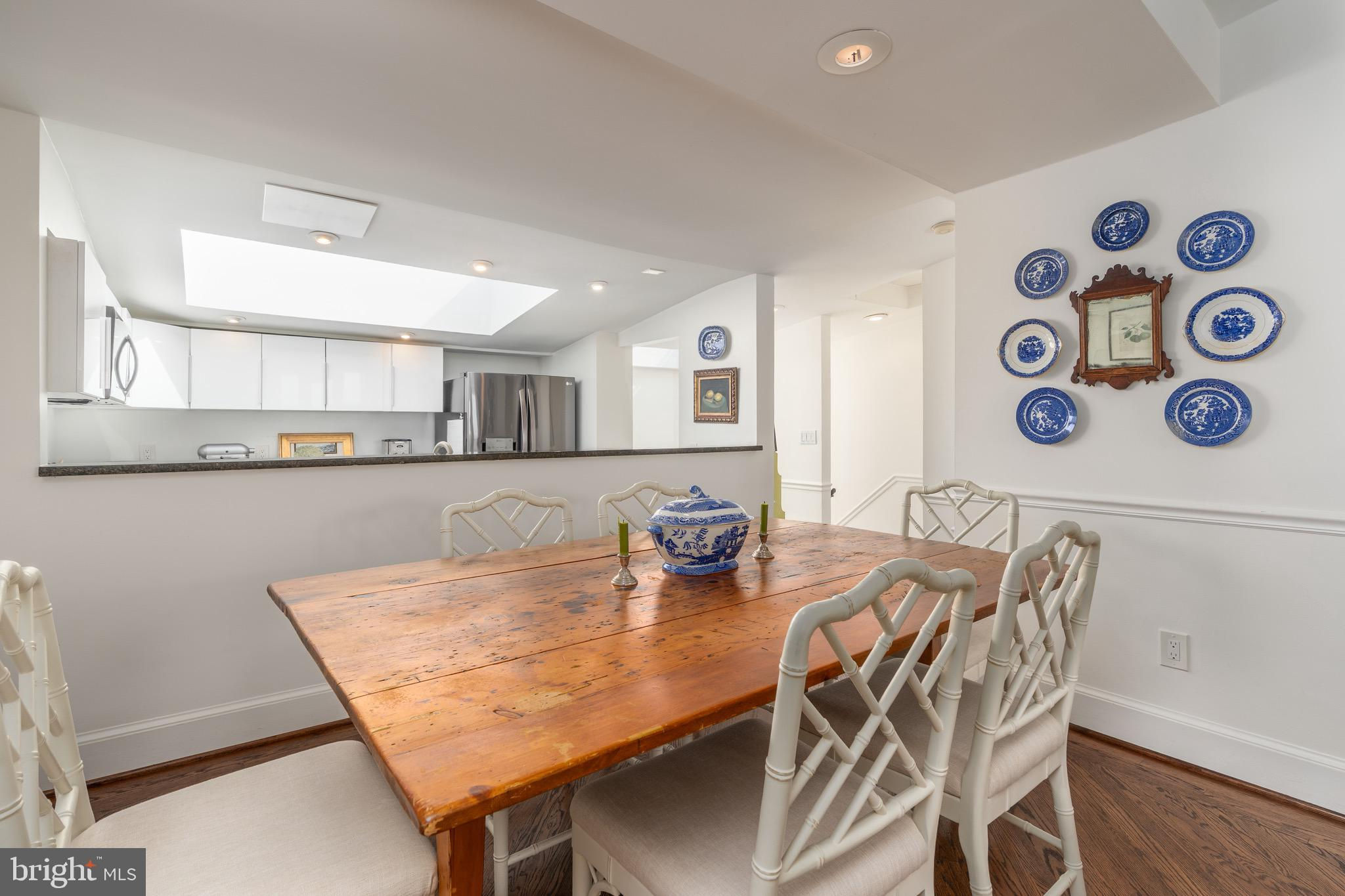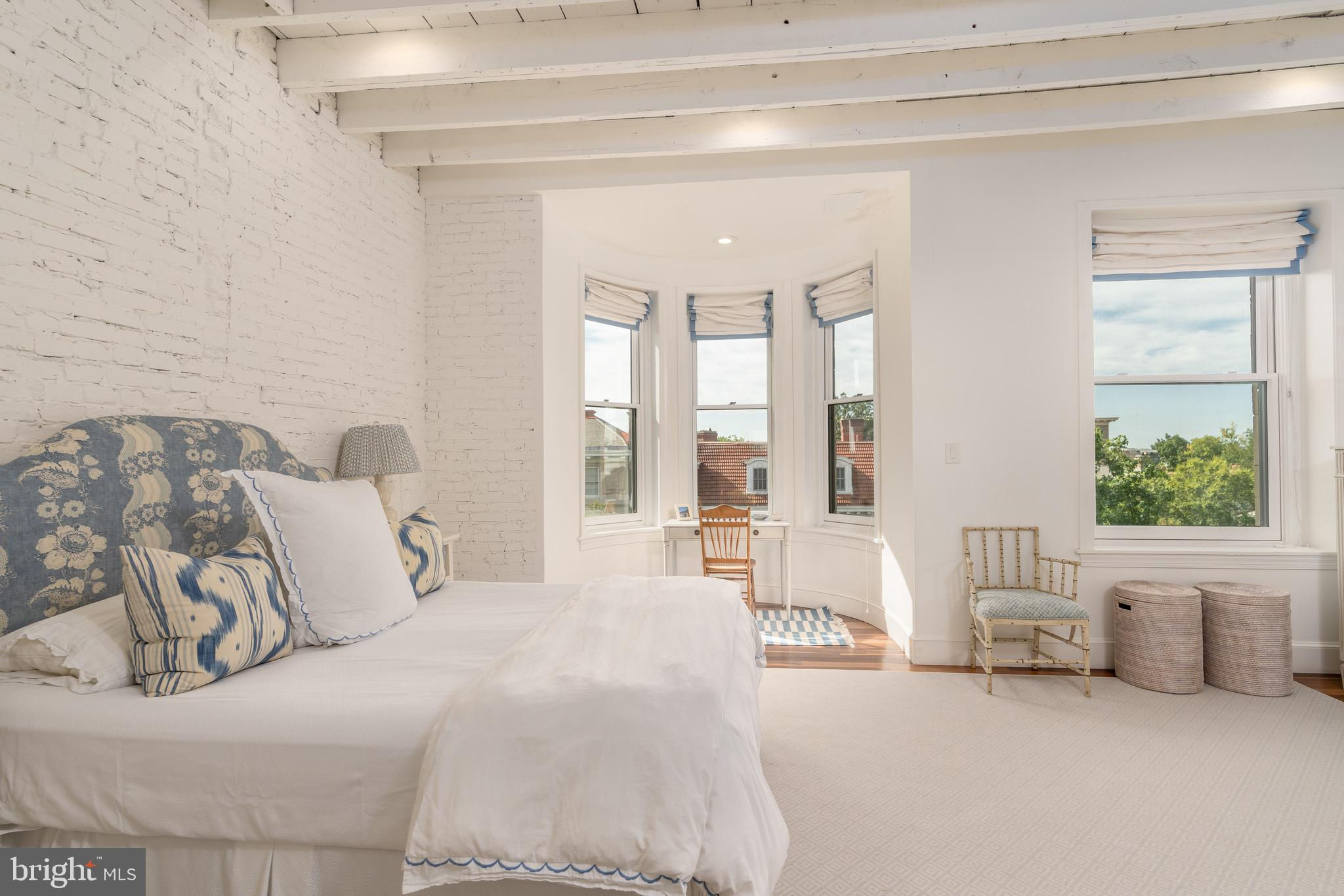 Perched atop a boutique, tree-lined condominium in Kalorama, this bright and spacious residence offers close to 1,500 square feet of thoughtfully designed space across two levels. With soaring ceilings, abundant natural light, and a great layout, the home perfectly balances historic charm with modern convenience. The entry level opens to a generous sitting room - complete with closet space and easily converted into a den or office. The expansive primary suite features a bay window with treetop views, exposed brick accents, dual closets and built-in shelving, and a beautifully renovated ensuite bath with double vanities and a walk-in shower. A full-size washer and dryer are also conveniently located on this floor. Up a skylit staircase, the main living level unfolds with effortless flow. The modern, skylit kitchen is outfitted with updated appliances and ample storage. A formal dining area and powder room complement the large living room, anchored by a wood-burning fireplace and opening onto a serene private balcony. From here, enjoy sweeping, elevated views over Kalorama’s rooftops - an ideal setting for morning coffee or evening relaxation. 2115 S Street NW is a pet-friendly, boutique condominium offering a highly coveted location at the crossroads of Dupont and Kalorama. Residents enjoy easy access to Metro, neighborhood cafés, grocery stores, restaurants, galleries, and the best of city living.