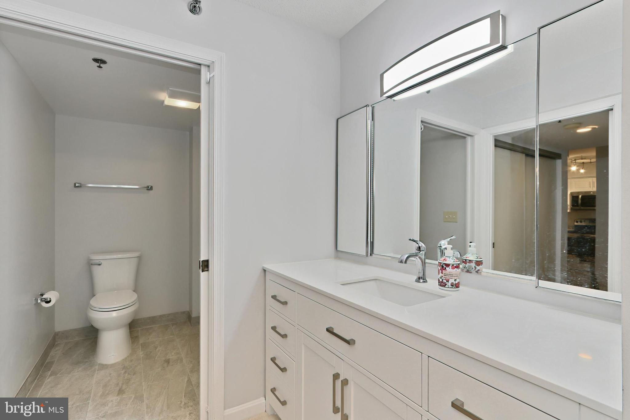 Welcome to Unit #1405 at 2121 Jamieson Avenue in Alexandria, Virginia! Embrace chic city living in this fabulous 1 bedroom, 1 bathroom condo located in the prestigious Carlyle Towers and only blocks from King Street Metro. Warm Luxury Vinyl Plank (LVP) flooring, neutral paint, updated kitchen and a spectacular glass-enclosed sunroom are only some of the fine features that make this home so appealing. An open concept floor plan creates dynamic options for any lifestyle, while modern updates create instant appeal. Fine craftsmanship begins in the foyer where newer LVP flooring welcomes you home and ushers you into the spacious living room boasting an adjoining glass-enclosed sunroom with a bird’s eye view of the city beyond. The open kitchen features striking granite countertops, refinished cabinetry, chic S-curve lighting, and quality Stainless Steel appliances including a smooth top range. The spacious bedroom features newer carpet, dressing area with an updated furniture style vanity, a walk-in closet in addition to a large reach-in closet. A laundry closet with newer stackable machines completes the comfort and luxury of this wonderful home. One garage space (2-42) and one external storage space 4-8 bin #28 convey. Walk to the new Wegmans! Spectacular building amenities include two outdoor pools, saunas, hot tub, Infinity indoor swimming pool, two fitness rooms, putting green, party room, shuffleboard/sports courts, 24-hour front desk and security, and so much more! All of this can be found right near the King Street Metro in Old Town, Alexandria, where you’ll find some of the best shopping, dining, and entertainment choices in Northern Virginia. Commuters will appreciate its close proximity to Routes 7 and 236, I-95, I-495, Express Lanes, GW Parkway, King Street and Eisenhower Metro Stations, and Amazon HQ2. Carlyle offers a free rush hour shuttle bus to and from the King Street Metro and the City runs a free trolley service from the Metro to the Waterfront. Near Del Ray, Shirlington, Kingstowne, Pentagon City, and Springfield, all of your shopping and entertainment is within a few miles. Outdoor enthusiasts will enjoy nearby Jones Point Park with its historic lighthouse or the nature trails along the Potomac River from Mount Vernon to historic Washington, DC; while dog lovers will enjoy the local Carlyle Dog Run Park. For an exceptional home built with timeless craftsmanship and distinguished charm, you’ve found it. Welcome home!
