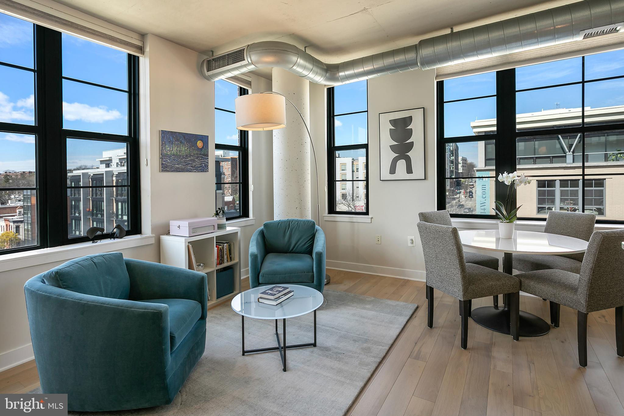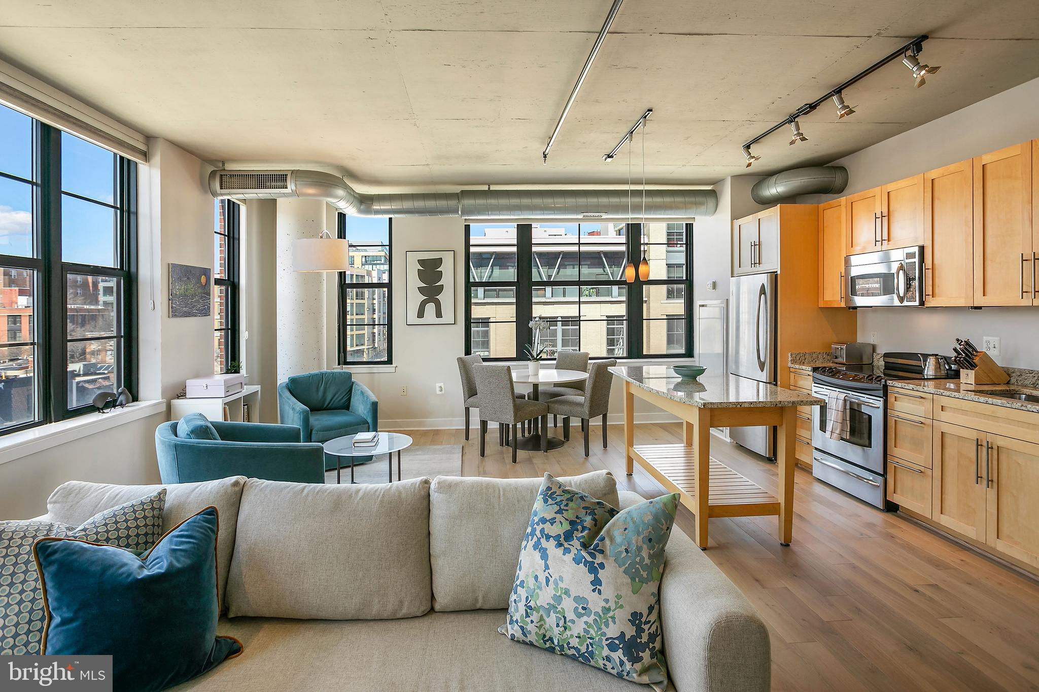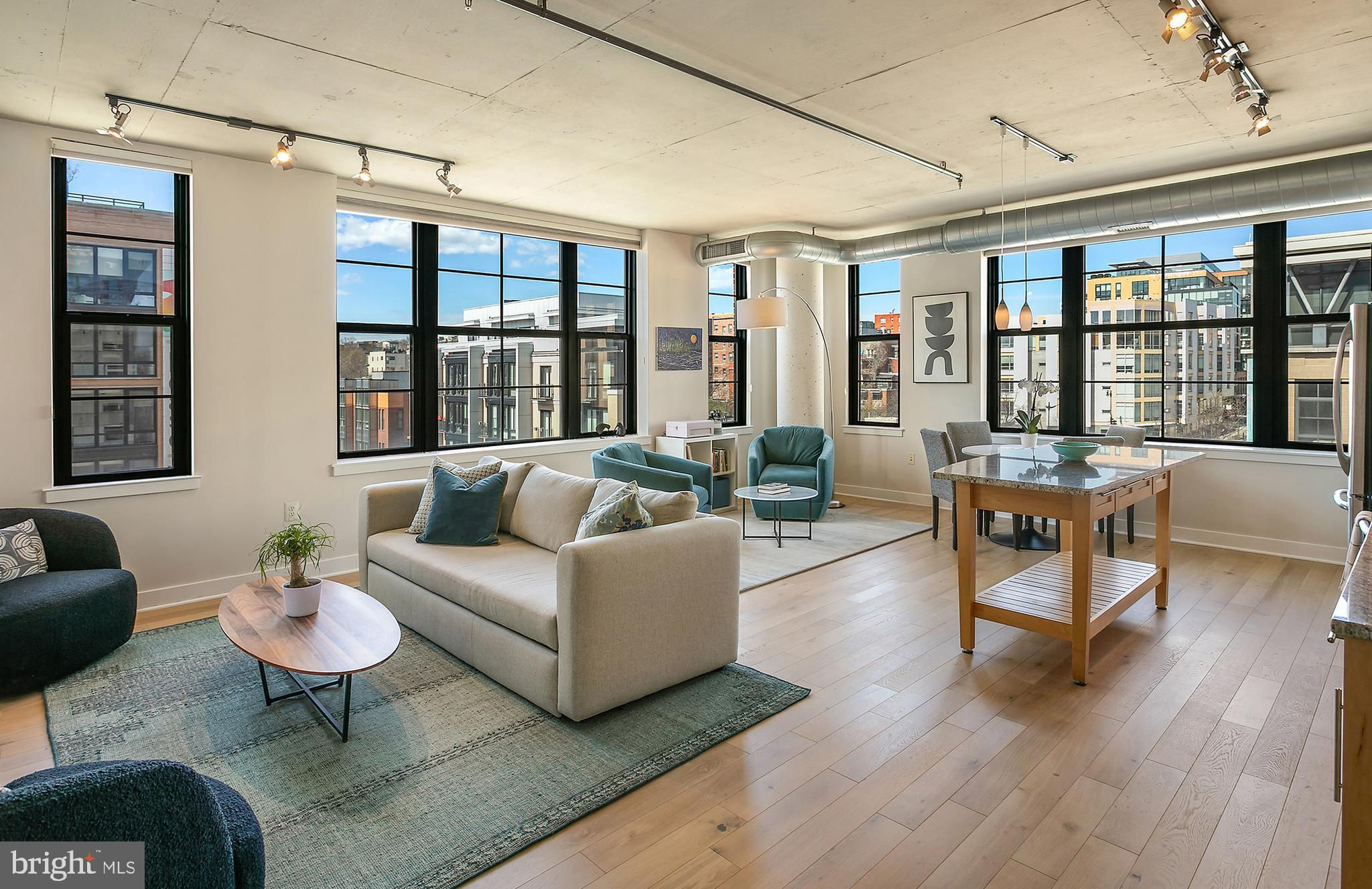 Significant $46,000 price improvement! Kickstart your day with a delightful coffee from Tatte, then head up to the 6th floor to discover this exceptional loft-style corner unit. Featuring two bedrooms and two bathrooms, this condo is bathed in natural light from its large windows with multiple exposures. Enjoy breathtaking sunsets from this vantage point. The open concept living, dining, and kitchen area offers a spacious layout, with new wide plank oak flooring and a generously sized kitchen island paired with stainless steel appliances. The split bedroom arrangement ensures privacy for guests, while dual zone climate controls enhance comfort. Both bedrooms offer ample storage with walk-in closets. GARAGE PARKING on level G-1 is included. This building, Union Row, has received numerous accolades for its innovative design, making it a distinguished and sought-after address. Residents enjoy amenities like a 24-hour front desk, an 8th-floor community terrace, and a party room. Located just two blocks from the metro and within walking distance to some of the finest restaurants and cafes in the nation's capital, this condo offers the epitome of urban convenience and lifestyle.