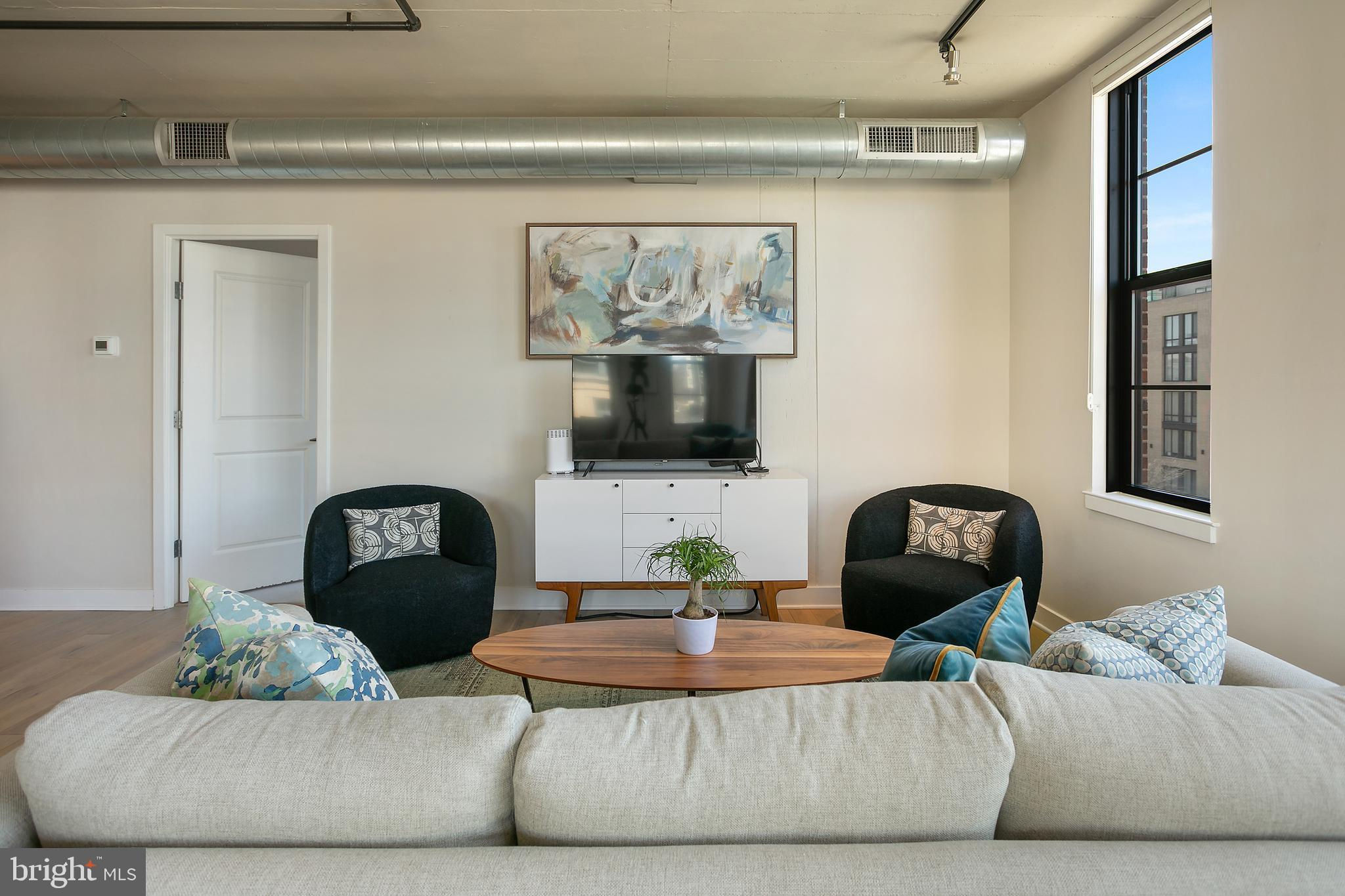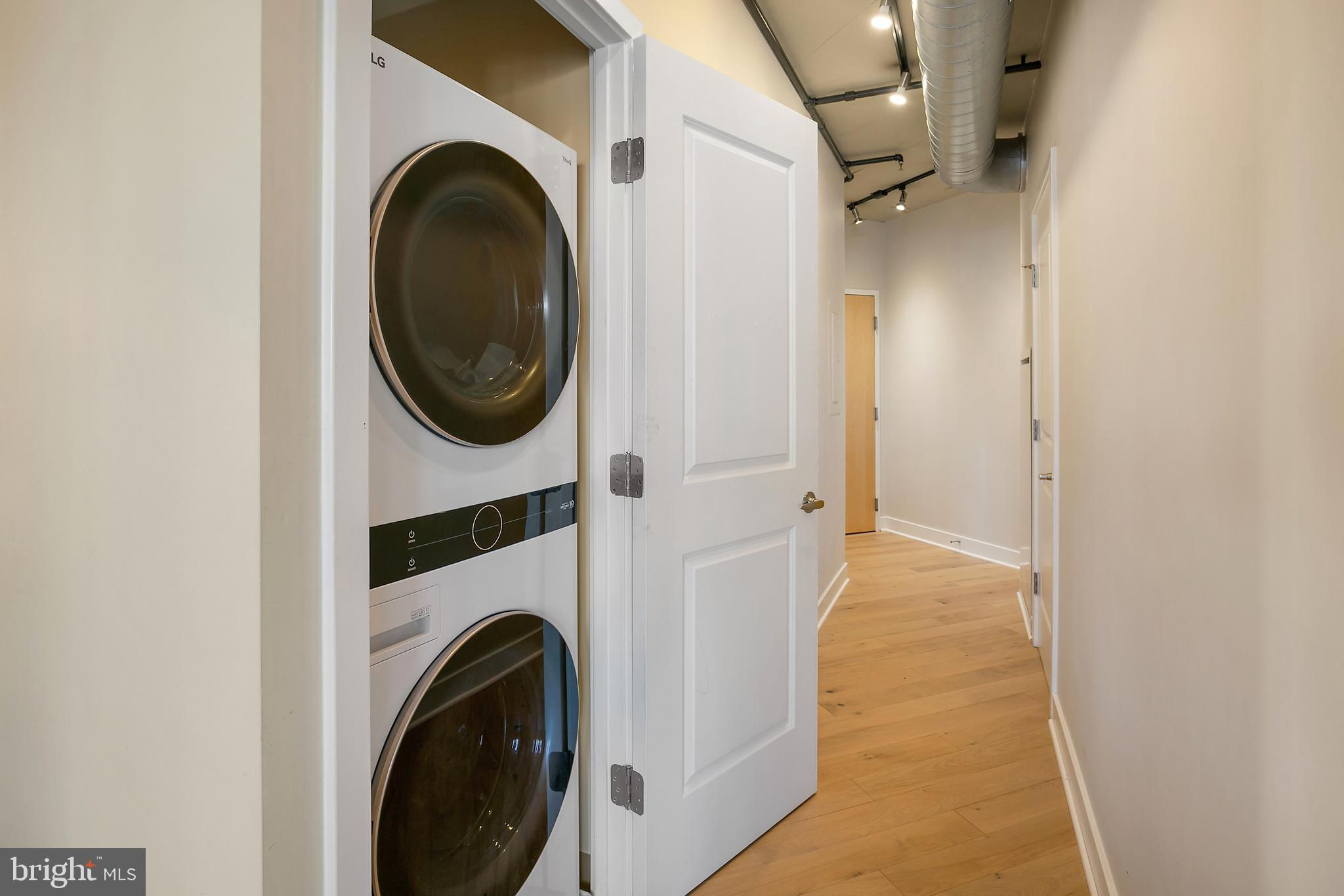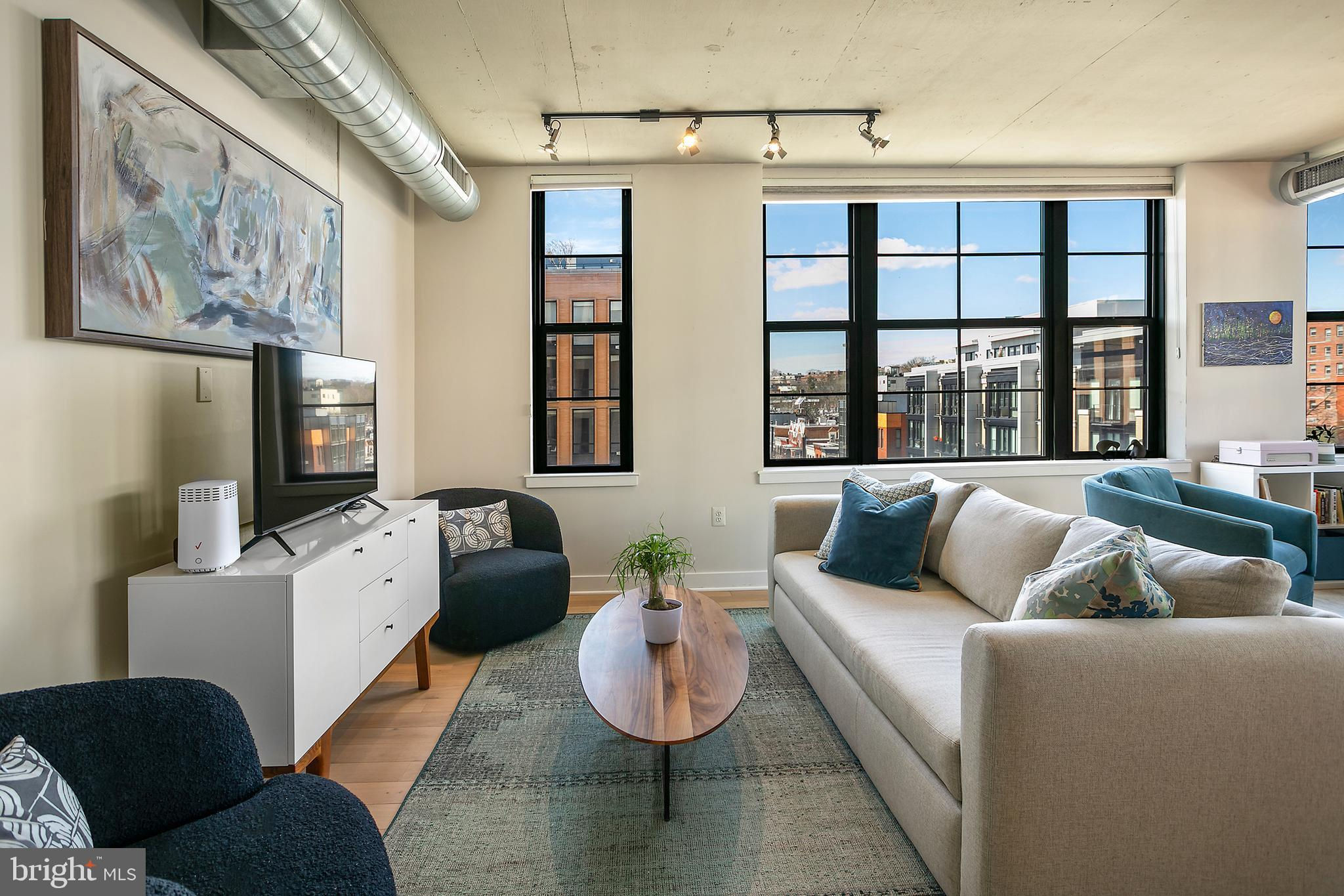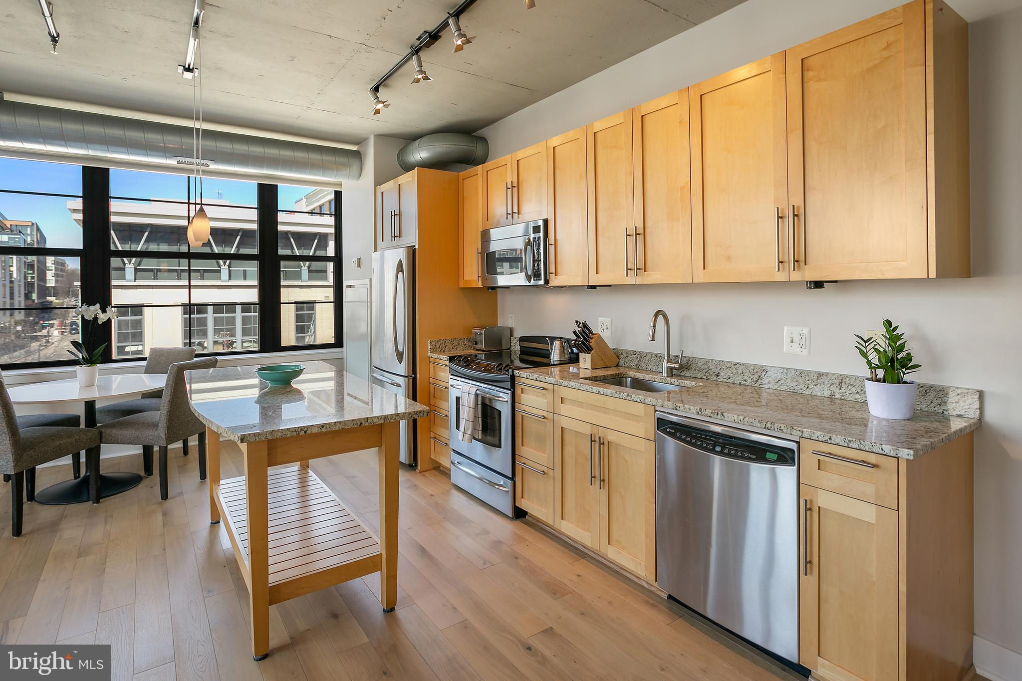 Significant $46,000 price improvement! Kickstart your day with a delightful coffee from Tatte, then head up to the 6th floor to discover this exceptional loft-style corner unit. Featuring two bedrooms and two bathrooms, this condo is bathed in natural light from its large windows with multiple exposures. Enjoy breathtaking sunsets from this vantage point. The open concept living, dining, and kitchen area offers a spacious layout, with new wide plank oak flooring and a generously sized kitchen island paired with stainless steel appliances. The split bedroom arrangement ensures privacy for guests, while dual zone climate controls enhance comfort. Both bedrooms offer ample storage with walk-in closets. GARAGE PARKING on level G-1 is included. This building, Union Row, has received numerous accolades for its innovative design, making it a distinguished and sought-after address. Residents enjoy amenities like a 24-hour front desk, an 8th-floor community terrace, and a party room. Located just two blocks from the metro and within walking distance to some of the finest restaurants and cafes in the nation's capital, this condo offers the epitome of urban convenience and lifestyle.