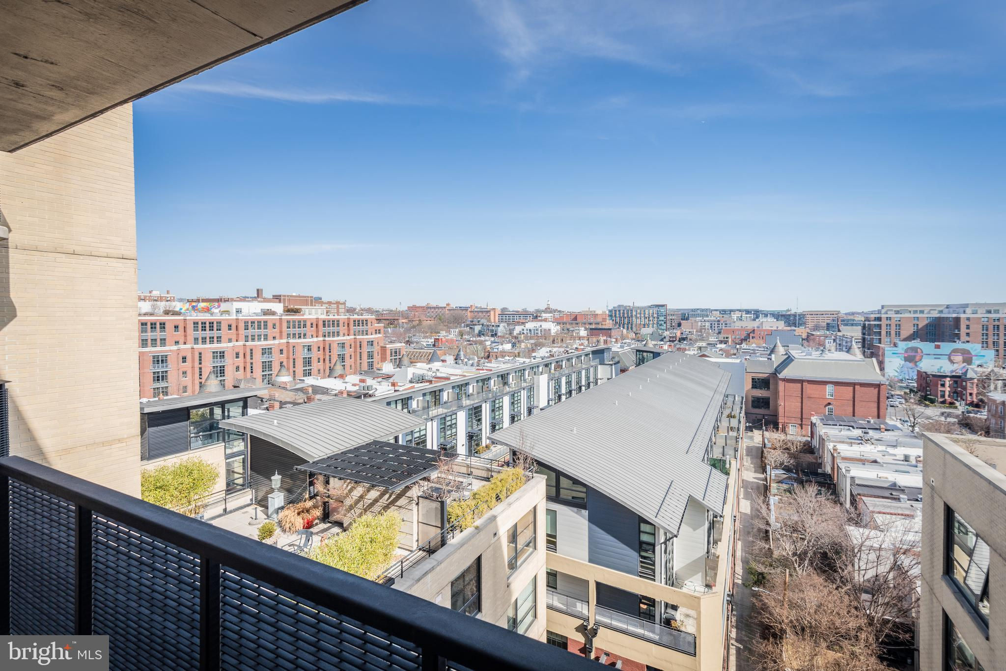 NEW PRICE! Step inside to the gorgeous and sought-after Union Row, featuring yet another incredibly built condo by PN Hoffman. Nestled in the heart of the 14th Street Corridor, this building presents an array of amenities that sets the standard in the entire district. Enter a spacious and rarely available, two-bedroom, two-bathroom unit, with the 2nd bedroom as a legal den - immediately greeted by the breathtaking city vistas and expansive floor-to-ceiling windows, offering unobstructed views of the sprawling urban skyline. The windows allow for an abundance of natural light throughout the day, creating a serene and organic living space to enjoy and exemplify the high ceilings. Discover wide plank hardwood floors and an exposed industrial concrete ceiling, imbuing the space with a chic and minimalist ambiance. The modern open floorplan consists of a gourmet chef’s kitchen with an immense island, top of the line stainless steel appliances, custom built wood cabinetry, granite countertops, under cabinet lighting, and more. Experience the versatility where the kitchen seamlessly merges with the living room yet retains its distinct area. Step onto the balcony from the living room - an ideal setting for savoring morning coffee or indulging in evening relaxation. The owner’s suite has floor to ceiling windows and access to the private balcony, a deep walk-in closet, and a beautiful full bathroom with a standing shower. The second bedroom enjoys a full en-suite bathroom with a bathtub, ample closet space and a utility closet which hosts a like-new LG stacked washer/dryer unit. The unit also includes a dedicated covered garage parking spot and one of the largest available storage units in the building. Down the hallway, you'll find an expansive terrace featuring multiple grills, umbrellas, patio furniture, and fireplace exclusively accessible to residents of the building. This inviting space is perfect for hosting parties, gatherings, or intimate get-togethers. This condominium boasts 24/7 concierge services for package handling, guest reception, and deliveries. It features multiple elevators and a dedicated spacious party room to cater to your every need. Positioned at the heart of DC's renowned 14th St Corridor, this location puts you mere steps away from some of DC's most coveted attractions with a unparalleled walkability score of 99. Discover an array of restaurants, acclaimed Michelin-starred dining, Tatte Bakery & Cafe, fitness studios, boutique shopping outlets, Trader Joe’s, Whole Foods, pharmacies, parks, metro stations, and beyond. Welcome home! You don't want to miss this rare opportunity to live in one of the most desired areas of the district.