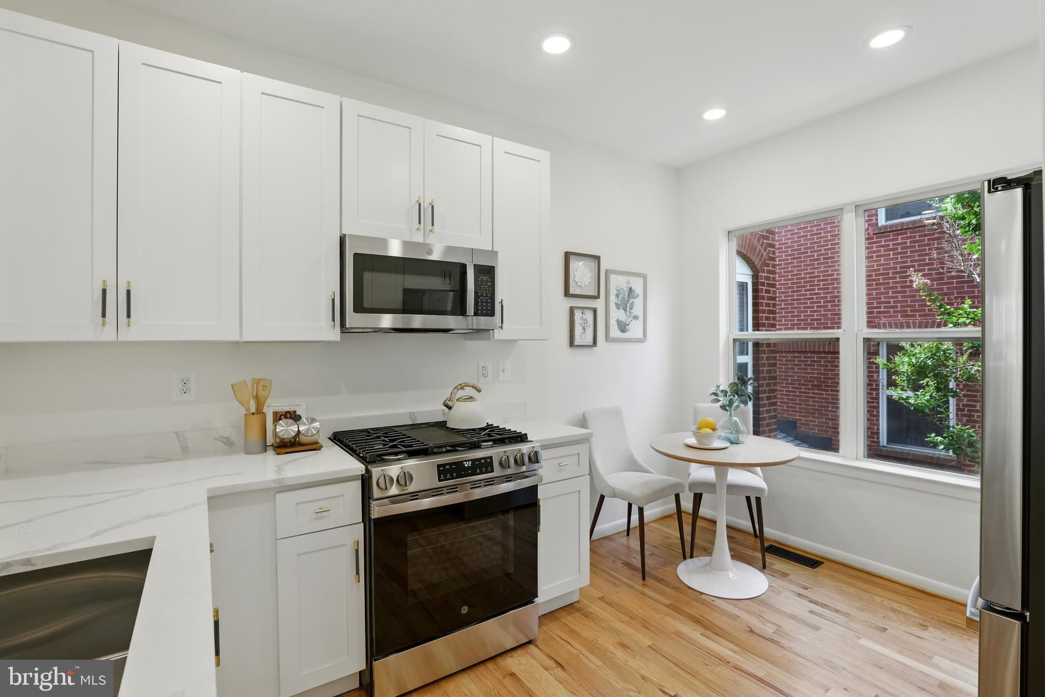 Welcome to 2127 12th Pl NW – renovated and move in ready gem with an 95-walk‑score, positioned in the U‑Street Corridor, a vibrant, walkable area known for dining, entertainment, and transit access where you’re just steps from award‑winning restaurants, coffee shops, bars, venues, parks, bike‑share, and metro access . This beautiful 2001-built residence offers a perfect blend of modern convenience and urban charm: A chef-inspired brand-new kitchen and elegant tiled fireplace that anchor a welcoming living space. Newly refinished hardwood floors throughout, complemented by a stylish tiled foyer. The main level includes a bedroom and full bath—ideal for guests or a home office. Upstairs, discover 2 spacious bedrooms, 2 full baths, and a convenient laundry area. Recent mechanical upgrades include a new furnace, and the property offers the rare perk of a private 1‑car garage. Combining thoughtful design, quality finishes, and prime location, 2127 12th Pl NW delivers contemporary urban living at its finest
