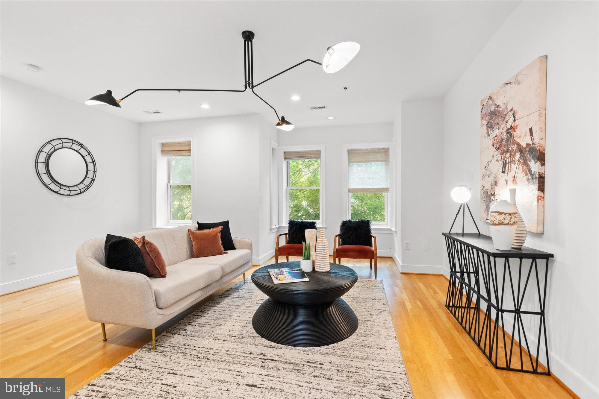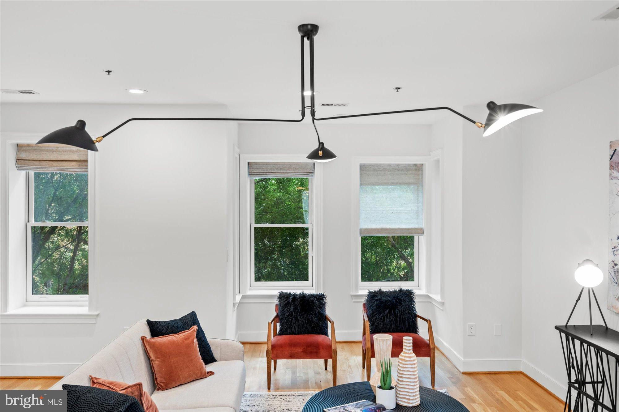 The Brocki Group Presents An Exclusive West End Penthouse. Discover townhouse-style living in the heart of DC. This rare 3-level penthouse offers 1,400 sq. ft. of private living space with its own main-level entrance—making the entire building feel like your own. The 2nd level is anchored by a spacious, light-filled 400 sq. ft. living room featuring a gas fireplace, custom built-in cabinetry and an iconic branch light fixture. A modernized kitchen, dedicated dining room, and powder room complete this floor—perfect for both entertaining and everyday comfort. On the upper level, bright skylights lead to a massive primary suite with walk-in closet space, a custom double vanity, and a private city-view balcony perched above the treetops. An equally spacious secondary suite with its own full bath adds flexibility and convenience. Bonus features include new designer light fixtures and hardware throughout, a brand-new roof, new windows, new HVAC, and LOW condo fees—offering peace of mind and long-term value. Come enjoy the vibrancy of city living with the privacy and quiet of your own townhouse-style penthouse.