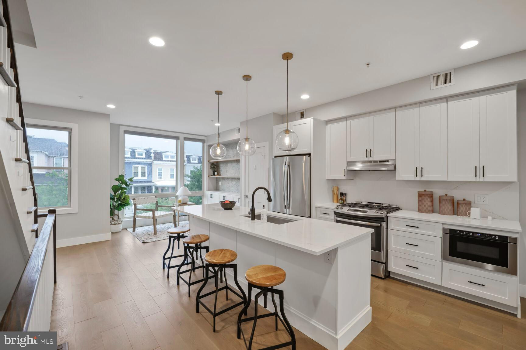 Experience sophisticated city living in this spectacular two bedroom, two and a half bath penthouse in the heart of DC. Boasting an expansive open floor plan, floor-to-ceiling windows, wide 7” plank floors, private roof deck, private parking, and stunning designer finishes throughout, this residence defines modern elegance. The main level offers a gourmet kitchen with a large island, seamlessly flowing into bright and airy dining and living spaces, perfect for both daily living and grand entertaining. Retreat to the luxurious primary suite featuring a custom walk-in closet and a spa-like marble bath with a double shower. The second bedroom includes its own private bath and walk-in closet, with a convenient washer and dryer nearby. Upstairs, your private roof deck awaits, a serene outdoor oasis with breathtaking city views. Enjoy unparalleled convenience with shops, bars, restaurants, Union Market, multiple grocery stores, and NOMA Metro just minutes away. Don’t miss the chance to live in one of DC’s most sought-after neighborhood!