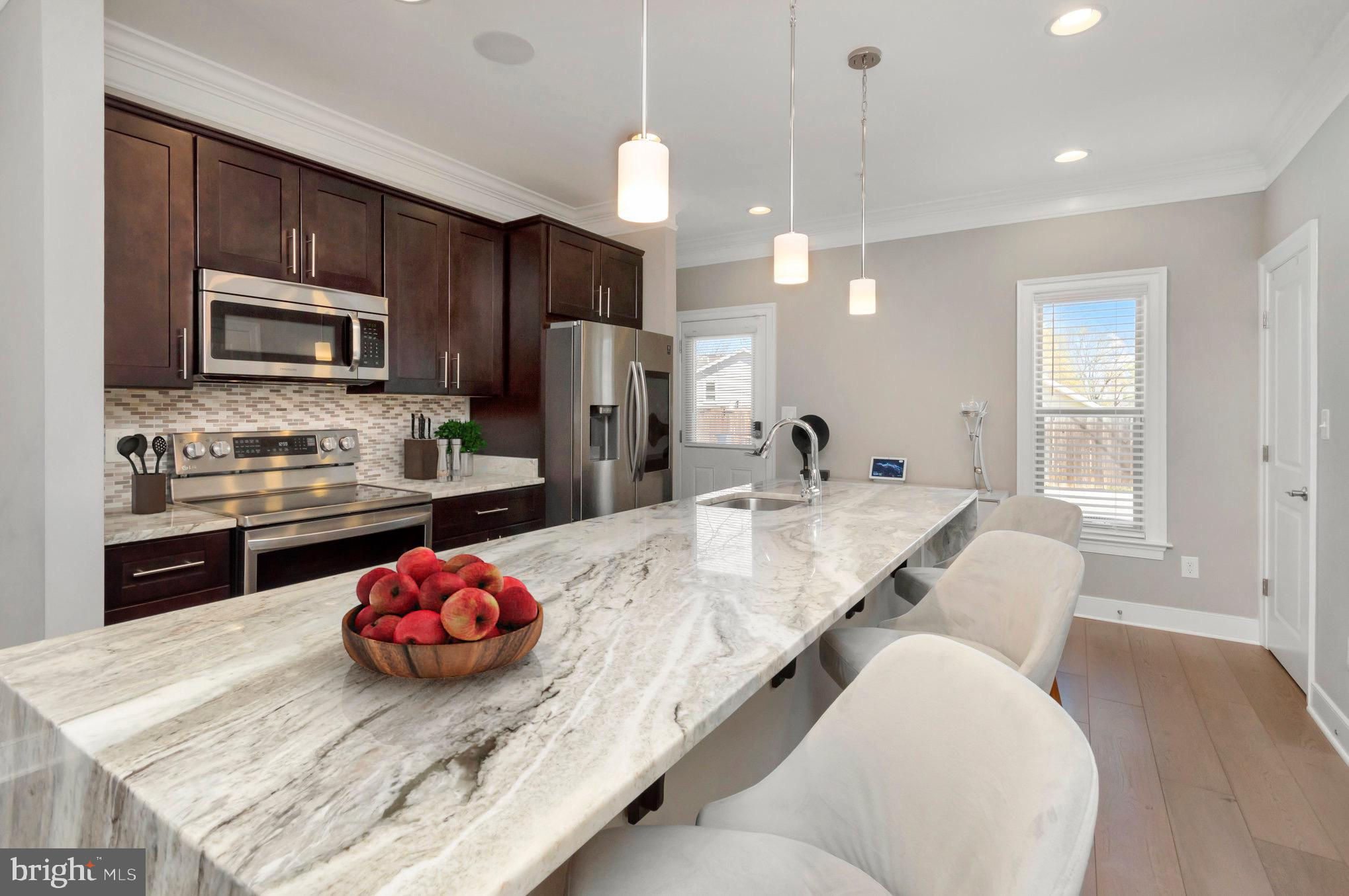 Introducing a stunning four-level townhome offering unparalleled sophistication and comfort, located in the heart of NE Washington DC. This exquisite residence boasts a plethora of upscale features, including a sleek kitchen and private primary suite level! Step inside to discover an elegant and inviting living space spread across four levels, providing ample room for relaxation, work, and entertaining. The main level showcases an open-concept design, seamlessly connecting the living, dining, and kitchen areas, ideal for modern living and hosting gatherings with family and friends. The kitchen serves as the heart of the home, featuring a stunning Quartz waterfall island that doubles as a stylish breakfast bar, offering plenty of space for meal prep and casual dining. The gleaming stainless steel appliances add a touch of sophistication, while the abundance of cabinet space ensures ample storage for all your culinary essentials. Ascend to the upper levels to find three spacious bedrooms, including a luxurious primary suite level. Two bedrooms are on the second level with one full bath. The primary bedroom suite level is complete with a private balcony, providing the perfect retreat to unwind and enjoy the scenic views. The primary suite also boasts a lavish en suite bathroom, offering a spa-like experience right at home. With four levels of living space, including a finished basement, with the fourth bedroom. This townhome offers versatility and flexibility to accommodate your lifestyle needs. Whether you're in need of a home office, a gym, or a media room, the possibilities are endless. Outside, you'll find off-street parking for two cars, providing convenience and peace of mind. Conveniently located this townhome offers easy access to Dakota Crossing with Costco, Lowe's and New York Ave to get out and around the city. With its desirable location and upscale features, this four-level townhome presents a rare opportunity to experience luxurious living at its finest. Schedule your showing today!