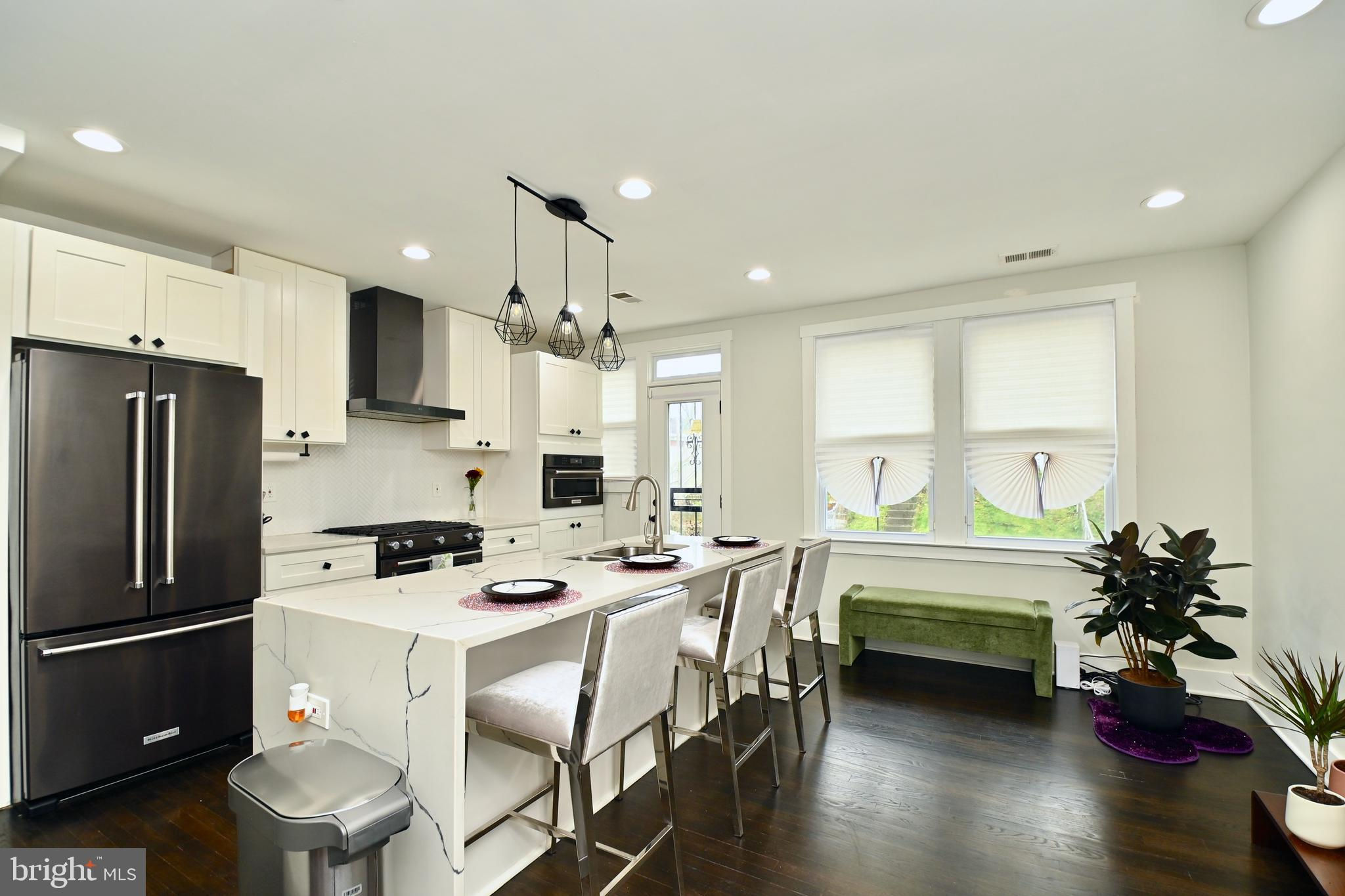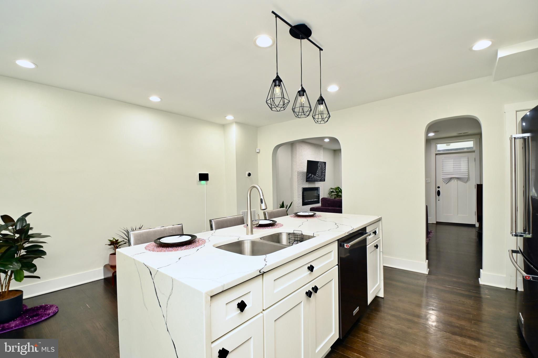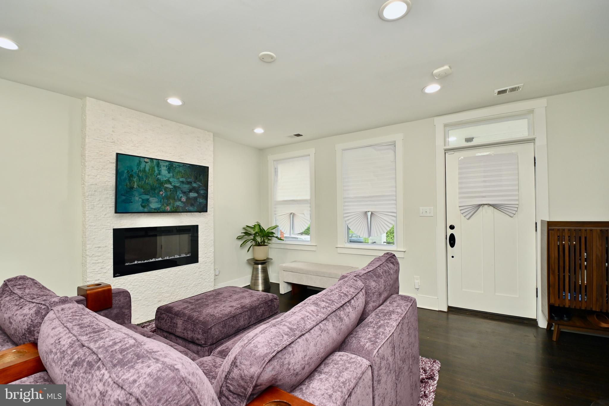 Recent price improvement has been made!! Welcome to this charming Petworth row house. The spacious living room features a remote-controlled electric fireplace and a beautiful stone accent wall. The open-concept kitchen boasts a center waterfall island, white quartz countertops, and high-end black stainless steel appliances. Upstairs, you'll find three well-proportioned bedrooms and two full bathrooms with classic marble floors. The fully finished basement offers extra living space and a half bathroom, while the backyard includes a one-car garage. Recent upgrades include central air conditioning and new windows throughout. Nestled in the vibrant Petworth neighborhood of Northwest Washington, DC, this home is surrounded by a variety of attractions. Enjoy a leisurely stroll to nearby parks like Petworth Park or Upshur Park, or explore the local dining scene with popular eateries such as Timber Pizza Co. and convenient access to organic produce at Yes! Organic Market. With easy access to public transportation and downtown DC just a short drive away, this home offers both comfort and convenience in the heart of the city.