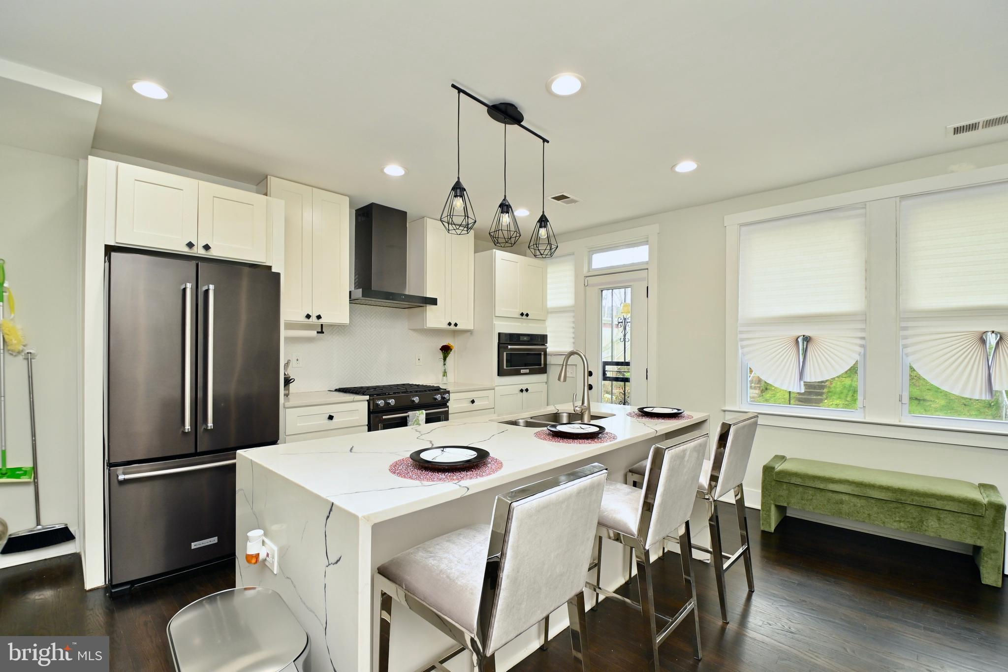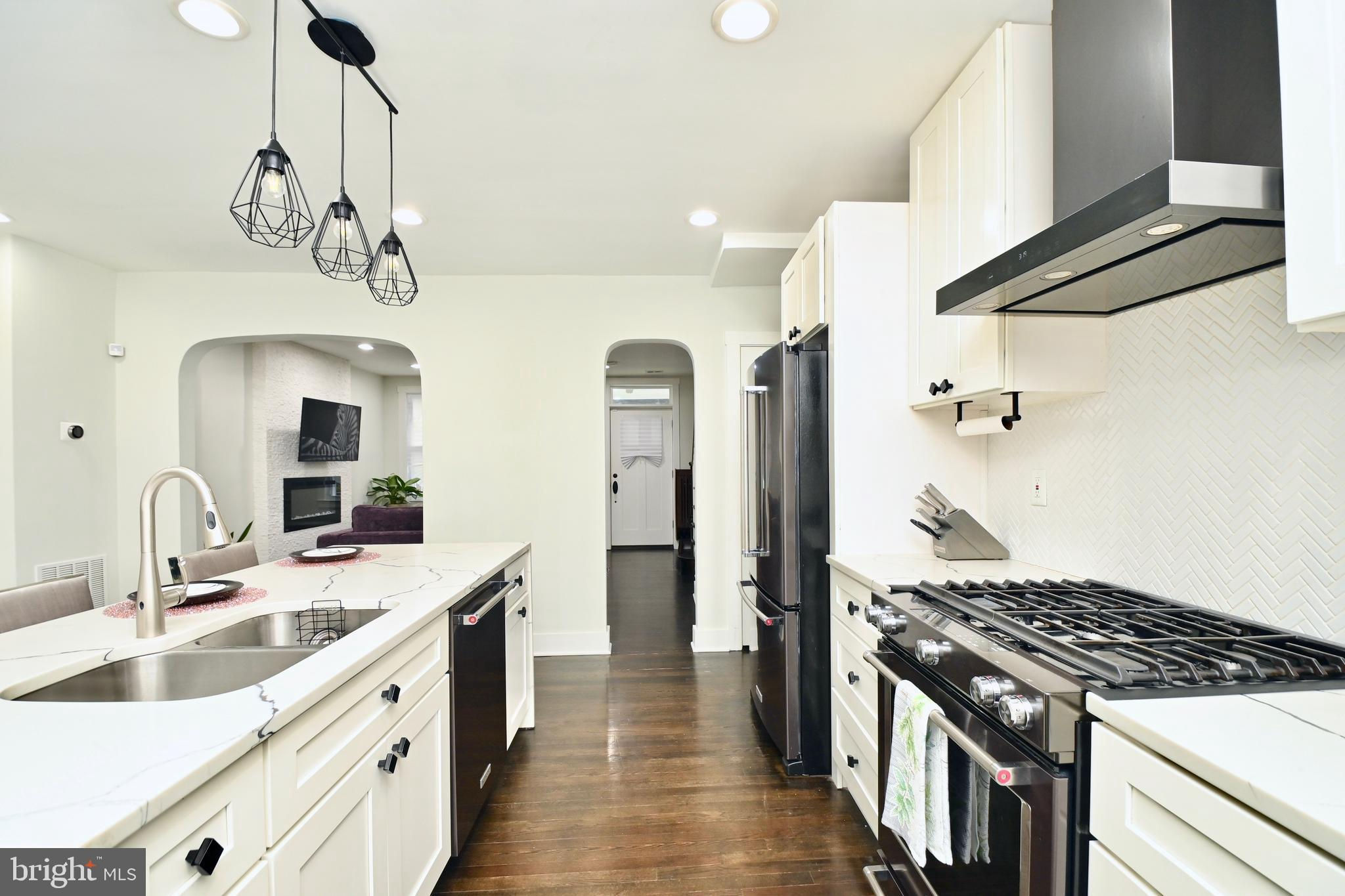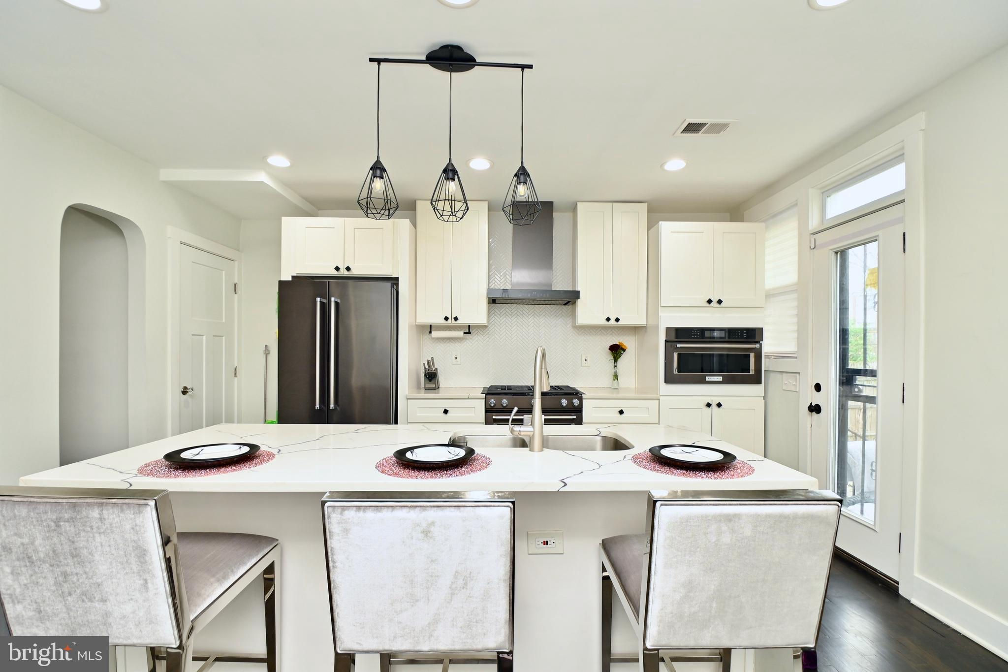Recent price improvement has been made!! Welcome to this charming Petworth row house. The spacious living room features a remote-controlled electric fireplace and a beautiful stone accent wall. The open-concept kitchen boasts a center waterfall island, white quartz countertops, and high-end black stainless steel appliances. Upstairs, you'll find three well-proportioned bedrooms and two full bathrooms with classic marble floors. The fully finished basement offers extra living space and a half bathroom, while the backyard includes a one-car garage. Recent upgrades include central air conditioning and new windows throughout. Nestled in the vibrant Petworth neighborhood of Northwest Washington, DC, this home is surrounded by a variety of attractions. Enjoy a leisurely stroll to nearby parks like Petworth Park or Upshur Park, or explore the local dining scene with popular eateries such as Timber Pizza Co. and convenient access to organic produce at Yes! Organic Market. With easy access to public transportation and downtown DC just a short drive away, this home offers both comfort and convenience in the heart of the city.