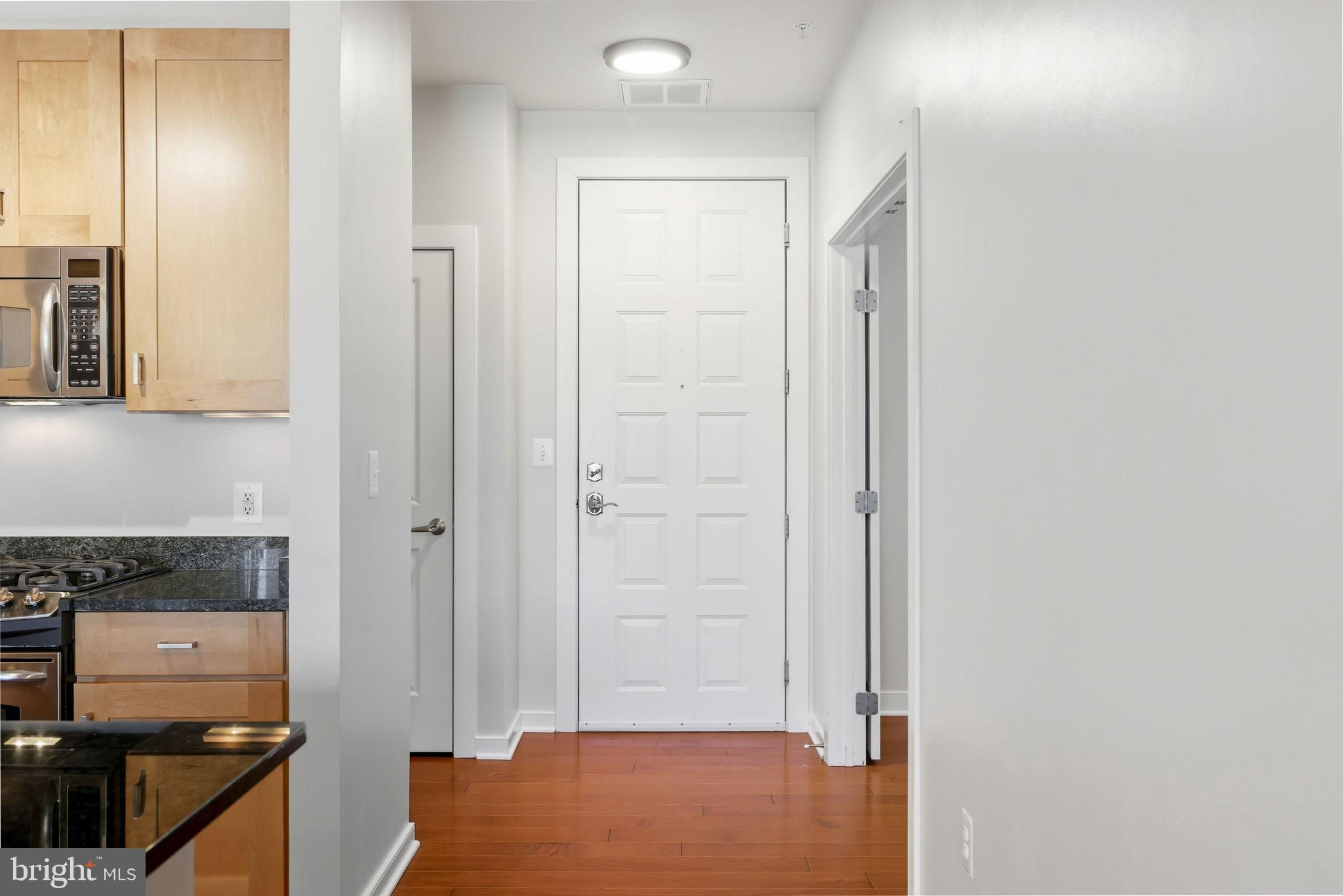 Welcome to The WestLee, a contemporary condominium community ideally situated at the crossroads of Arlington and Falls Church. This spacious one-bedroom plus den residence blends style and practicality, offering nearly 900 sq ft of living space with tall ceilings, hardwood floors, and modern finishes. The open-concept kitchen showcases granite countertops, stainless-steel appliances, and shaker-style cabinetry, seamlessly connecting to a bright living area perfect for relaxing or entertaining.Unwind in the comfortable bedroom with a walk-in closet, or enjoy a quiet moment in the flexible den/office—perfect for today’s work-from-home lifestyle. Additional highlights include a newer washer/dryer, tankless hot water system, assigned garage parking, and extra storage.Residents of The WestLee enjoy access to two serene courtyards, a well-equipped fitness center, and a welcoming community room. Located just minutes from East Falls Church Metro, I-66, the W&OD Trail, local cafés, and shops, this home offers the best of Northern Virginia living.At The WestLee, the sense of community truly shines — from festive holiday decorations in the lobby to cheerful hallway wreaths and twinkling lights that change with the seasons. Whether it’s pumpkins in October, garlands in December, or pastel blooms in spring, the residents here love making their shared spaces feel warm and welcoming.Offered at $450,000 — below recent comps and ready for its next owner!