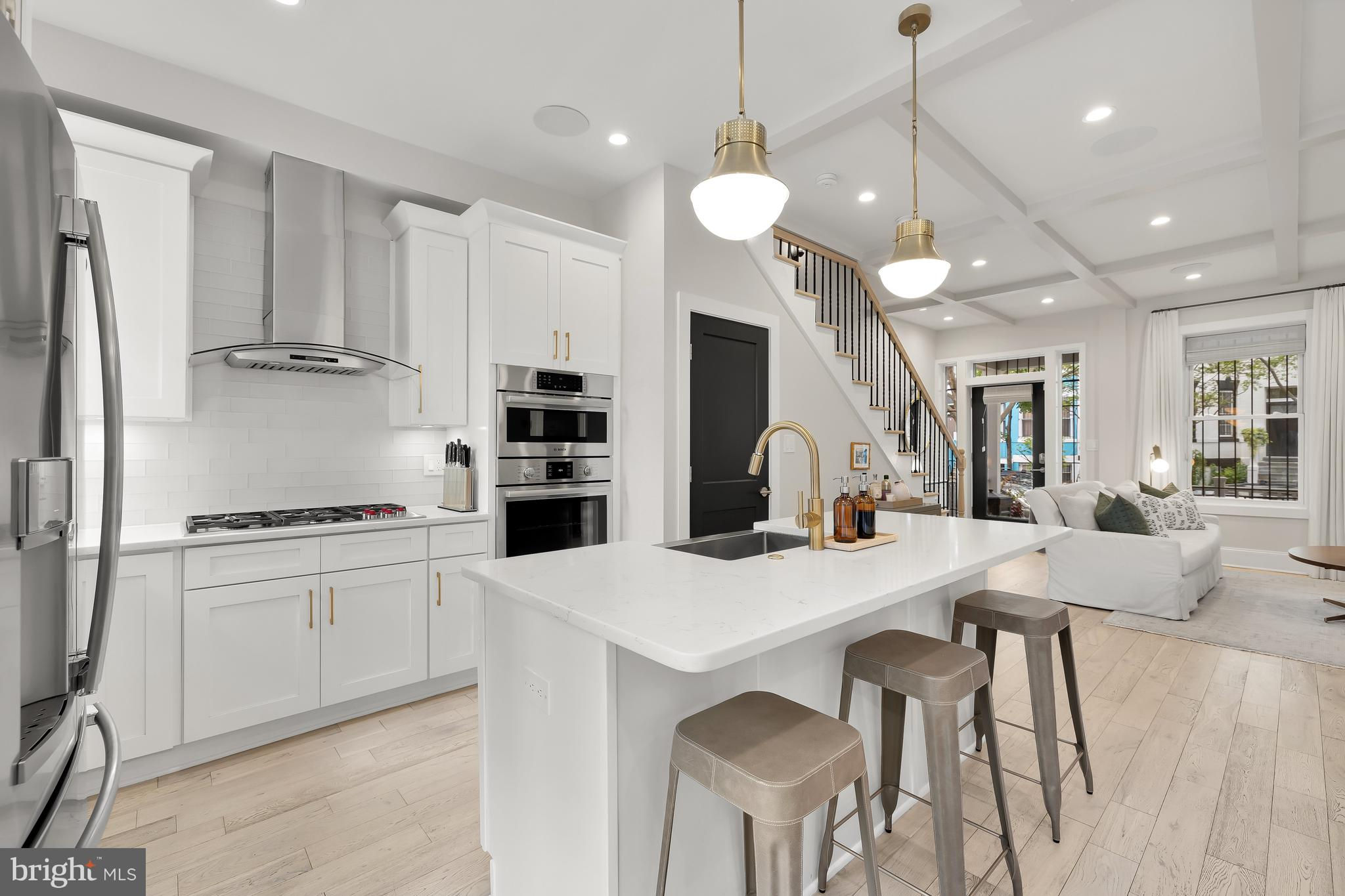 Open House 6/15!! Saturday, 1-4pm!! Welcome to 2210 Flagler Pl NW, a stunning 4 bedroom, 4.5 bathroom residence sited on one of the most beautiful one-way streets in Bloomingdale! This exceptional 4 level home boasts unparalleled craftsmanship and modern finishes throughout, including white oak wood floors, sleek Visual Comfort lighting, and exquisite designer wallpapers. Its sense of elevated ambiance, along with multiple outdoor spaces and secure parking, offers its residents the ideal backdrop for a more refined urban lifestyle. The home’s extra-wide layout and high coffered ceilings allow natural light to pour in and enhance the main level’s sense of spaciousness and sophistication. Designed for culinary enthusiasts, the kitchen boasts top-of-the-line Wolf and Bosch appliances including a 5 burner 36” professional gas cooktop, a stainless farm sink, quartz counters, and island seating, offering a perfect blend of style and functionality. Convenience is paramount with a half bath located adjacent to the kitchen. French doors open onto a deck and patio, creating an inviting outdoor space for grilling and relaxation. Though this patio shares space with parking for two cars, its ampleness is striking. Four generously-sized bedrooms provide ample space for rest, rejuvenation, and livability. The upper-level hosts two bedrooms, including an ensuite, as well as the convenience of 2nd-floor laundry. Ascend to the next level where a large primary ensuite bedroom awaits, complete with a spa-like bathroom, walk-in closet, and direct access to a spacious deck from which you can enjoy watching the National Mall’s 4th of July fireworks show or sipping your morning coffee. The basement is a haven for relaxation and entertainment, featuring a fully finished space with one bedroom, a full bathroom, laundry, a wet bar with a wine refrigerator, and an impressive wall of built-ins cabinets. This level includes a walkout to rear patio, ensuring ease and comfort for residents and guests alike. 2210 Flagler Pl NW stands as a spectacular example of a home that has it all from city living to historic community charm. From its finely curated finishes to its outdoor spaces, secure parking, and location, this meticulously re-imagined residence is ready to elevate your lifestyle to new heights. Conveniently situated near Downtown, Crispus Attucks Park, and popular Bloomingdale restaurants like the Red Hen, Big Bear, Boundary Stone, and more to come from the long-awaited McMillan project, you’ll love where you live!