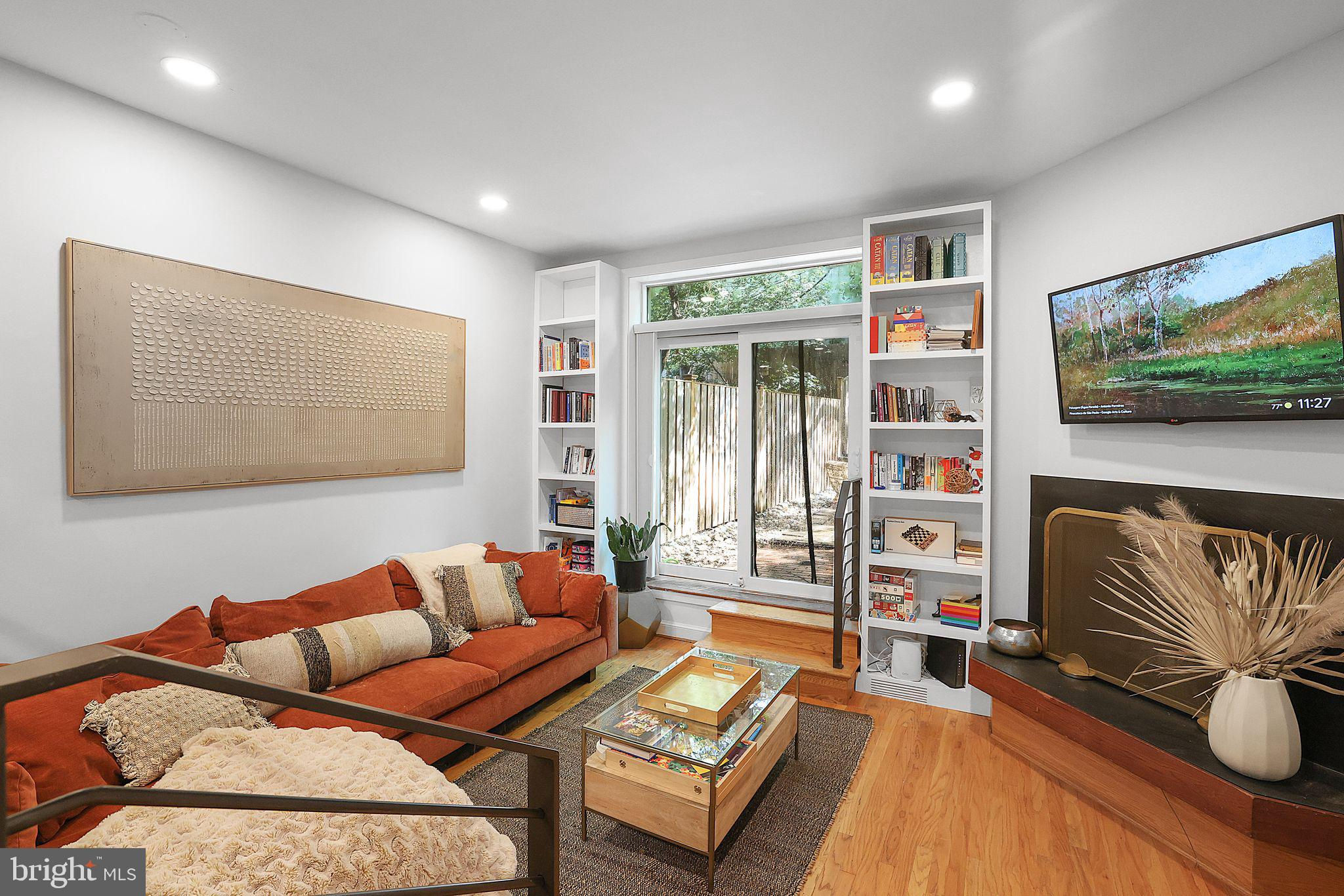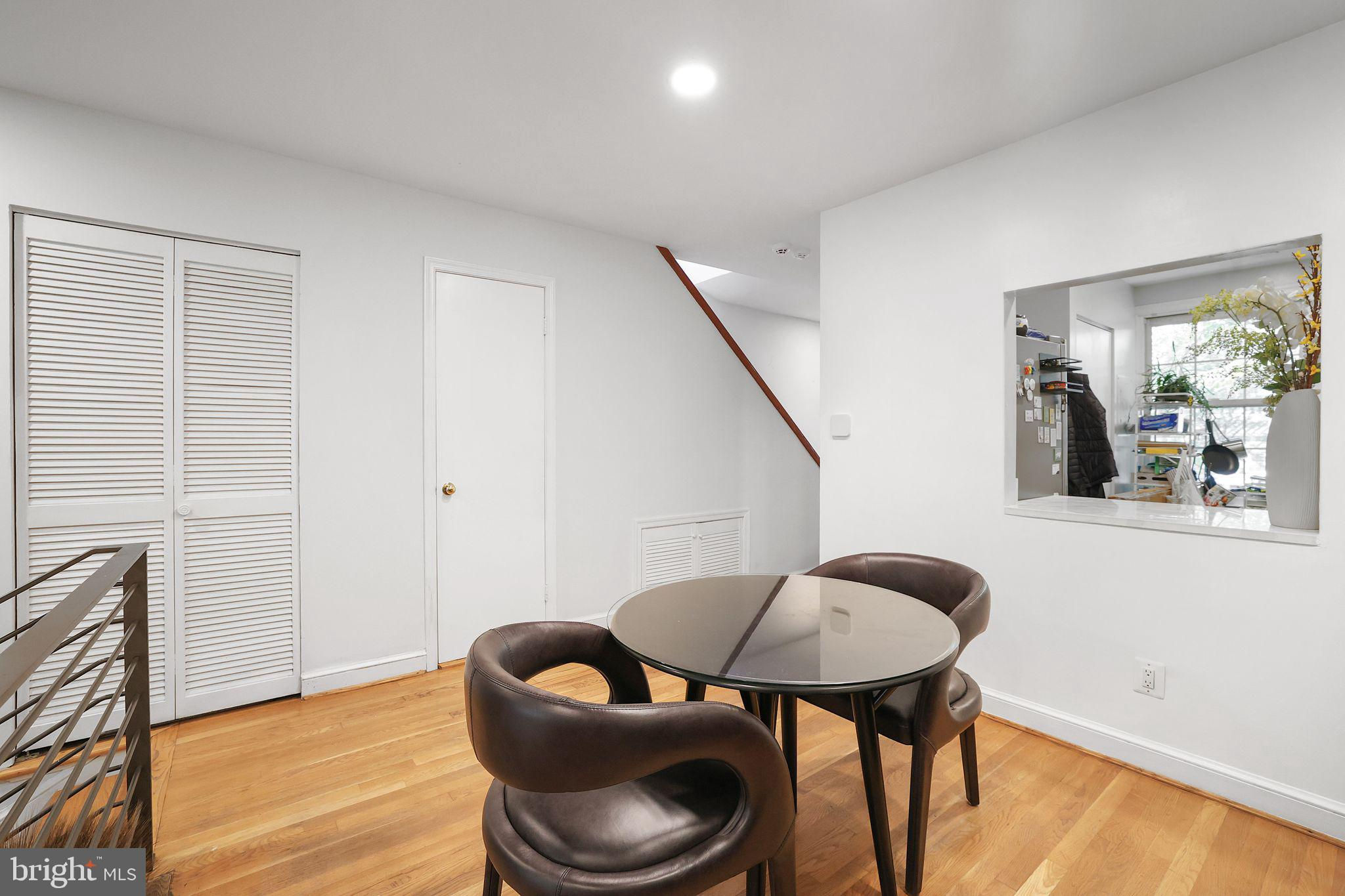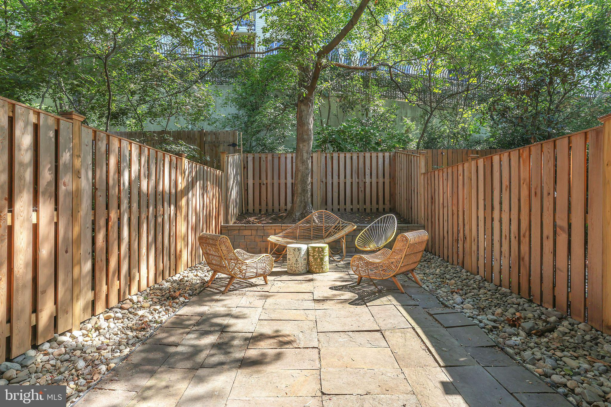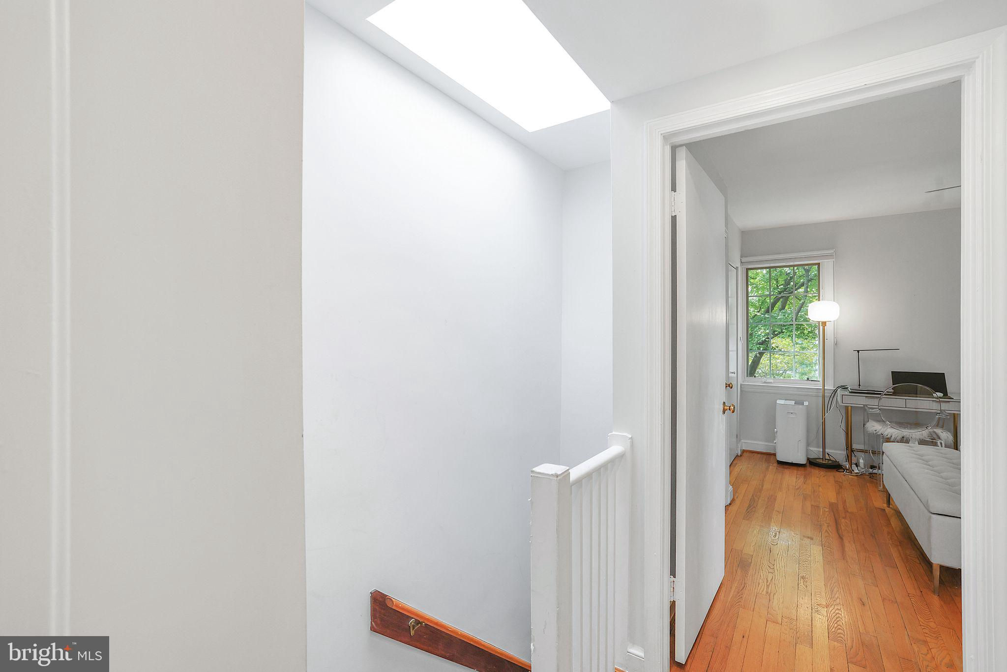 Super rare two level row home in Adams Morgan priced like a condo but with no hoa fee! Discover this beautiful 2 bed 2.5 bath impeccably maintained home, nestled above the serene, tree-lined Ontario Road in the elegant Adams Morgan/Meridian Hill neighborhood. This residence boasts an inviting open floor plan, a cozy corner hearth fireplace, and stunning hardwood floors. Sliding glass doors lead to an expansive rear private garden, featuring a canopy of mature trees—an enchanting oasis perfect for al-fresco dining, entertaining, and stargazing. The ample kitchen showcases white quartz countertops and stainless-steel appliances, complemented by an oversized window overlooking the front garden. A convenient powder room completes the main level. Upstairs, three large skylights fill the space with natural light, including one that brightens the stairwell. Two generously sized bedrooms offer walls of closets and delightful tree-top views. Both full baths are bathed in sunlight, adding to the home's charm. Situated on the peaceful side of Adams Morgan, this home is just blocks from vibrant restaurants, cafes, nightlife, gourmet shopping, parks, multiple grocery stores and the metro. With a WalkScore of 95, this is city living at its finest! Do not miss the opportunity to see this home!