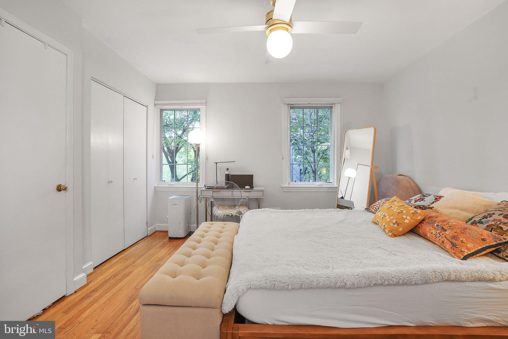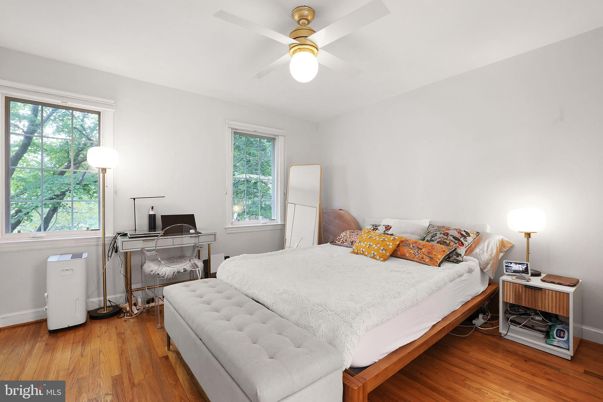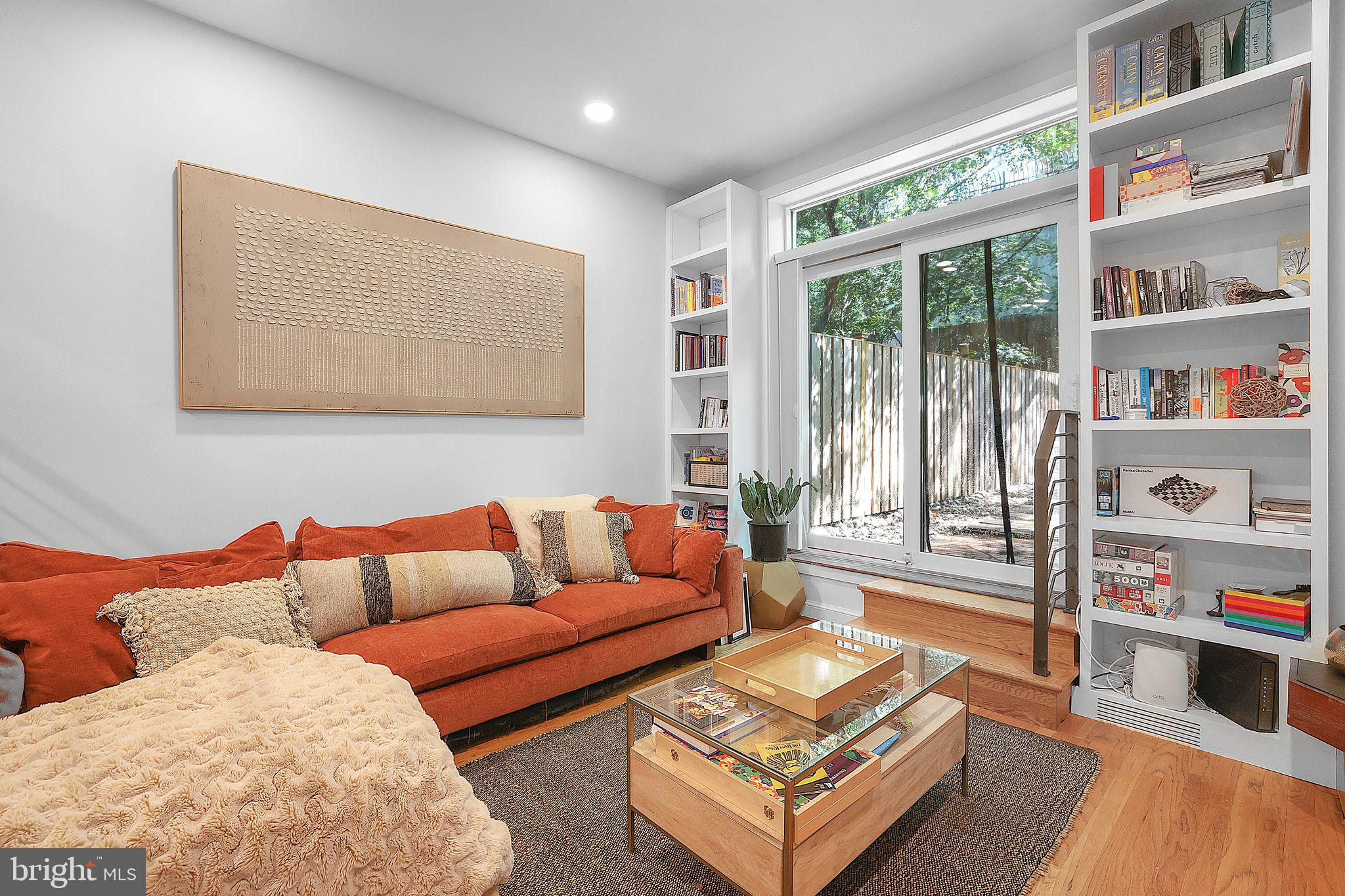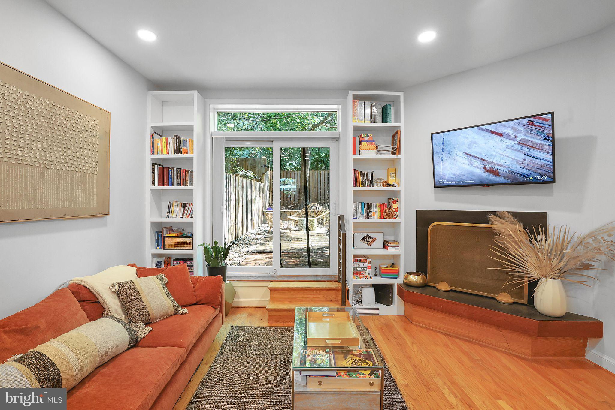 Super rare two level row home in Adams Morgan priced like a condo but with no hoa fee! Discover this beautiful 2 bed 2.5 bath impeccably maintained home, nestled above the serene, tree-lined Ontario Road in the elegant Adams Morgan/Meridian Hill neighborhood. This residence boasts an inviting open floor plan, a cozy corner hearth fireplace, and stunning hardwood floors. Sliding glass doors lead to an expansive rear private garden, featuring a canopy of mature trees—an enchanting oasis perfect for al-fresco dining, entertaining, and stargazing. The ample kitchen showcases white quartz countertops and stainless-steel appliances, complemented by an oversized window overlooking the front garden. A convenient powder room completes the main level. Upstairs, three large skylights fill the space with natural light, including one that brightens the stairwell. Two generously sized bedrooms offer walls of closets and delightful tree-top views. Both full baths are bathed in sunlight, adding to the home's charm. Situated on the peaceful side of Adams Morgan, this home is just blocks from vibrant restaurants, cafes, nightlife, gourmet shopping, parks, multiple grocery stores and the metro. With a WalkScore of 95, this is city living at its finest! Do not miss the opportunity to see this home!