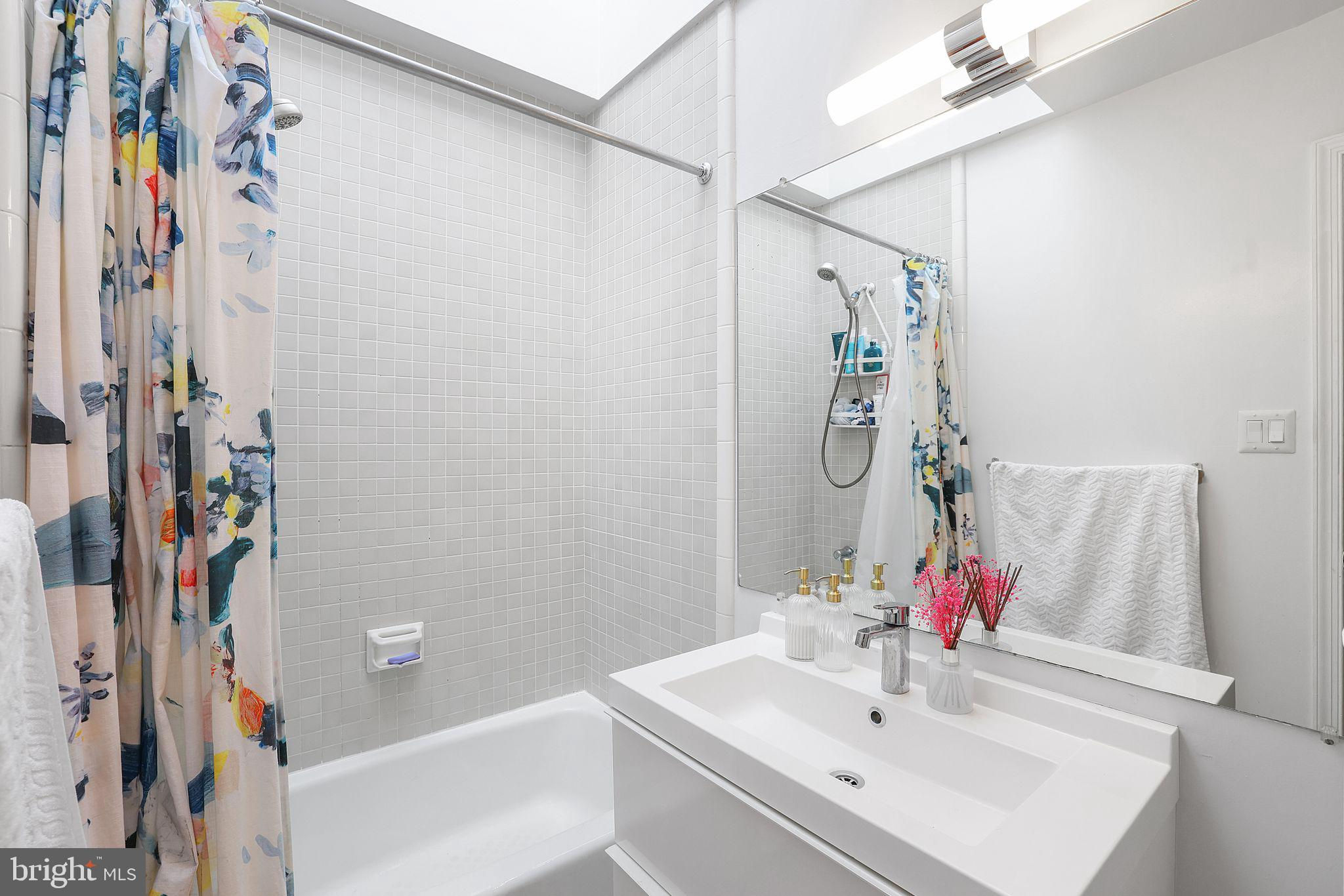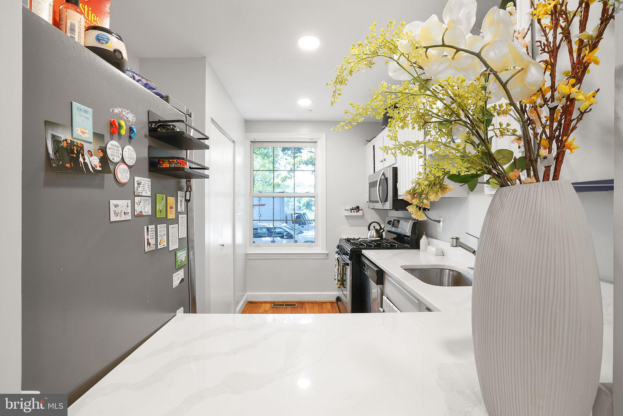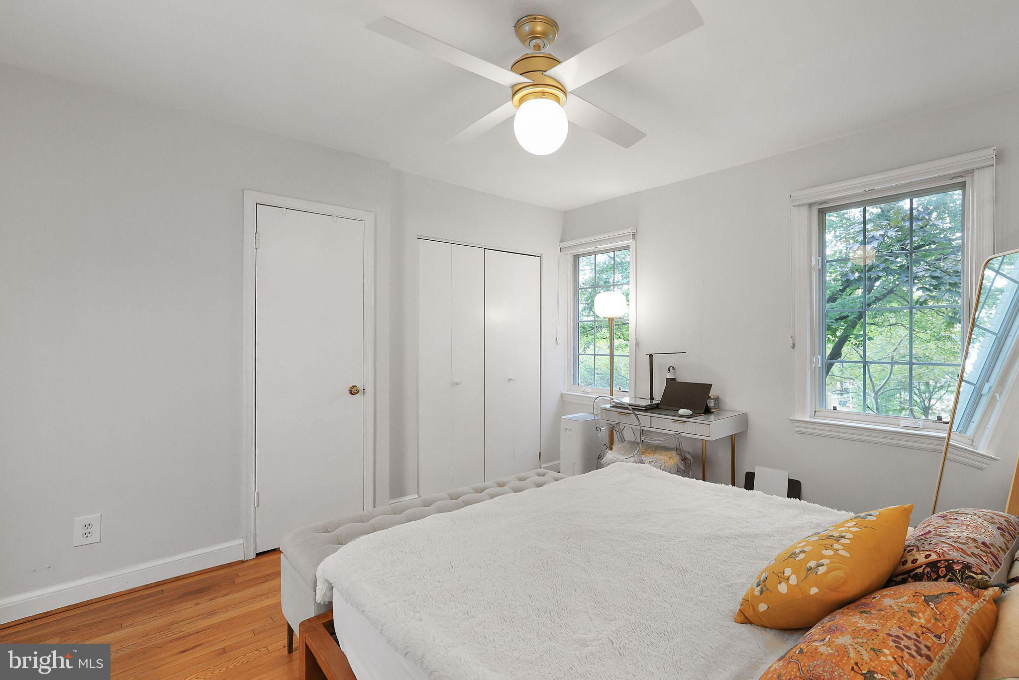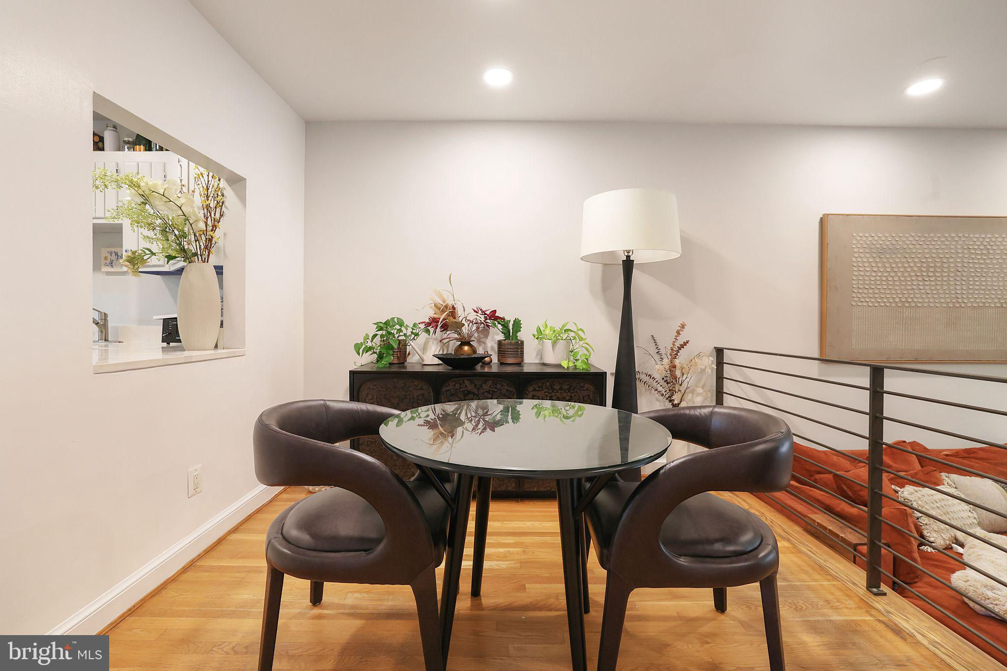 Super rare two level row home in Adams Morgan priced like a condo but with no hoa fee! Discover this beautiful 2 bed 2.5 bath impeccably maintained home, nestled above the serene, tree-lined Ontario Road in the elegant Adams Morgan/Meridian Hill neighborhood. This residence boasts an inviting open floor plan, a cozy corner hearth fireplace, and stunning hardwood floors. Sliding glass doors lead to an expansive rear private garden, featuring a canopy of mature trees—an enchanting oasis perfect for al-fresco dining, entertaining, and stargazing. The ample kitchen showcases white quartz countertops and stainless-steel appliances, complemented by an oversized window overlooking the front garden. A convenient powder room completes the main level. Upstairs, three large skylights fill the space with natural light, including one that brightens the stairwell. Two generously sized bedrooms offer walls of closets and delightful tree-top views. Both full baths are bathed in sunlight, adding to the home's charm. Situated on the peaceful side of Adams Morgan, this home is just blocks from vibrant restaurants, cafes, nightlife, gourmet shopping, parks, multiple grocery stores and the metro. With a WalkScore of 95, this is city living at its finest! Do not miss the opportunity to see this home!