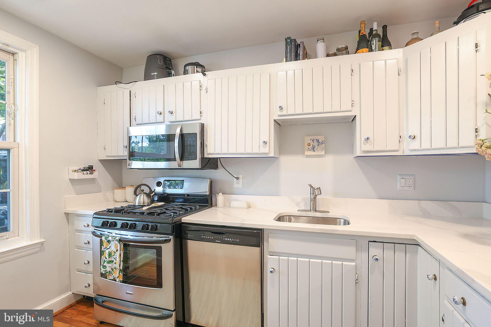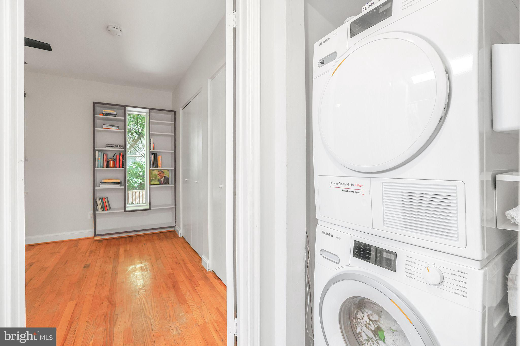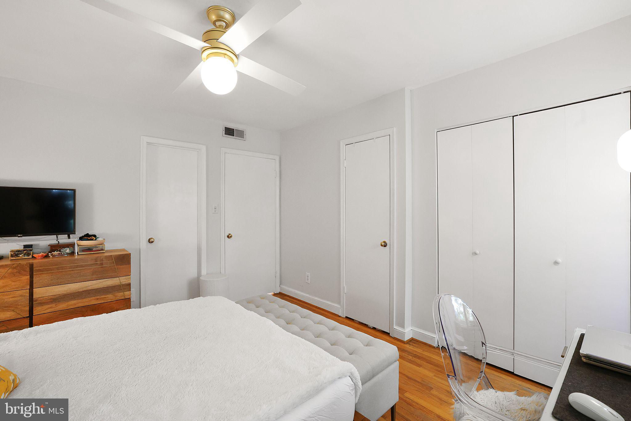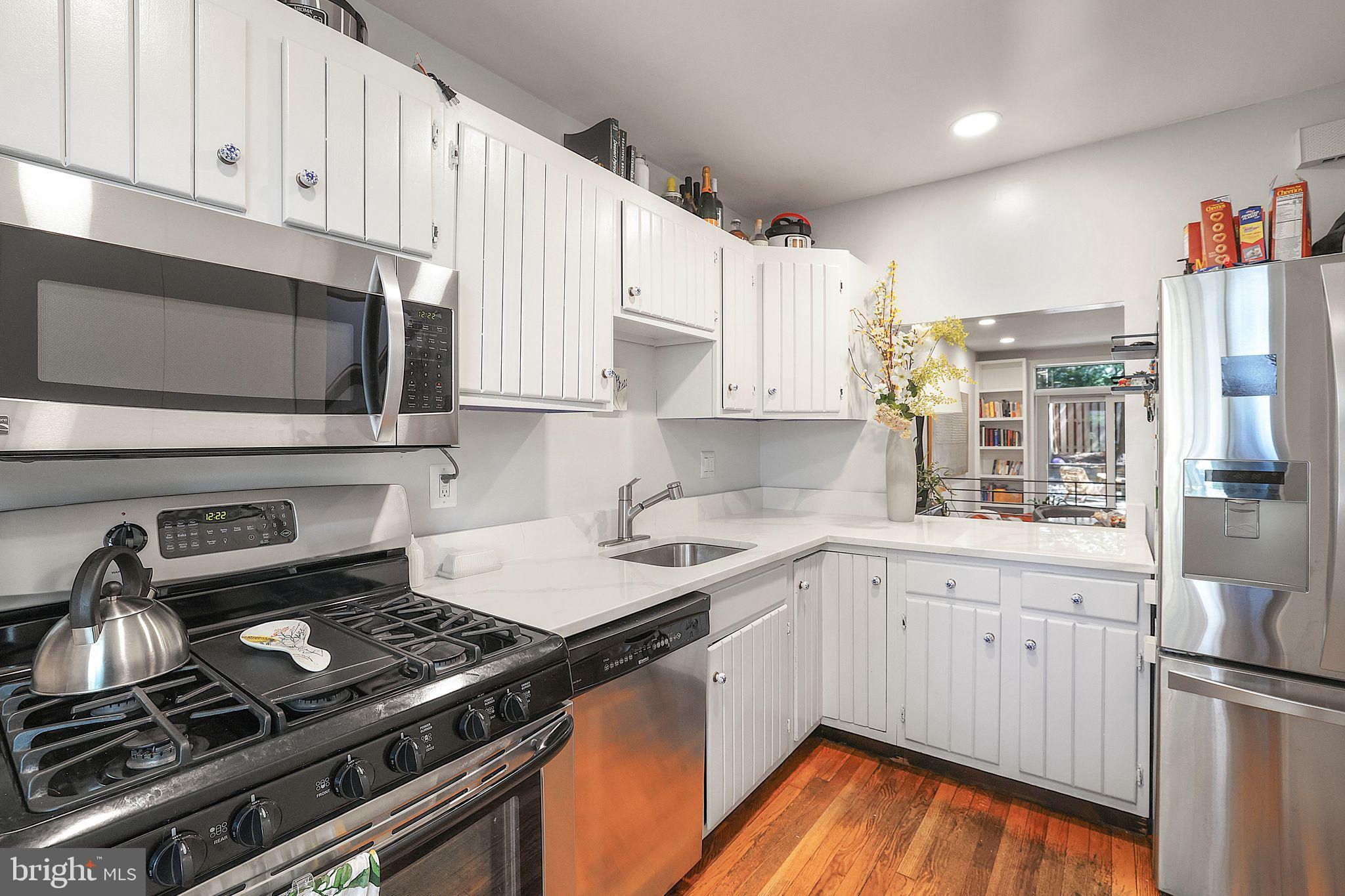 Super rare two level row home in Adams Morgan priced like a condo but with no hoa fee! Discover this beautiful 2 bed 2.5 bath impeccably maintained home, nestled above the serene, tree-lined Ontario Road in the elegant Adams Morgan/Meridian Hill neighborhood. This residence boasts an inviting open floor plan, a cozy corner hearth fireplace, and stunning hardwood floors. Sliding glass doors lead to an expansive rear private garden, featuring a canopy of mature trees—an enchanting oasis perfect for al-fresco dining, entertaining, and stargazing. The ample kitchen showcases white quartz countertops and stainless-steel appliances, complemented by an oversized window overlooking the front garden. A convenient powder room completes the main level. Upstairs, three large skylights fill the space with natural light, including one that brightens the stairwell. Two generously sized bedrooms offer walls of closets and delightful tree-top views. Both full baths are bathed in sunlight, adding to the home's charm. Situated on the peaceful side of Adams Morgan, this home is just blocks from vibrant restaurants, cafes, nightlife, gourmet shopping, parks, multiple grocery stores and the metro. With a WalkScore of 95, this is city living at its finest! Do not miss the opportunity to see this home!