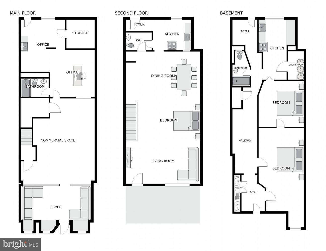 Prime 4-Unit Mixed-Use Property with Walkout Basement & 2-Car Garage! Fantastic opportunity! This fully equipped 4-unit mixed-use property offers incredible versatility and income potential. Three 1-Bedroom units and one commercial space. Each residential unit features a private kitchen, 1 full bathroom, and 1 bedroom, providing comfortable, self-sufficient living spaces. Main level has extra half bath. The walkout basement unit adds extra convenience and rental appeal. A 2-car garage offers additional storage or parking options. Whether you're looking for an income-generating property or a live-work setup, this is a rare find with endless possibilities!
