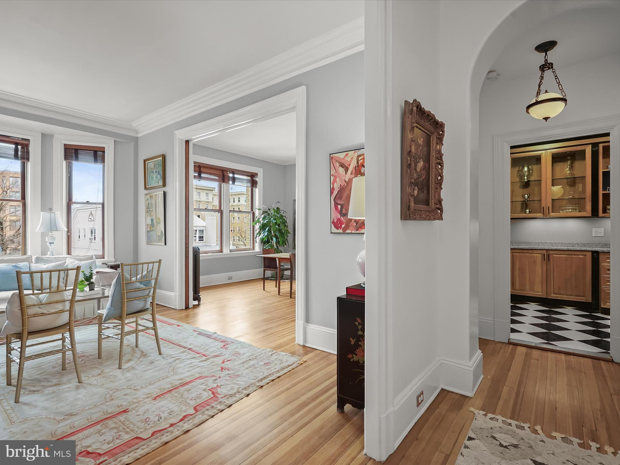 Discover the perfect blend of historic charm and modern luxury in this stunning, light-filled, quiet, spacious 3-bedroom, 2-bathroom residence at The Mendota, the District's first luxury apartment building. With over 10-foot ceilings, oversized windows, and large pocket doors that separate the spacious living and dining areas, this home exudes elegance and comfort. The fully renovated kitchen features a wet bar and an eat-in space. The versatile third bedroom offers the potential to be a home office. The living and dining rooms offer views of Wyoming Ave NW, providing a serene and vibrant living experience. The apartment has an in-unit washer/dryer. Ideally located just moments from Dupont Circle Metro, Rock Creek Park, renowned restaurants, shops, and embassies, this residence combines the best of city living and tranquility. Once home to Woodrow Wilson, The Mendota was featured in Goode's Best Addresses and remains a historic gem in the Kalorama Triangle. With architectural details like cathedral ceilings, oversized windows, original crown moldings, and Victorian-tiled fireplaces, this 7-story building offers some of the most generous floor plans in the city. Building amenities include a welcoming parlor, a private courtyard with benches, well-maintained landscaping, bicycle storage, and a 24/7 front desk for your convenience. Live in a piece of history while enjoying all the comforts of modern living—schedule your tour today!