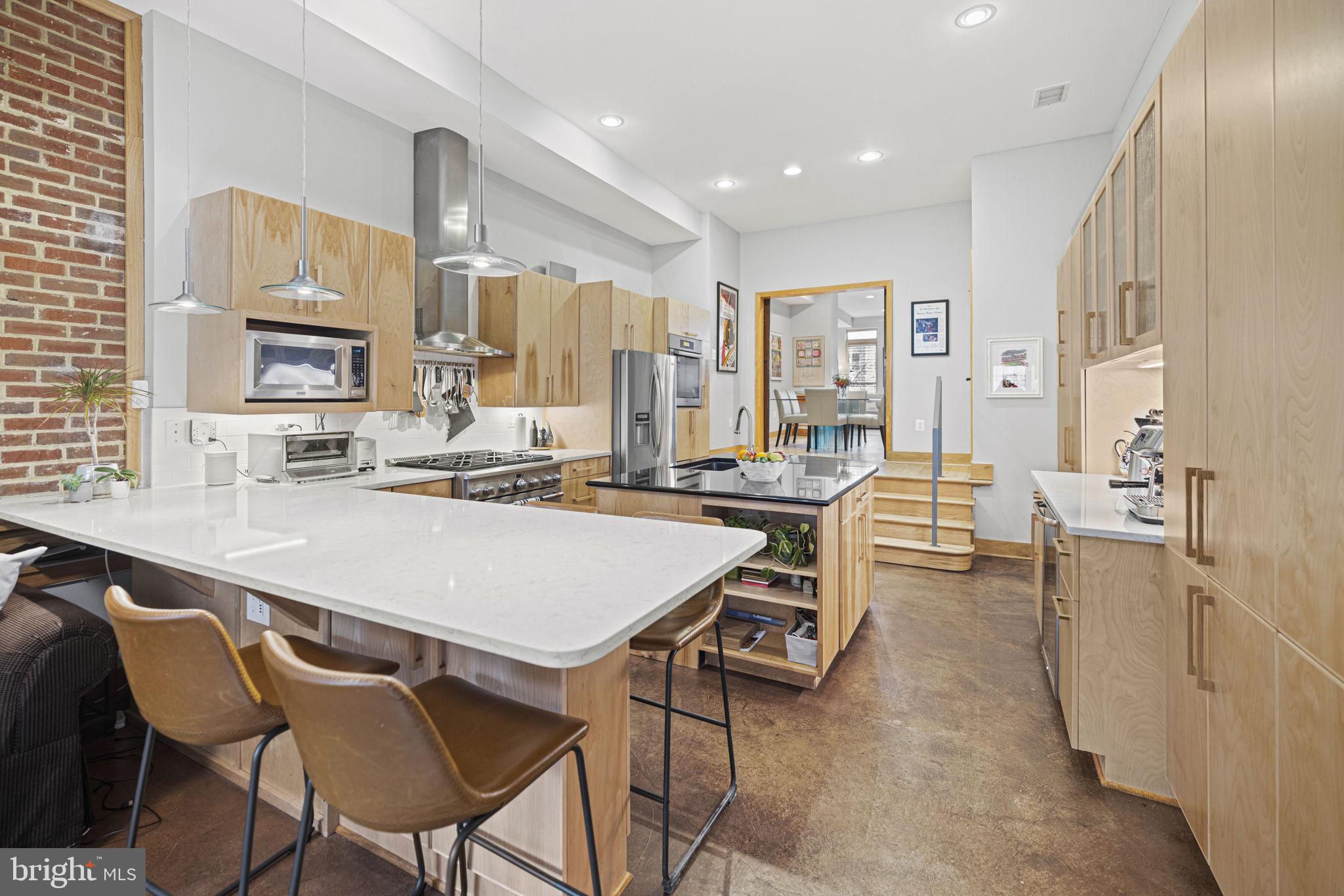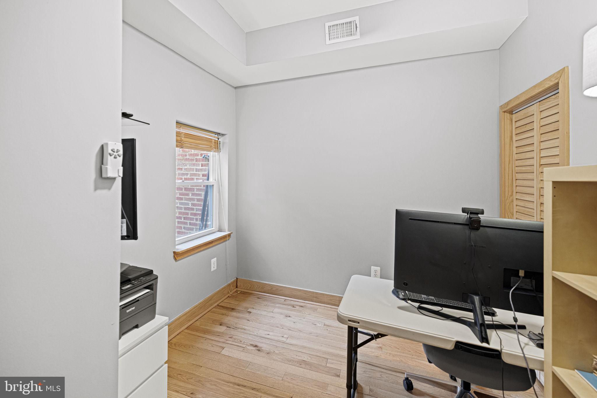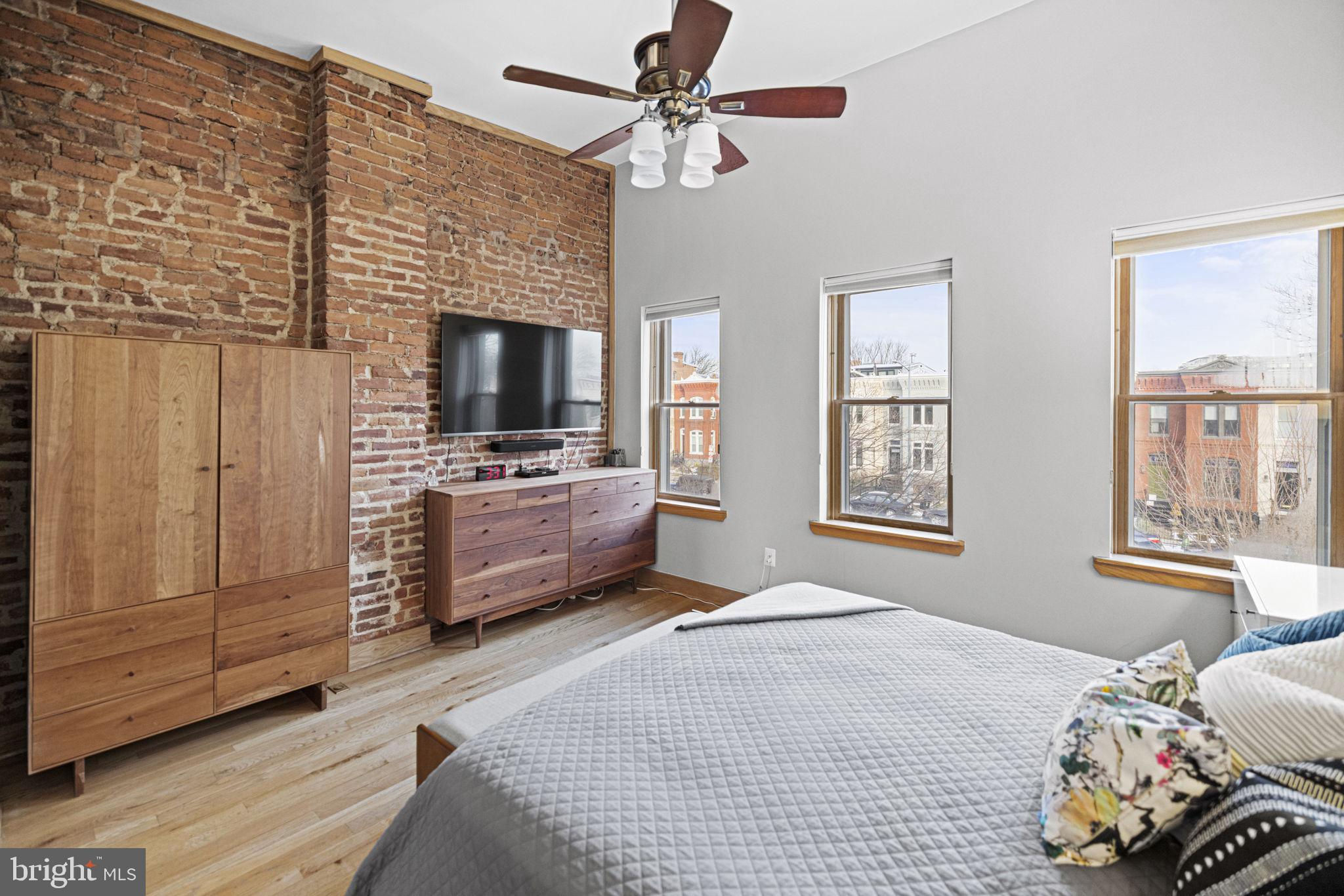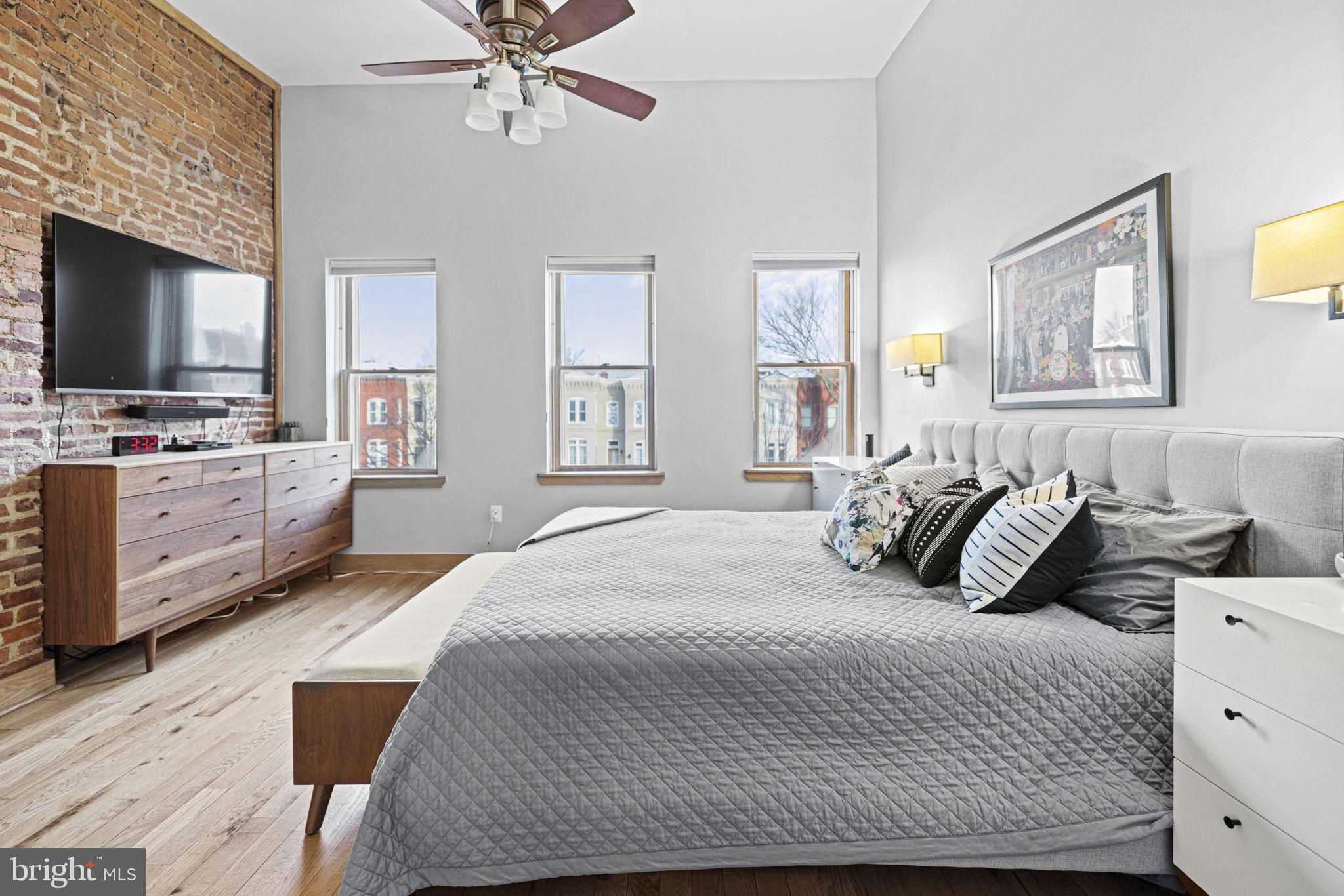 $50,000 price drop on this fabulous 3 BR/2.5 BA rowhouse in U Street Corridor. Originally built in 1895, this Federal-style house was completed gutted in 2008 and renovated as an energy efficient home with wonderful radiant heat throughout the entire house. LOW gas bills. This sunny, wide rowhouse features an open floor plan with hardwood floors, recessed lighting and high ceilings. Be prepared to be wowed by the stunning kitchen with incredible cabinet space and 31 feet of countertop. Stainless steel appliances include a six-burner stove, large French-door refrigerator, microwave, additional built-in oven, and beverage frig. There is seating for four around the counter and an additional space for another table or family room sitting area. The living room has an exposed brick wall and flows into the large dining room. A powder room finishes this level. Upstairs are three bedrooms with hardwood floors. The large primary bedroom has a walk-in closet, double sinks and shower. Three large windows run across the front of the house, while a brick wall adds warmth. The second bedroom can be an office or can accommodate a queen-sized bed. The spacious third bedroom has a bay window and the door to the rooftop deck. A hall bath with a tub completes this floor. An expansive front brick patio is the perfect place to sit and people-watch or entertain. A back deck has space for a grill. There is also off-street parking for one car, a bike rack and storage shed. Finally, the lower level offers loads of storage. It's a short walk to restaurants, shops and Metro. It doesn't get any better than this.