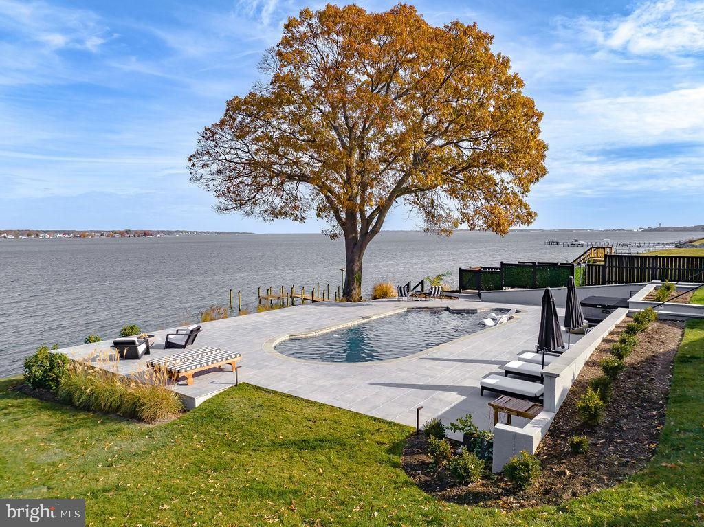 Bella Vista on the Patuxent River – An Elevated Waterfront Retreat Nestled on the banks of the Patuxent River in Esperanza Farms, Bella Vista is a five-bedroom, five-and-a-half-bath waterfront retreat where intentional design meets resort-style living. Every detail has been reimagined—interior renovation in 2023 and exterior transformation in 2024—to create a home that inspires awe, comfort, and connection. Inside, elegant craftsmanship defines each room: four spa-inspired primary suites, including one with a fireplace and coffee bar with sink and beverage refrigerator. The chef’s kitchen features a gas fireplace, high-end appliances, and generous workspace that flows into a welcoming living area with its own gas fireplace. A private gym with sauna and a light-filled all-season sunroom provide relaxation year-round. The main level primary bath was thoughtfully designed with accessibility in mind, featuring a curb-less, zero-threshold shower, designer grab bars, and a spacious layout that blends beauty with universal comfort. Waterfront bedrooms offer automatic remote-control shades, and the custom entertainer’s closet adds everyday luxury. The laundry room includes two washers, two dryers, and a marble dog shower, while the garage adds an additional shower for dogs or beach-day clean-ups. Outdoors, the home transforms into a private resort: a heated saltwater pool and elevated hot tub, two exterior gas firepits, and expansive patios for golden-hour gatherings. A wood-burning fireplace anchors cozy waterfront evenings. The private pier with Jet Ski lift offers direct access for kayaking and canoeing. With its 5-star short-term-rental rating and turnkey design, Bella Vista is more than a home—it’s an experience, ready to be lived from the very first sunset.