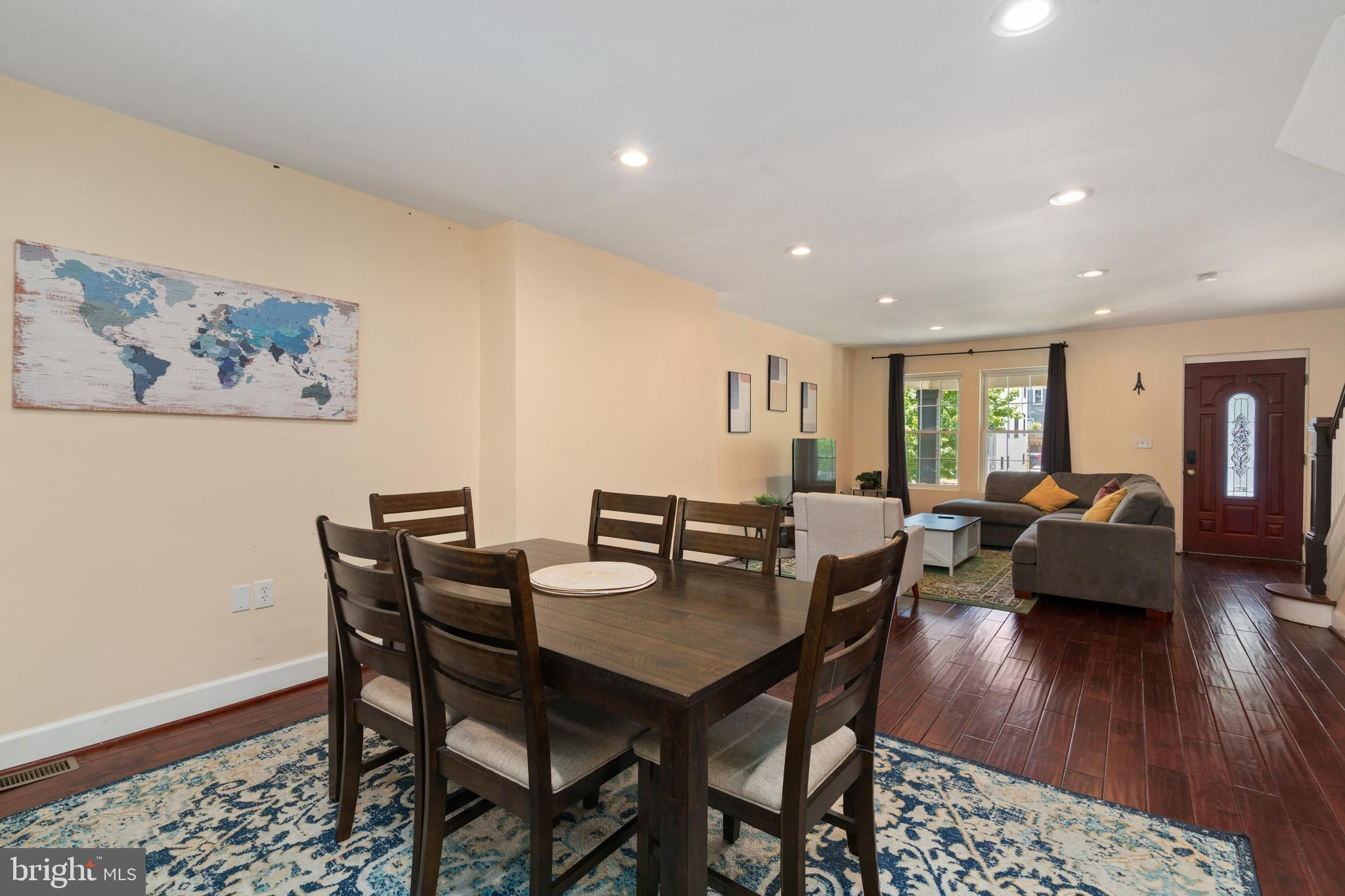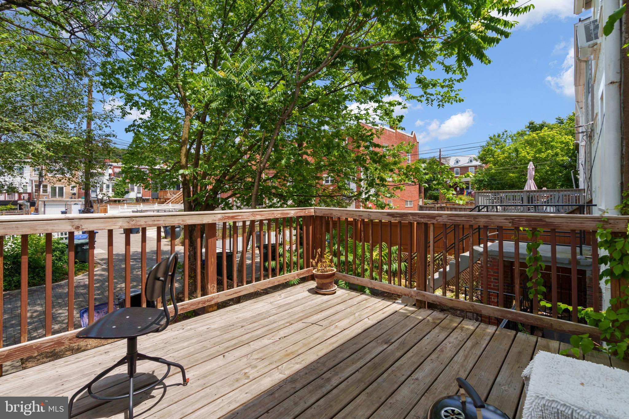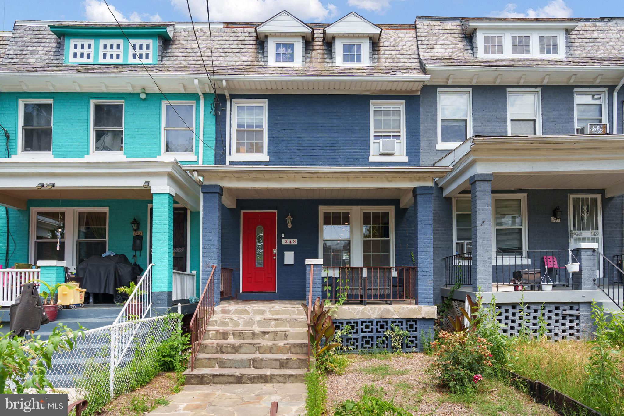 Classic move-in ready row home in Manor Park featuring an In-law Suite and Off Street Parking! The front porch greets you and invites you to sit down and relax. Windows throughout ensure ample natural light. Features include hardwood floors and tons of recessed lighting. The open floor plan on the main level showcases a spacious living room, a separate dining area, and a powder room conveniently tucked away. The large gourmet kitchen boasts plenty of cabinetry, granite countertops, gas cooking, and stainless steel appliances. From the kitchen, step out onto the patio for private dinners al fresco. The sunlit primary bedroom on the upper level has an en-suite bathroom that features dual vanities and a large, spa-like shower. Two additional sizable bedrooms complete the upper level along with another full bathroom and laundry area. The bonus feature is the potential income generating in-law suite on the lower level with a rear entrance that showcases recessed lighting, large recreation area, full kitchen, separated washer and dryer, generously sized bedroom, and a full bathroom. Quick trip to Fort Totten metro. Minutes to Whole Foods. Stroll to local favorites such as Moreland's Tavern, Sunrise Caribbean, Anxo Cidery, HR Records, and Lighthouse Yoga.