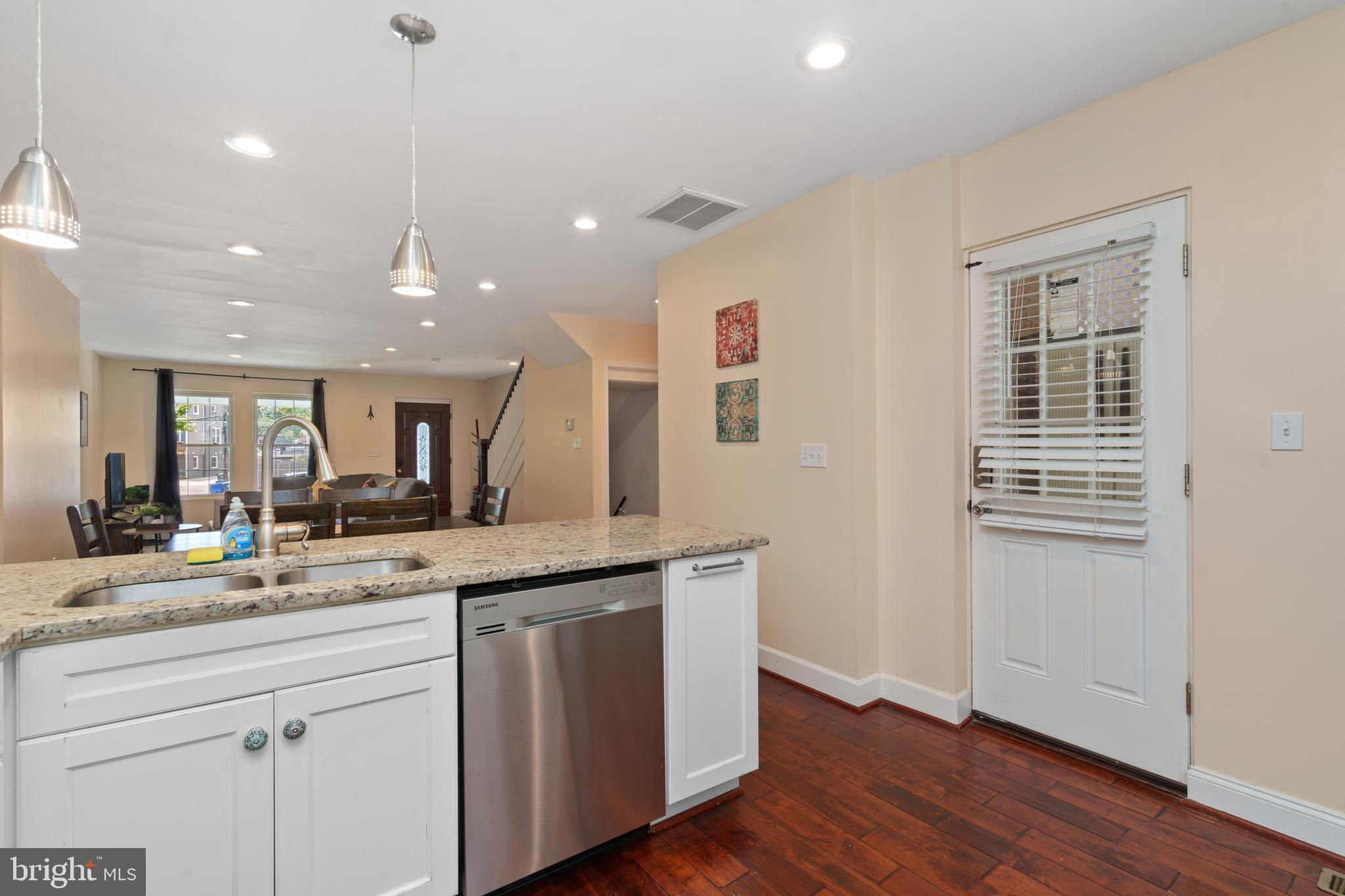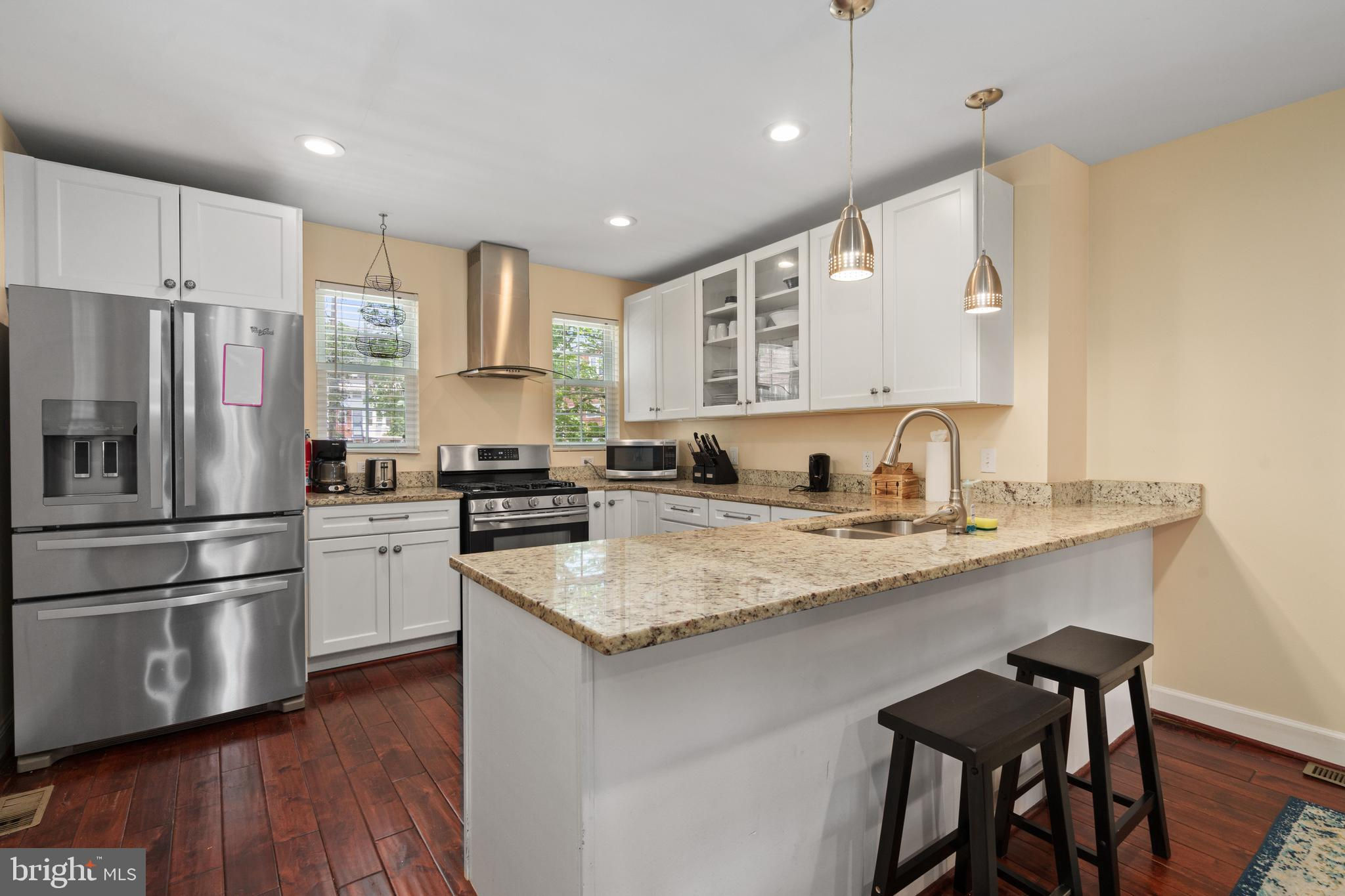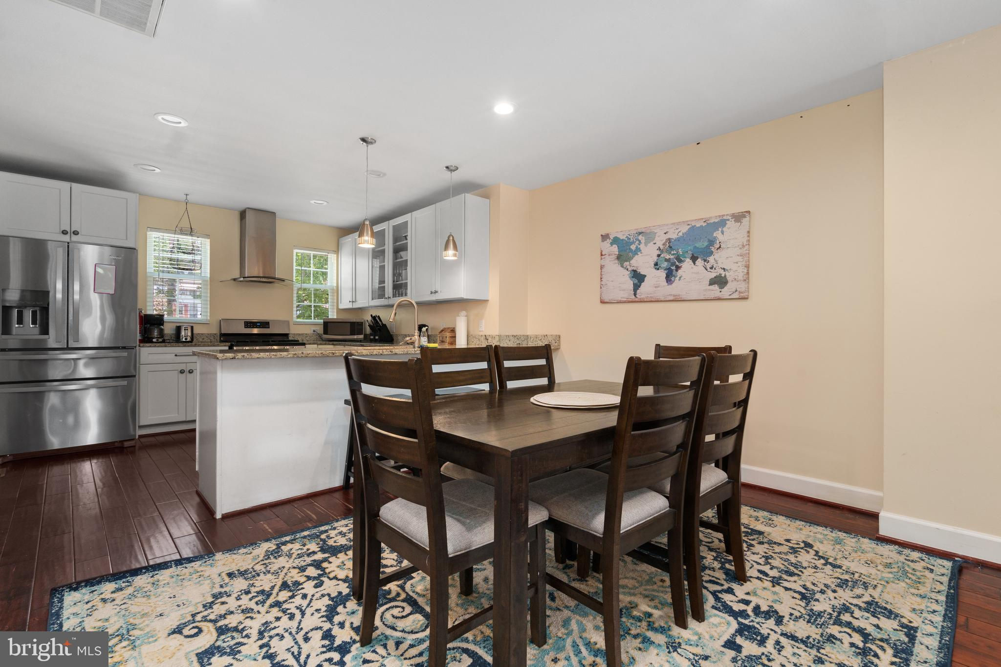 Classic move-in ready row home in Manor Park featuring an In-law Suite and Off Street Parking! The front porch greets you and invites you to sit down and relax. Windows throughout ensure ample natural light. Features include hardwood floors and tons of recessed lighting. The open floor plan on the main level showcases a spacious living room, a separate dining area, and a powder room conveniently tucked away. The large gourmet kitchen boasts plenty of cabinetry, granite countertops, gas cooking, and stainless steel appliances. From the kitchen, step out onto the patio for private dinners al fresco. The sunlit primary bedroom on the upper level has an en-suite bathroom that features dual vanities and a large, spa-like shower. Two additional sizable bedrooms complete the upper level along with another full bathroom and laundry area. The bonus feature is the potential income generating in-law suite on the lower level with a rear entrance that showcases recessed lighting, large recreation area, full kitchen, separated washer and dryer, generously sized bedroom, and a full bathroom. Quick trip to Fort Totten metro. Minutes to Whole Foods. Stroll to local favorites such as Moreland's Tavern, Sunrise Caribbean, Anxo Cidery, HR Records, and Lighthouse Yoga.