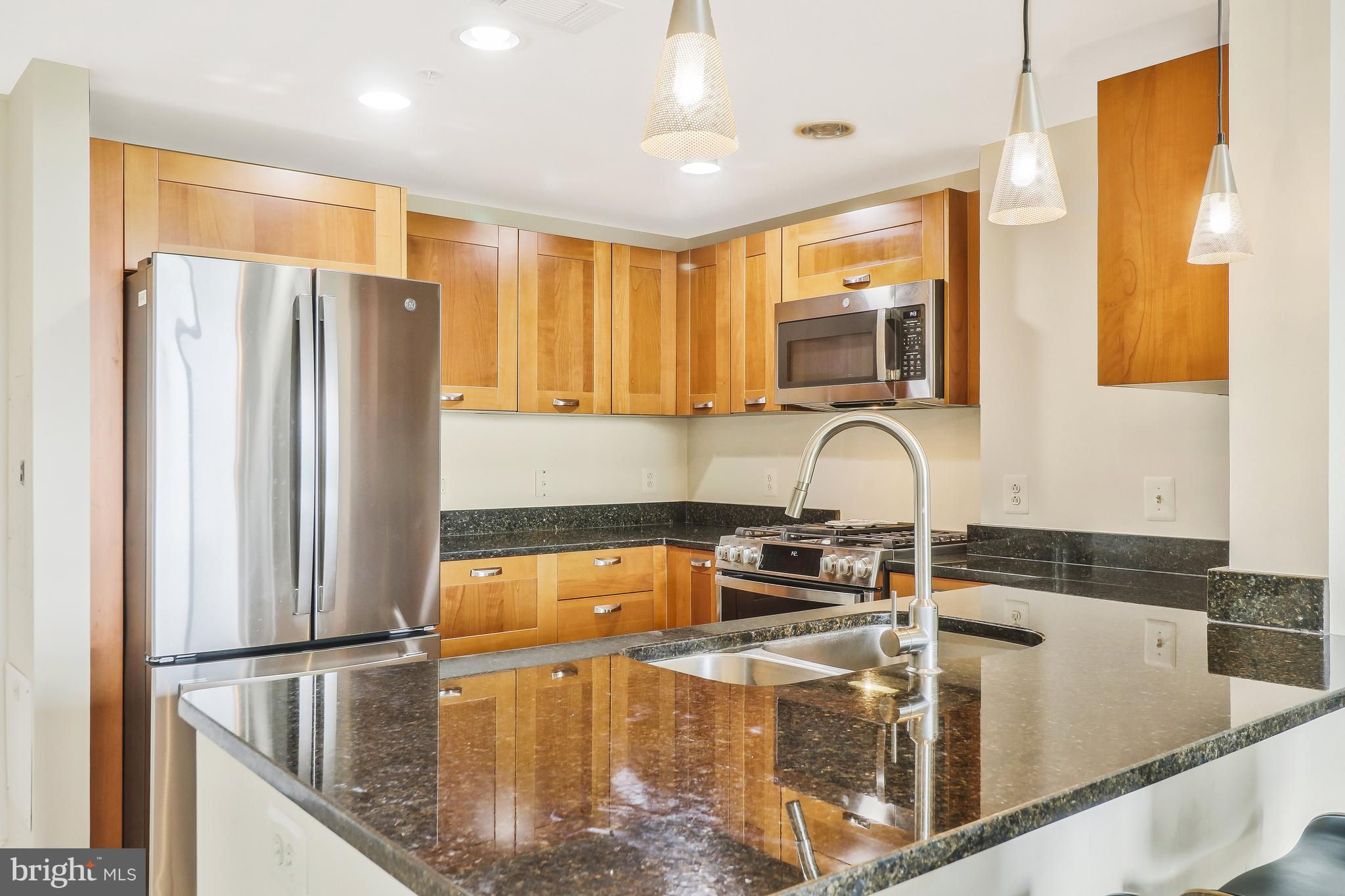 This gorgeous unit offers you a true peace of mind. Move into this condo knowing the air conditioning unit (2022), water tank (2022), and kitchen appliances (2022) were all replaced AND the carpet was replaced with beautiful LVP flooring. All you have to do is unpack! The open kitchen has shaker-style wood cabinets and granite countertops. The spacious bathroom connects directly to the bedroom. Both bedroom closets have custom shelving systems. The in-unit front-loading washer and dryer convey. This unit has one garage parking space located on the 6th floor close to the elevator. The unit is located on the same floor and just steps away from the 24/7 fitness center, the outdoor pool that connects to the grill deck which stays open year-round, and the party room complete with a kitchen and a pool table for resident use. The lobby is staffed with 24-hour concierge and an on-site management office. The building offers a cyber cafe and more. The Huntington Metro station is across the street from the Southern Entrance to the building. You won't find a more convenient location with such awesome amenities. Come see this condo today before it's gone!