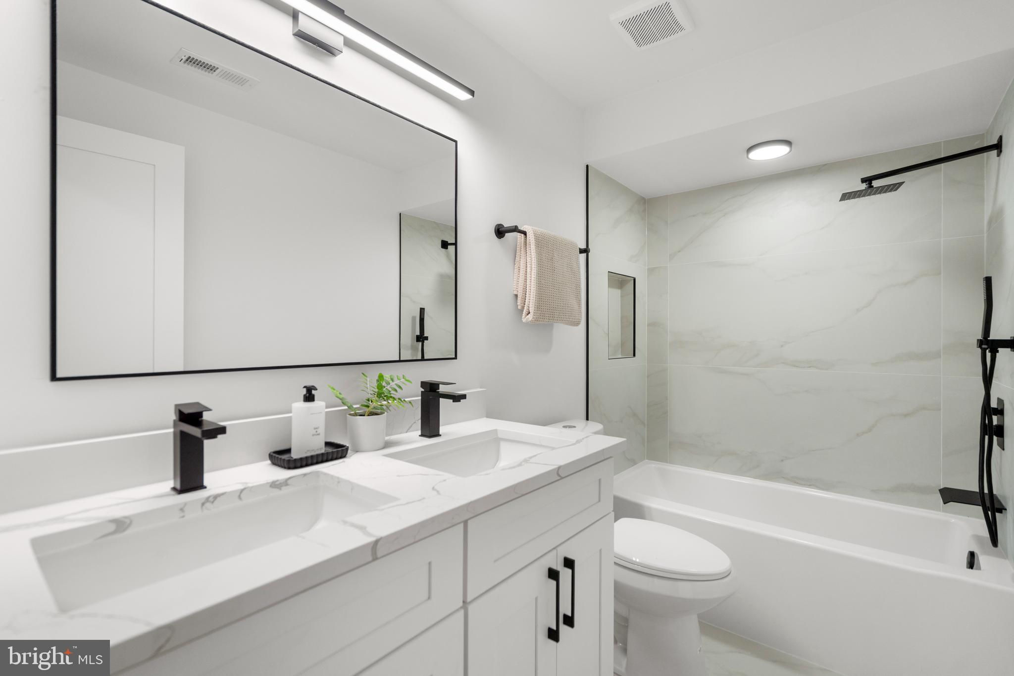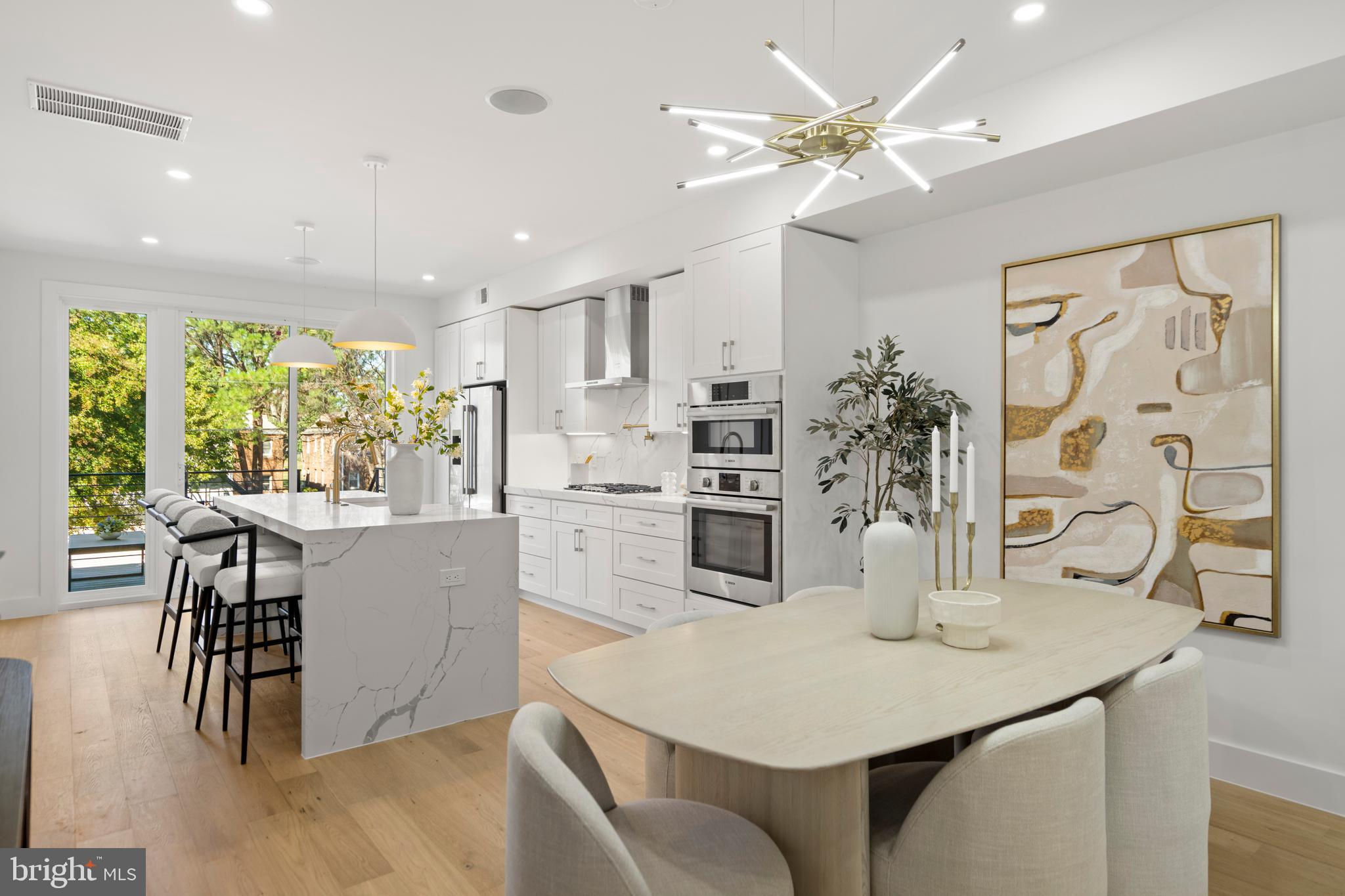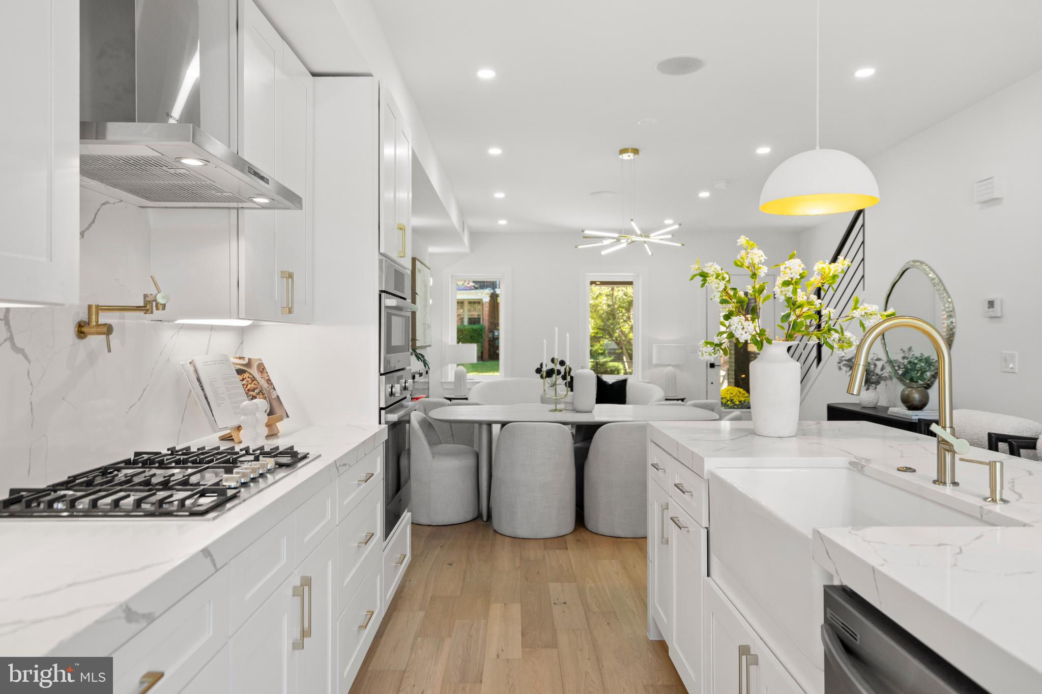 Modern Design, Thoughtful Craftsmanship, and Elevated Living in Petworth. Discover modern living at its finest in this stunning 4-bedroom, 3.5-bath Petworth residence, completely reimagined with refined finishes and thoughtful design. Sunlight fills open living spaces with wide-plank White Oak floors, while the chef’s kitchen impresses with Bosch appliances, a quartz waterfall island, farmhouse sink, and pot filler—perfect for entertaining or relaxing at home. The primary suite offers a peaceful retreat with a coffered LED-lit ceiling, custom wall detailing, and a spa-inspired bath. Three additional bedrooms provide space for guests, family, or a home office. The fully finished lower level, featuring two private entrances, a full bath, and its own washer/dryer, is ideal for a guest suite, in-law quarters, or income-producing rental. Enjoy secured two-car garage parking with EV charging, plus a rear patio and fenced yard for outdoor living. Perfectly positioned near Petworth’s favorite cafés, restaurants, parks, and Metro, 249 Gallatin Street NW combines contemporary design, versatility, and everyday luxury. Schedule your private tour today.