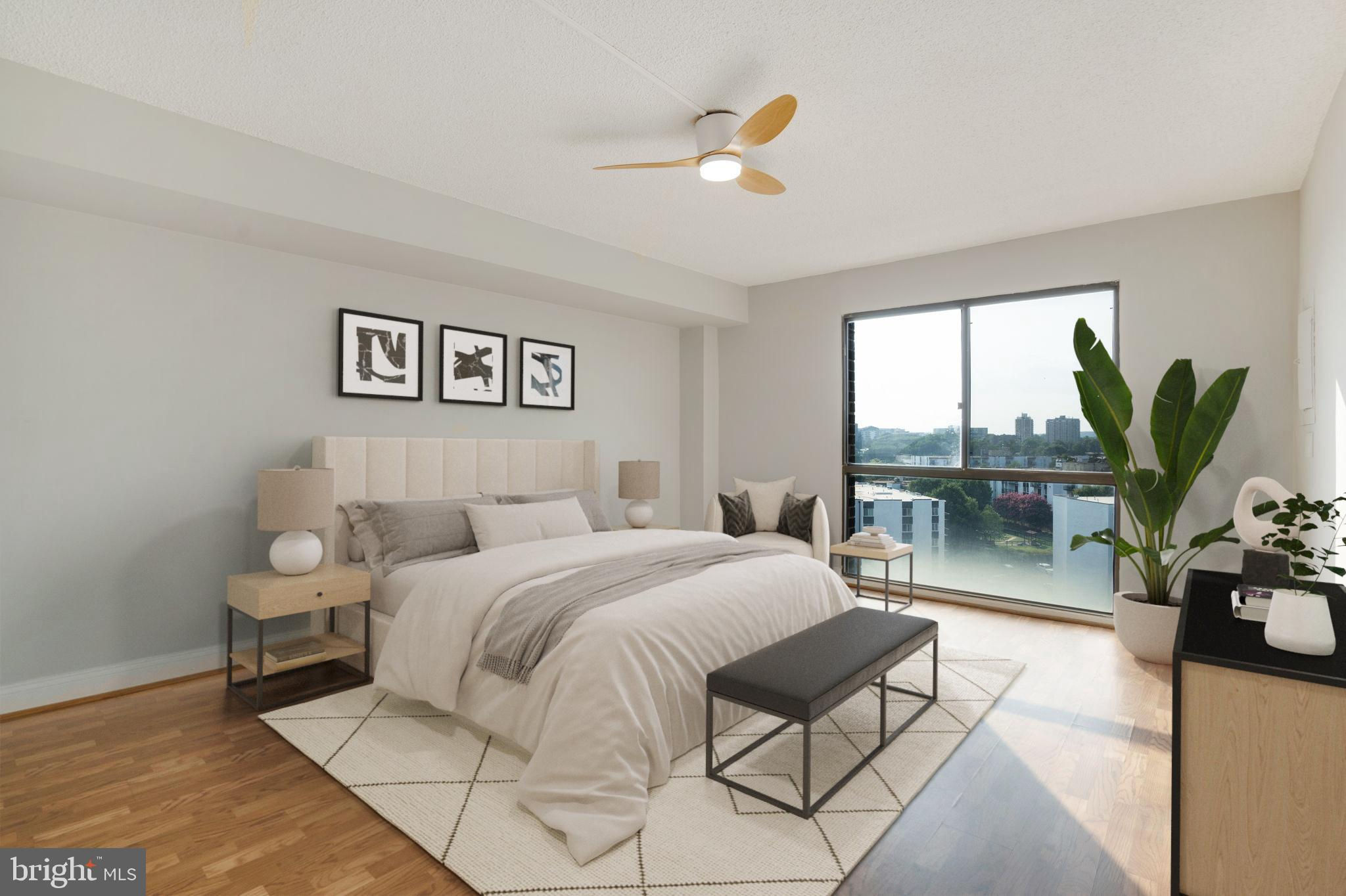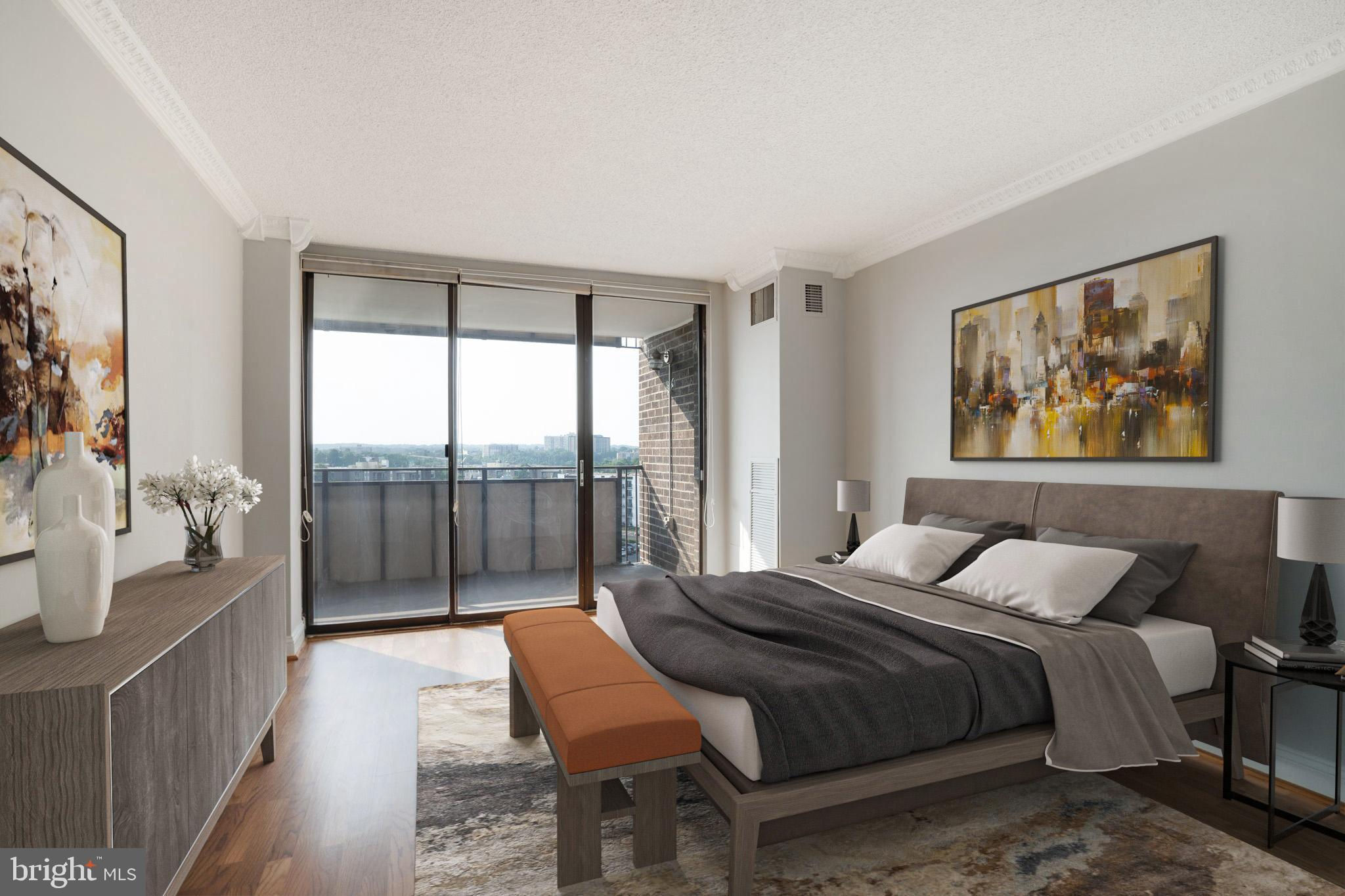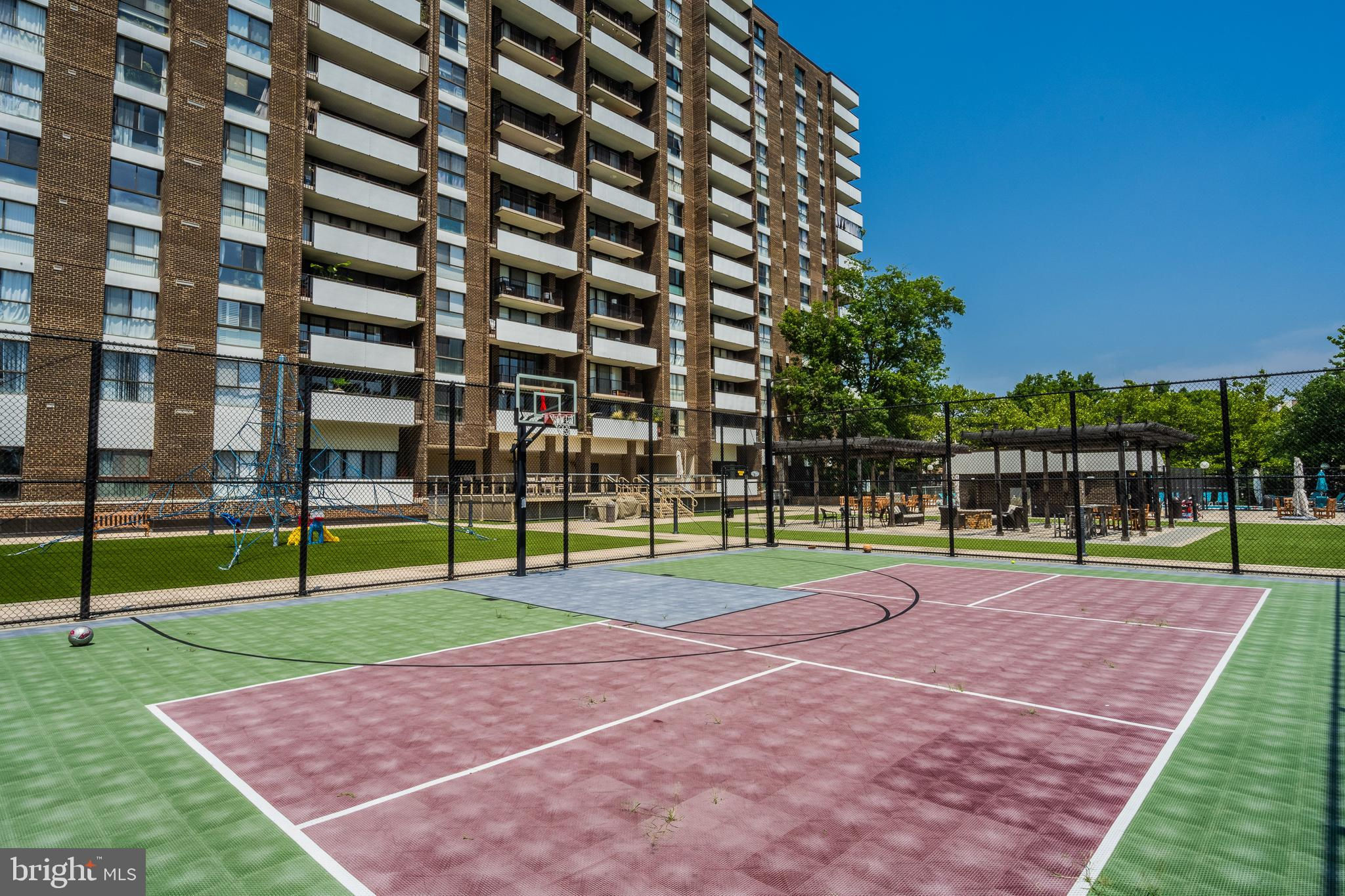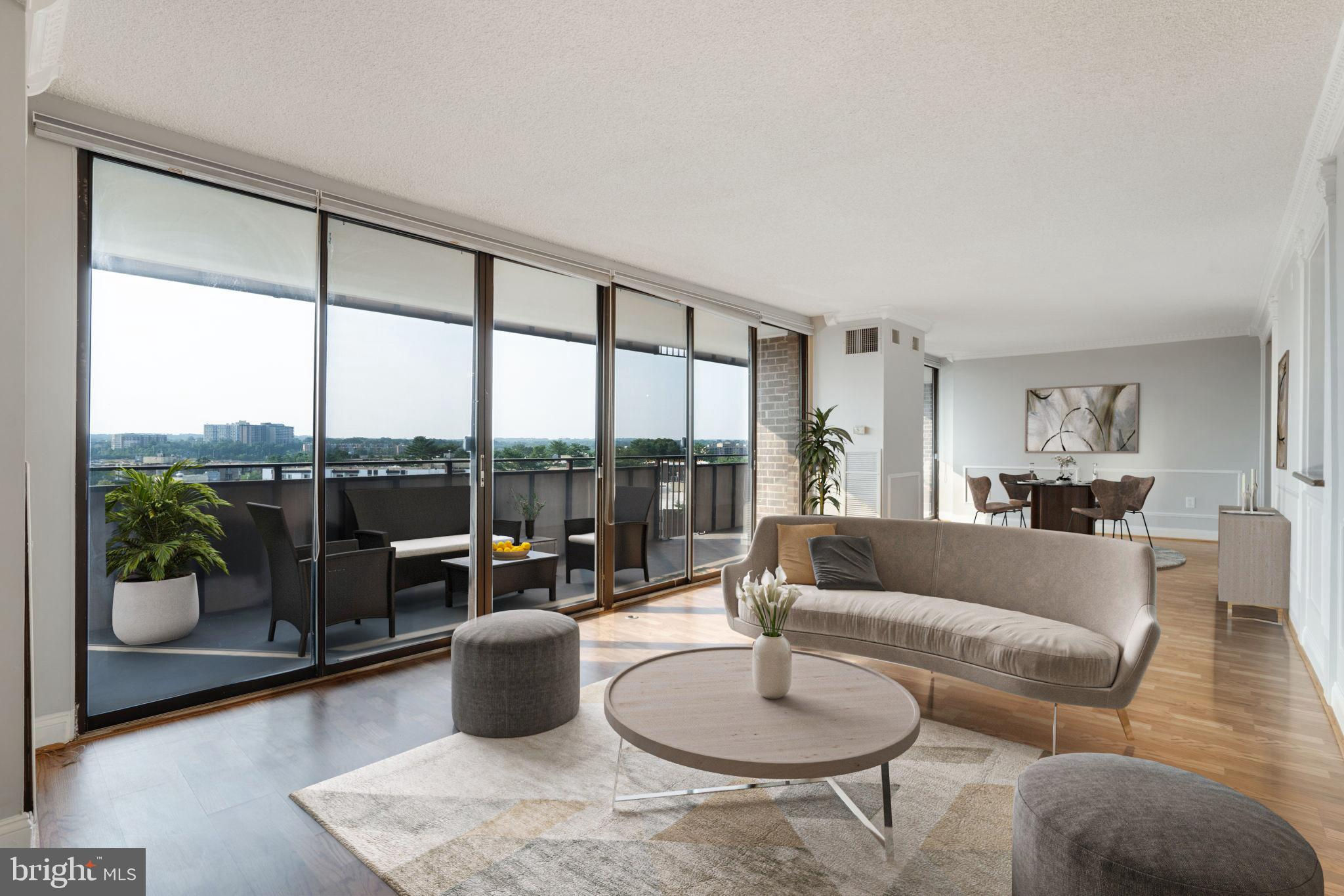 ***Breathtaking panoramic views await you from this oversized (almost 2,220 square feet) 3 bedroom & 2.5 bath, stunning condo with a 43 foot balcony on the 12th floor of the sought after Templeton building in the heart of Alexandria***It is nearly impossible to find a condo of this size with garage parking in a building with elevators, a completely renovated outdoor entertainment space with all the luxury amenities (covered sitting area with fans & contemporary seating areas), handicap lift & stairs to enormous terrace with gas fire pit & 2 gas grills, in-ground swimming pool with bathrooms/showers, basketball courts, tennis & multi-purpose courts , astroturf & play area/climbing area for kids too! Don't miss this incredible opportunity as these units rarely come on the market! Impressive owner's suite with brand new, plush carpeting a private bathroom with recently renovated walk-in shower 2 dual shower heads. white vanity with granite tops, designer mirror & modern lighting with linen closet in the bathroom, walk-in closet & big windows let in lots of natural sunlight! This bathroom has some handicap features too. The entire condo has been freshly painted with the most popular Benjamin Moore paint color. Beautifully renovated EAT-in Kitchen with granite countertops, white cabinets, stainless steel appliances, tile backsplash & contemporary lighting. Washer & Dryer in unit! Enormous Living & Family room area with floor to ceiling windows that show off that panaromic view with the scenic sunsets from a 40 foot balcony with multiple entrances & idyllic outdoor lighting....what a fun space to entertain & impress your guests! Formal dining room with elegant chandelier & there are upgraded, custom moldings & doors with glass inlay throughout. The 2nd bedroom has it's own entrance to the wrap around balcony & has double door entry, can be used as a comfortable, home office as well. The 3rd bedroom with walk-in closet, ceiling fan, huge window & private, remodeled full bath are located on the other side of the condo which offers a private wing for your guests or other members of your household. Beautifully remodeled half with a pedestal sink, contemporary lighting, Italian ceramic tile flooring & designer fixtures! Lots of extra closets for added storage space & a big storage space in the basement of the building. Excellent location: great for commuting, bus stop out front, short drive to Van Dorn Street Metro, minutes to I-95 & a short drive to Arlington or Washington DC, Reagan International airport & historic Old Town Alexandria. Beautiful parks & trails close by as well if you are looking to walk/run/bike through Holmes Run trail through Brenman Park & so much more to enjoy!