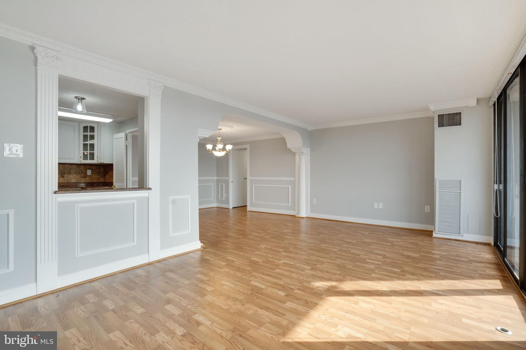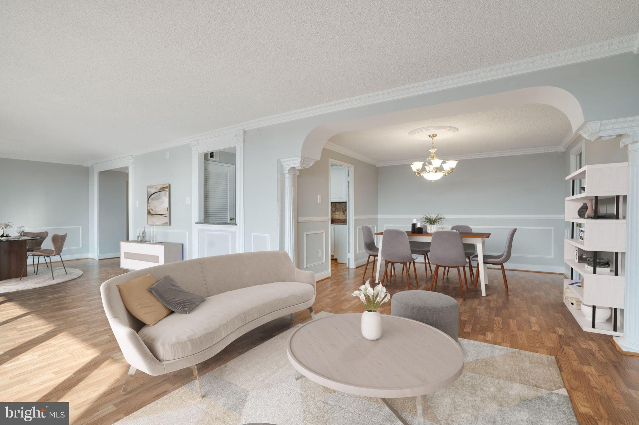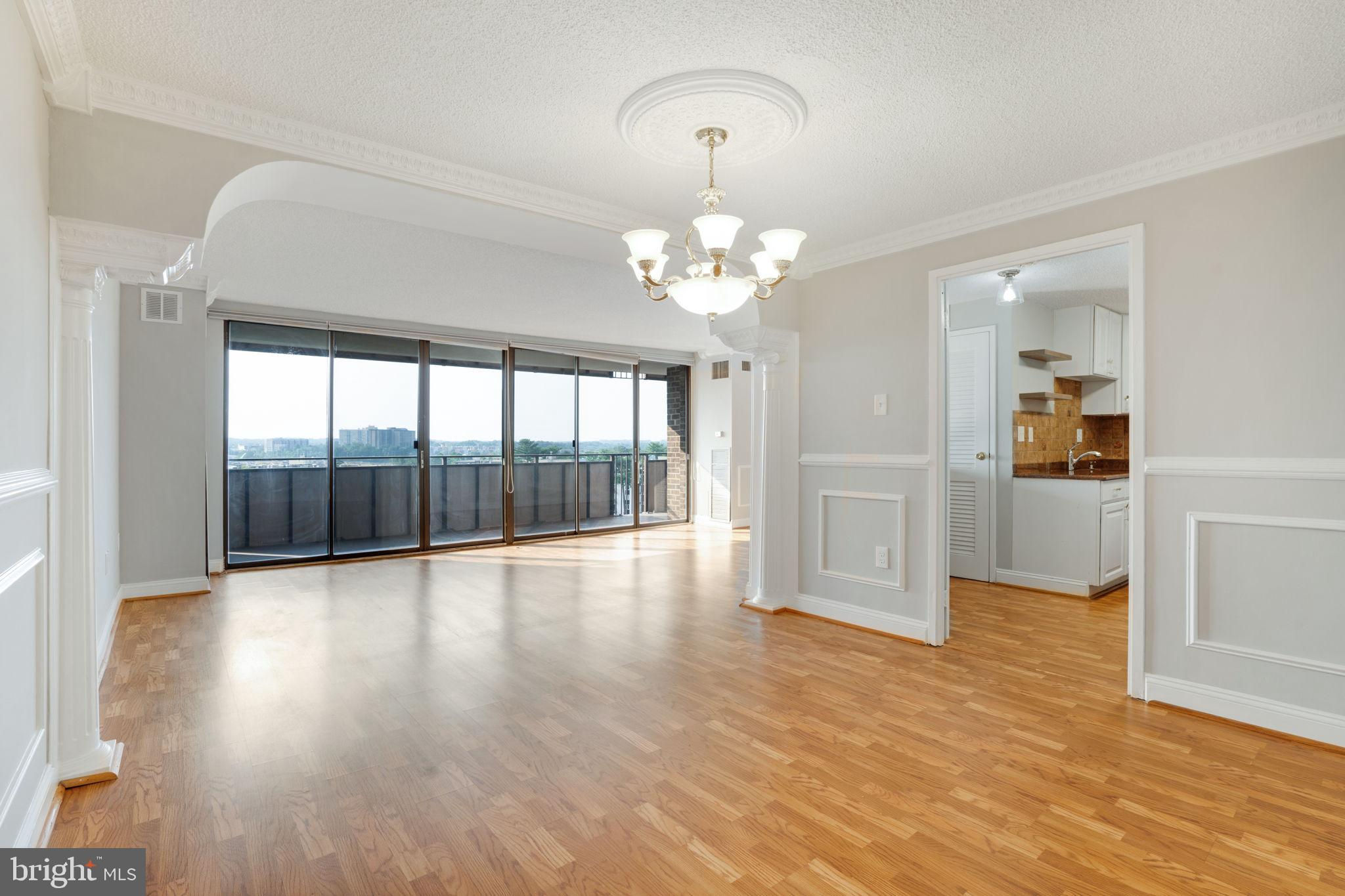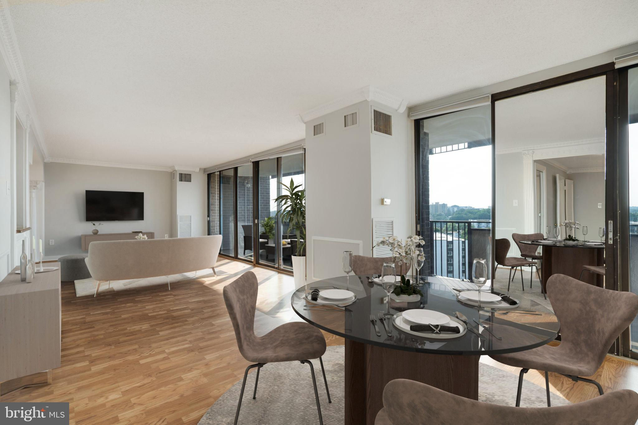 ***Breathtaking panoramic views await you from this oversized (almost 2,220 square feet) 3 bedroom & 2.5 bath, stunning condo with a 43 foot balcony on the 12th floor of the sought after Templeton building in the heart of Alexandria***It is nearly impossible to find a condo of this size with garage parking in a building with elevators, a completely renovated outdoor entertainment space with all the luxury amenities (covered sitting area with fans & contemporary seating areas), handicap lift & stairs to enormous terrace with gas fire pit & 2 gas grills, in-ground swimming pool with bathrooms/showers, basketball courts, tennis & multi-purpose courts , astroturf & play area/climbing area for kids too! Don't miss this incredible opportunity as these units rarely come on the market! Impressive owner's suite with brand new, plush carpeting a private bathroom with recently renovated walk-in shower 2 dual shower heads. white vanity with granite tops, designer mirror & modern lighting with linen closet in the bathroom, walk-in closet & big windows let in lots of natural sunlight! This bathroom has some handicap features too. The entire condo has been freshly painted with the most popular Benjamin Moore paint color. Beautifully renovated EAT-in Kitchen with granite countertops, white cabinets, stainless steel appliances, tile backsplash & contemporary lighting. Washer & Dryer in unit! Enormous Living & Family room area with floor to ceiling windows that show off that panaromic view with the scenic sunsets from a 40 foot balcony with multiple entrances & idyllic outdoor lighting....what a fun space to entertain & impress your guests! Formal dining room with elegant chandelier & there are upgraded, custom moldings & doors with glass inlay throughout. The 2nd bedroom has it's own entrance to the wrap around balcony & has double door entry, can be used as a comfortable, home office as well. The 3rd bedroom with walk-in closet, ceiling fan, huge window & private, remodeled full bath are located on the other side of the condo which offers a private wing for your guests or other members of your household. Beautifully remodeled half with a pedestal sink, contemporary lighting, Italian ceramic tile flooring & designer fixtures! Lots of extra closets for added storage space & a big storage space in the basement of the building. Excellent location: great for commuting, bus stop out front, short drive to Van Dorn Street Metro, minutes to I-95 & a short drive to Arlington or Washington DC, Reagan International airport & historic Old Town Alexandria. Beautiful parks & trails close by as well if you are looking to walk/run/bike through Holmes Run trail through Brenman Park & so much more to enjoy!