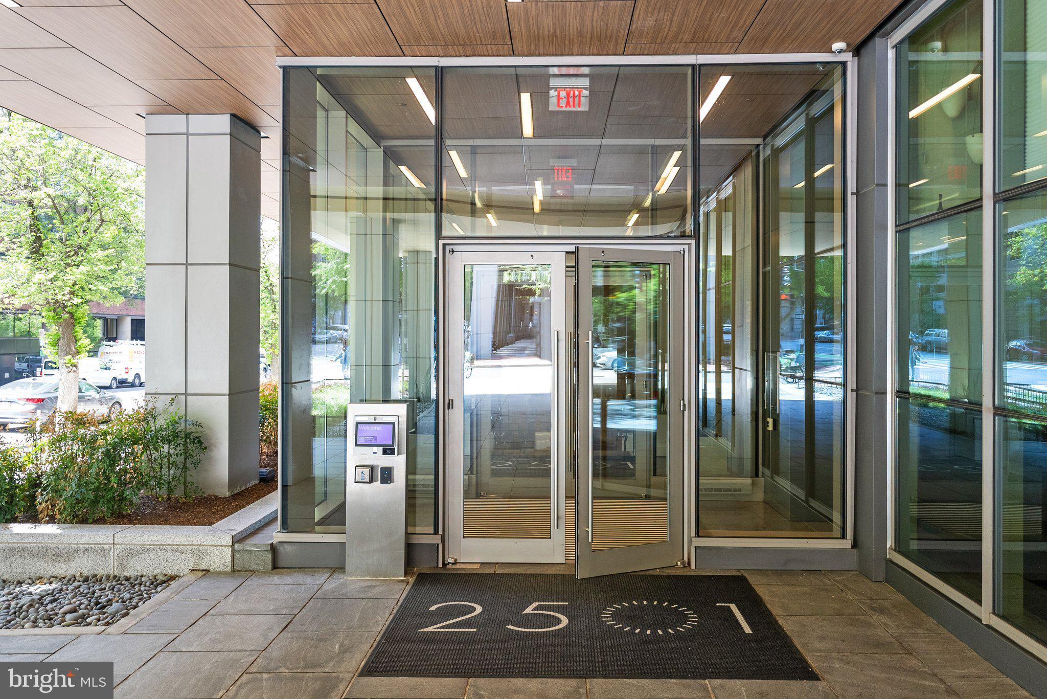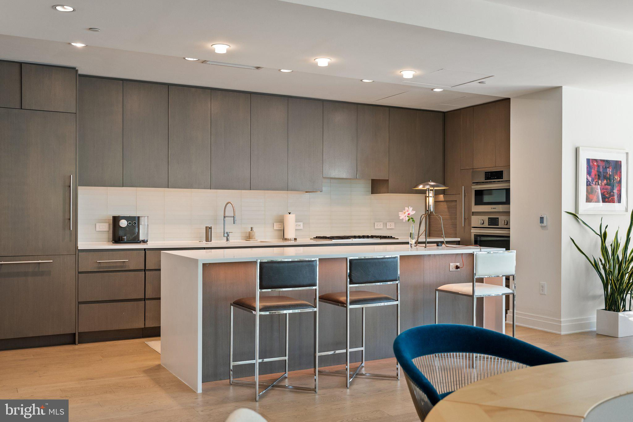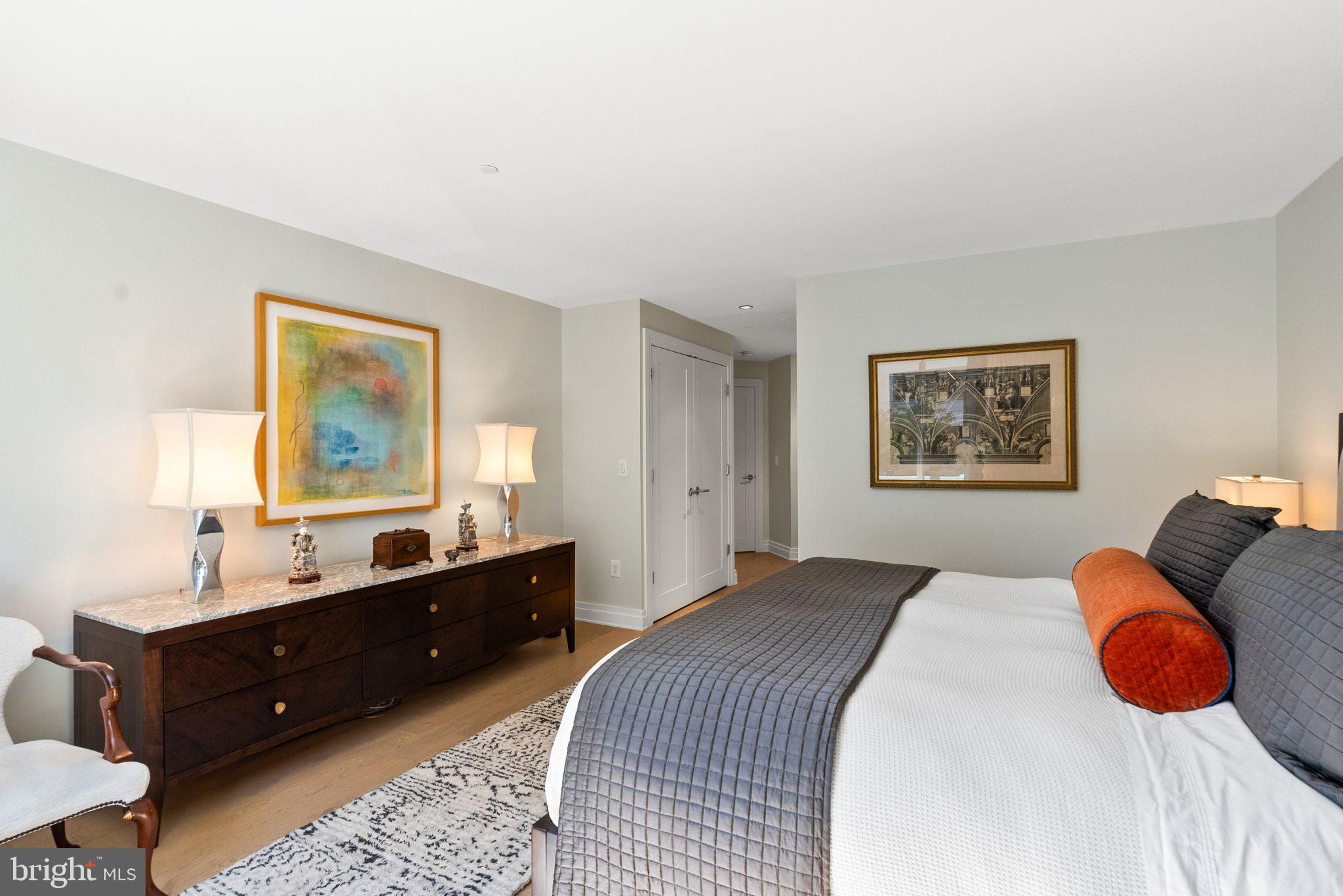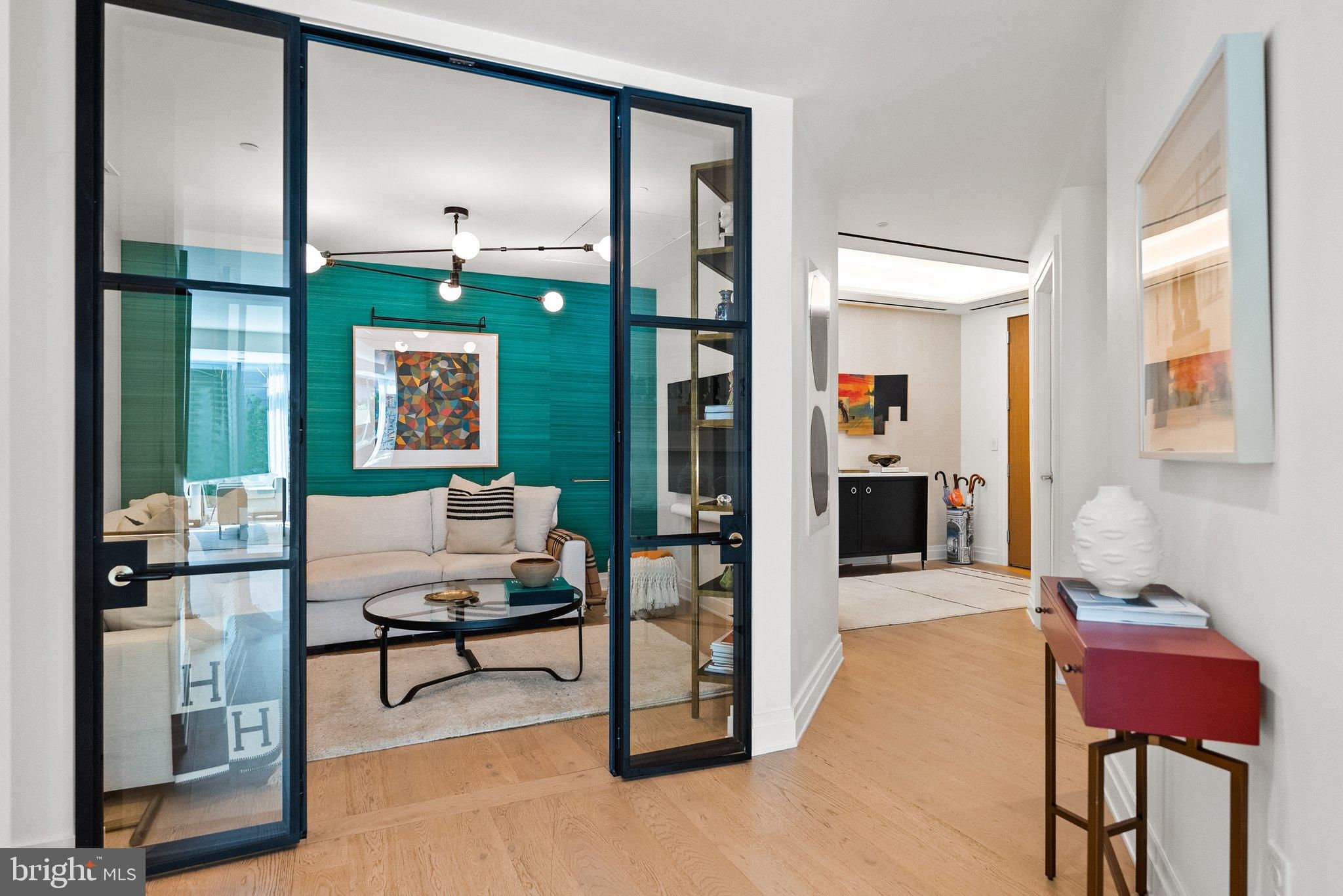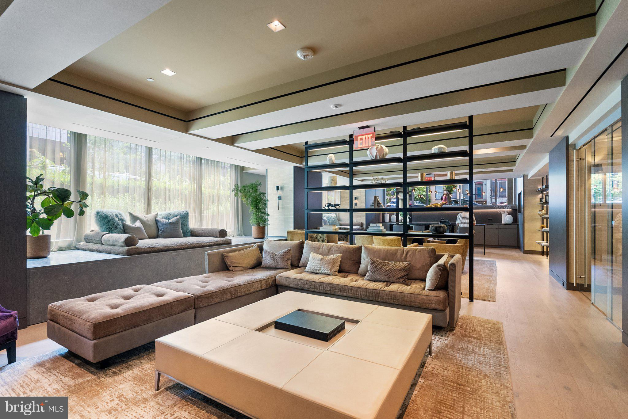 One-of-kind unit, with TWO BEDROOMS + DEN, this is one of the city’s most desirable and discerning addresses for fine urban living. Unit 203 profiled in Southern Living Magazine is rare offering: an airy, expansive 2,200+ square foot residence where form meets function in a harmonious blend of clean modernism and timeless materials. The home delivers a masterful level of design intention, featuring bespoke upgrades that speak to both architectural sophistication and everyday comfort. As you enter, you're greeted into a gracious foyer and then you step into the breathtaking, light-filled interior. Floor-to-ceiling windows along multiple exposures floods the open-concept living spaces with natural light, offering uninterrupted views of mature foliage and an elegant transition to the private balcony — a serene perch, the ideal place to enjoy morning coffee. The spatial layout is fluid and intuitive featuring wide plank white oak flooring and bespoke lighting -- anchored by a gourmet kitchen that serves as both a culinary workspace and a visual focal point. Outfitted with sleek cabinetry including a custom-crafted pantry, premium stainless steel appliances (Bosch and Thermador), natural countertops and a waterfall island with seating for three or more, the kitchen is open to the living and dining zones, each defined by expansive sight lines. The foyer area rounds out with a walk-in coat closet and a chic and whimsical wallpapered powder room for guests. The spacious primary suite is a serene, private retreat conceived for ease and indulgence -- easily accommodating a king sized bed and multiple furniture layouts. The expansive window features custom tailored black-out draperies. The white and crisp ensuite bath delivers a double vanity, finely crafted porcelain tile work, an oversized shower with European fittings, and a secluded water closet. Down the hall, the light-filled second bedroom adapts easily to varying needs, whether as a guest room, library or studio. The en suite full bath, thoughtfully designed with a tub/shower configuration, delivers comfort for both residents and guests. Down the hall is the custom-designed den -- a jewel box featuring an artisan glass partition and door and a signature chandelier -- an ideal space for cozy movie nights in. This singular residence is further enhanced by two dedicated parking spaces and in-unit, full-sized laundry with energy efficient front loading machines. Residents benefit from an extensive suite of outstanding building amenities including The Cove a stylish community room with a wet bar and meeting rooms, a state of the art fitness center with access to a trainer, yoga studio, 24-7 desk attendant, concierge services, and a beautifully landscaped rooftop terrace offering panoramic views across the city skyline. Located just steps from the vibrant heart of the city — with Georgetown, Rock Creek Park, Michelin-starred dining, boutique shopping, and Metro access all within walking distance — 2501 M is not simply a residence, but a refined living destination in one of Washington’s most coveted boutique condo buildings. Welcome Home!