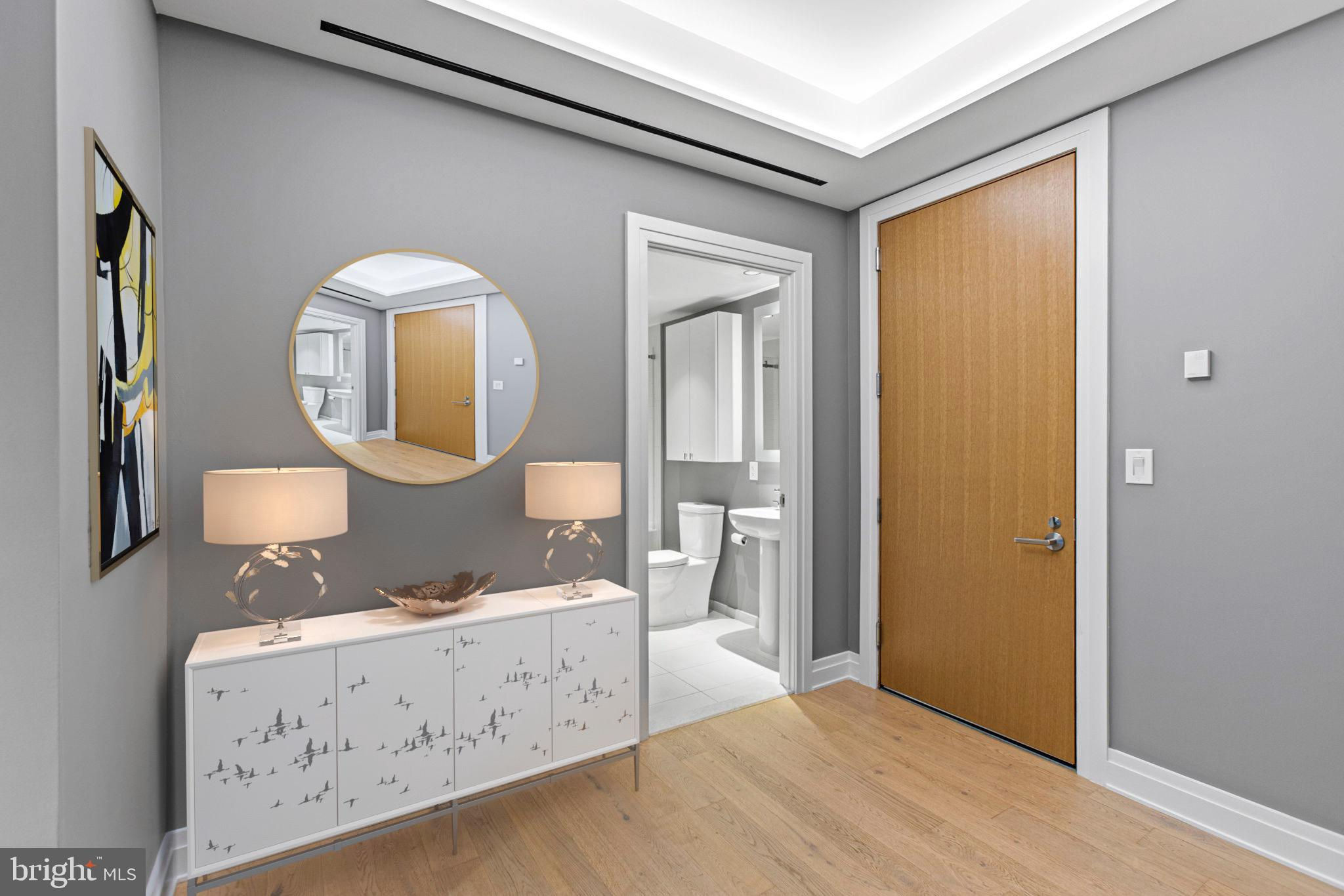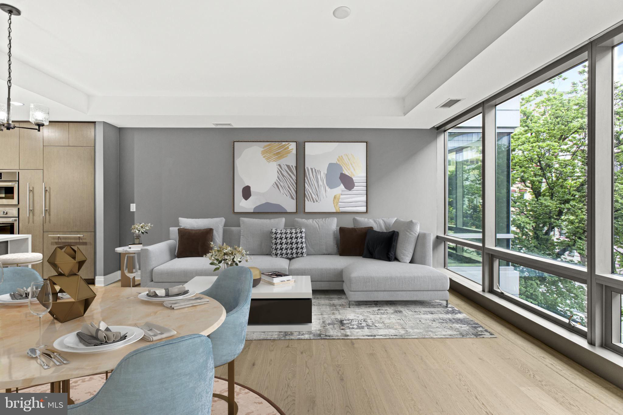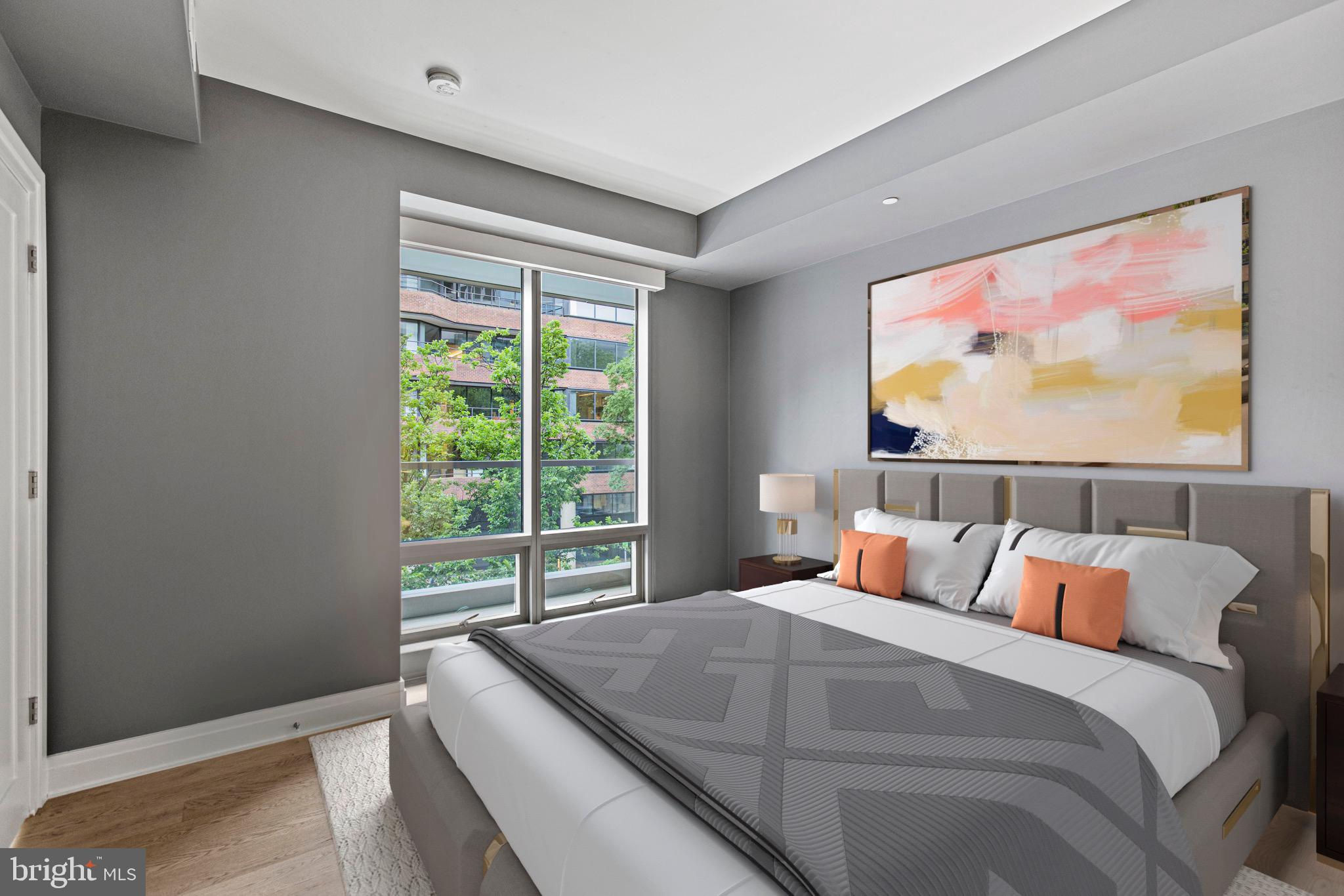 Impeccably cared for 2 bedroom, 2 full bathroom sophisticated condo located in premiere West End location – steps to Georgetown and all of West End’s conveniences! The unit comes with a dedicated garage parking space and a secure private storage unit. This light-filled home features floor to ceiling windows with thoughtful upgrades including remote control electric shades on all windows, a steam shower system in the primary bathroom and a custom built-in work from home office area. The chic kitchen includes beautiful cabinetry with paneled Bosch+Thermador appliances, gas cooktop and sleek quartz countertops. The kitchen island offers counter seating with an open flow to the living area, perfect for entertaining! The primary bedroom includes a gracious walk-in closet, a sizeable second closet plus double vanities in the primary bathroom. White oak hardwood flooring throughout the entire unit, central heating/cooling operable via nest thermostat, plentiful storage, recessed lighting, plus a private balcony with city views. The building amenities include 24 hr. concierge service and front door monitoring, a state-of-the art fitness center, roof top seating, stylish community lounge, on-site property management and gorgeous common space design. Dedicated parking and a dedicated storage unit convey with the unit. Pet-friendly building! Next door to Nobu restaurant and a three-minute walk to Trader Joe’s!