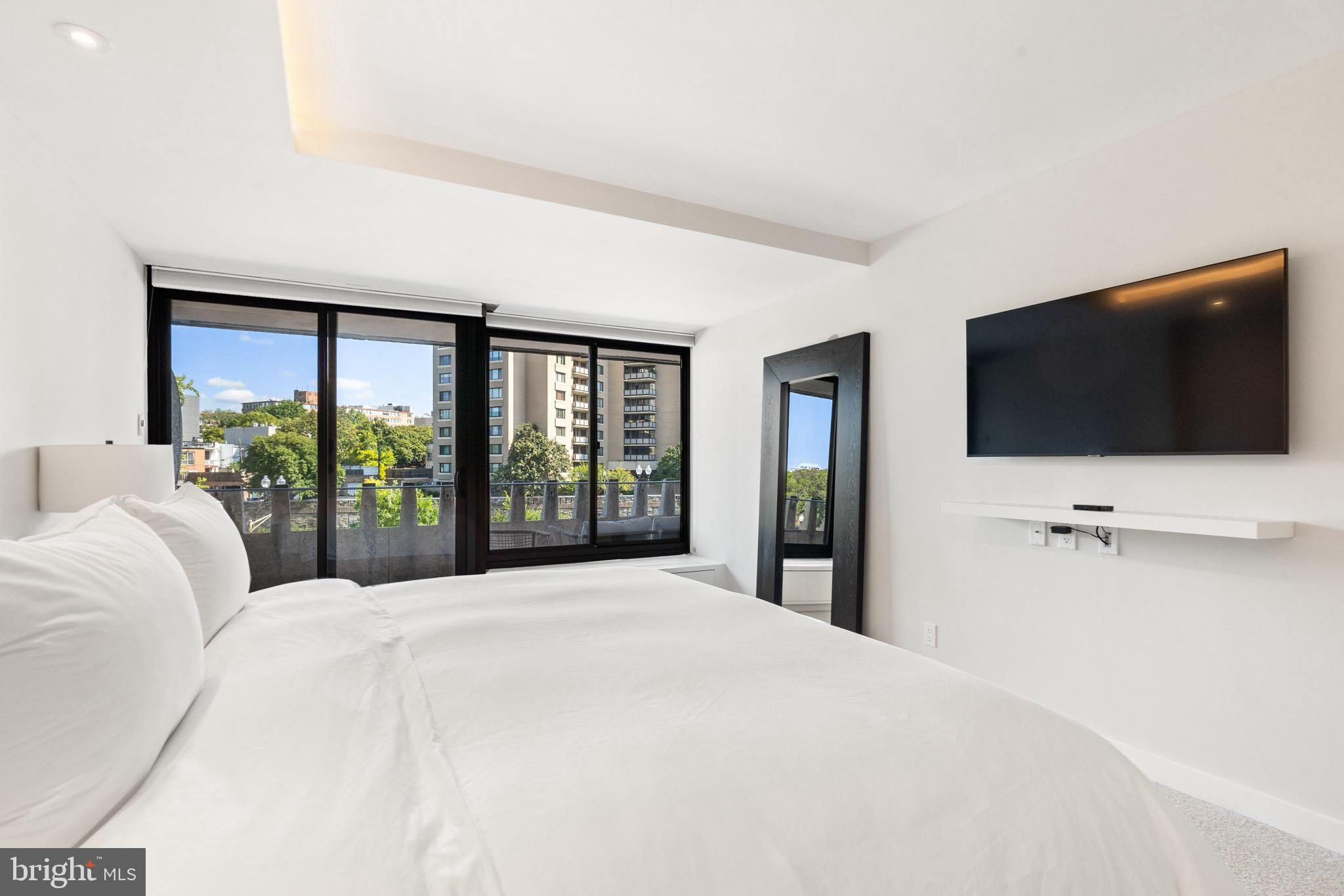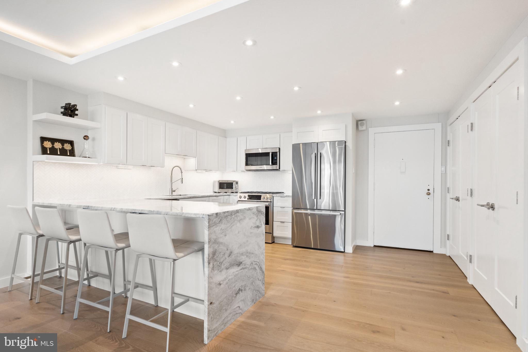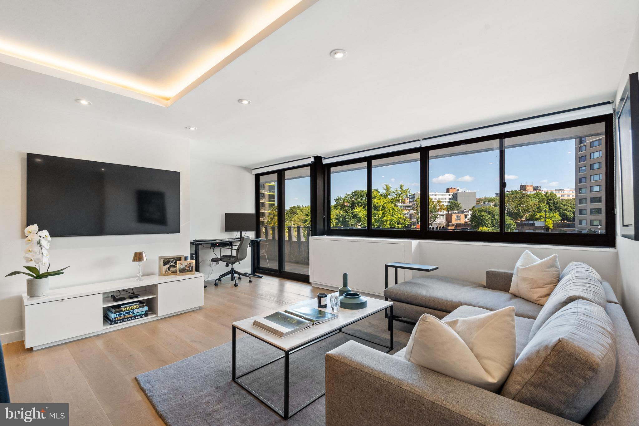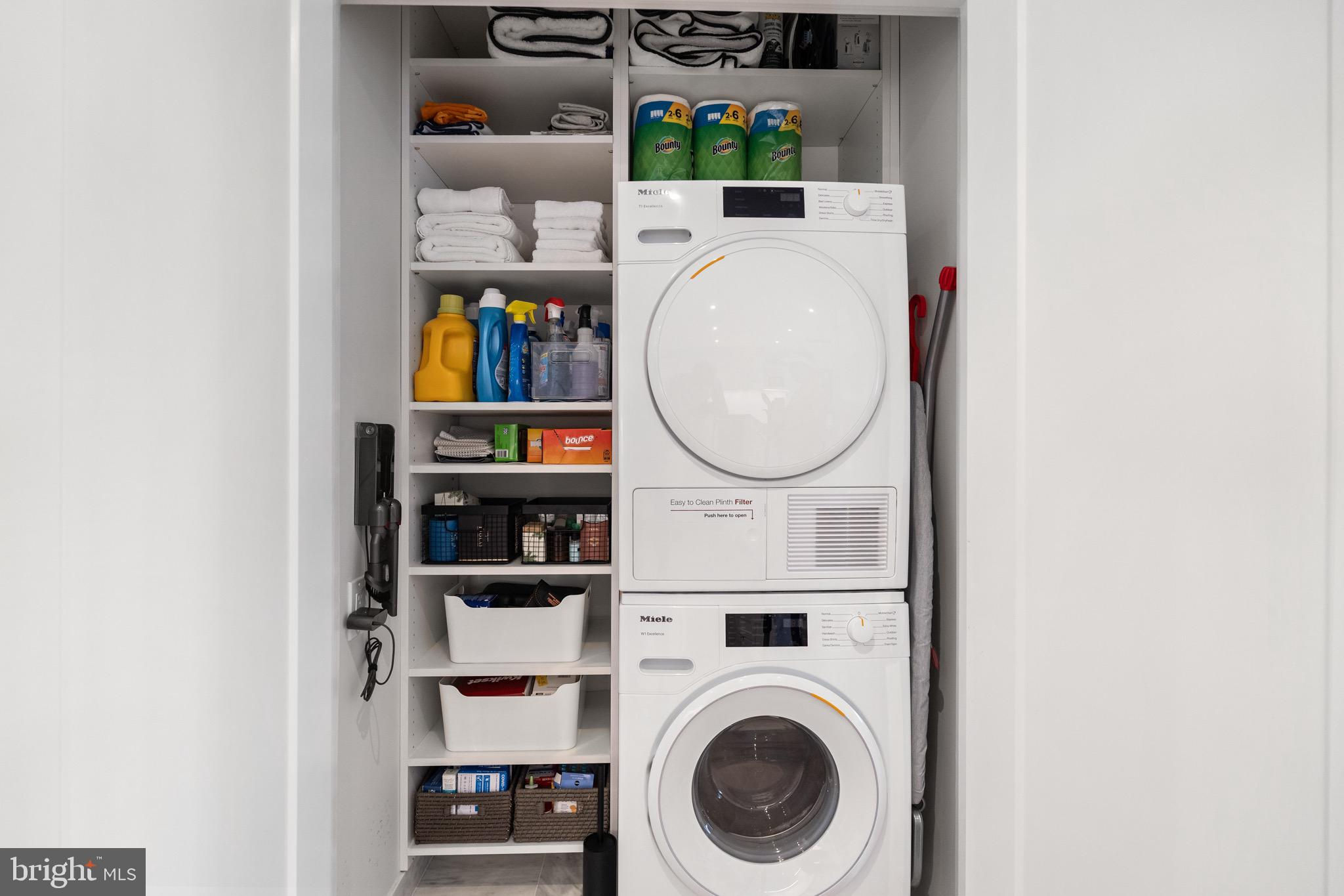 Model condition 2 bedroom, 1255 sq ft. Fantastic upgrades and custom features including new double pane windows, hardwood English herringbone floors in living areas. Solid wood doors with brushed stainless steel hardware. Recessed dimmable LED lighting. Custom shades/blinds from The Shade Store. Entry: The apartment includes a coat closet and a laundry closet, which houses a stacked Miele washer and vent-less dryer. The laundry area also offers additional storage space. Chef's kitchen: Equipped with high-end Bosch appliances, microwave, french door refrigerator and drawer freezer, dual fuel gas range and stove with warmer drawer, and dishwasher. Features a white marble herringbone-style backsplash, a luxurious Mont Blanc marble countertop, and an under-cabinet LED light strip with hidden power outlets. The cabinets are Green Forest in a white matte finish, complemented by Top Knobs brushed satin nickel pulls. Stainless steel 30-inch wide sink paired with a Kraus Oletto Single-Handle Commercial Kitchen Faucet in a stainless steel finish. Dining/Living Room: A soffit frames the area and includes an integrated dimmable LED light strip for subtle ambient lighting. The designated TV location includes power outlets, a co-axial connection, and a hidden space between the walls for connecting HDMI cables, keeping cords out of sight A centralized area for light switches and AC control/ thermostat . Guest Bedrooms: A soffit integrated with a dimmable LED light strip for subtle ambient lighting. Custom closet from Closet Stretchers offering ample storage. The floor is carpeted, adding comfort and warmth. The designated TV location includes power outlets, a co-axial connection, and a hidden space between the walls for connecting HDMI cables, keeping cords out of sight between the TV and shelf/ cabinet. A centralized area for light switches and AC control/ thermostat ensures convenient access to essential room functions. Guest Bathroom: Ocean White polished marble tiles on walls and floors. Green Forest cabinets in a white matte finish, complemented by Top Knobs brushed satin nickel pulls. Calacatta Granite countertop. Mirror with built-in surround lighting. Toto Eco Ultramax toilet. Shower has glass divider and built-in shelf, features a Hansgrohe shower system, with the controls to allow you to turn on the water without getting wet. Primary Bedroom: A centralized area for light switches and AC control ensures convenient access to essential functions. A soffit integrated with a dimmable LED light strip for subtle ambient lighting. The floor is carpeted, adding comfort and warmth The designated TV location includes power outlets, a co-axial connection, and a hidden space between the walls for connecting HDMI cables, keeping cords out of out of sight between the TV and shelf/ cabinet. It features a sliding door that provides access to the balcony. Primary Bath: Ocean White polished marble tiles on the walls and floors, two sinks with Green Forest cabinets in a white matte finish, complemented by Top Knobs brushed satin nickel pulls. Calacatta Granite countertop. Toto Eco Ultramax toilet. Medicine cabinet with a built-in defogger, surround lighting. Shower with a glass divider and built-in shelf features a Hansgrohe shower system, with the controls thoughtfully placed. The bathroom is equipped with an exhaust fan. All-inclusive LOW monthly co-op fee includes property taxes, utilities, basic cable, internet, and maintenance of HVAC. Watergate East amenities include sparkling newly renovated lobby, 24/7 front desk & doorman service, outdoor heated pool, fitness center, roof terrace & garden, plus on-site shops and restaurants. Walking distance to the Kennedy Center, Georgetown Waterfront, bicycle paths, Foggy Bottom Metro, Watergate Hotel & Spa, GWU, restaurants, Trader joes, Whole Foods and more!