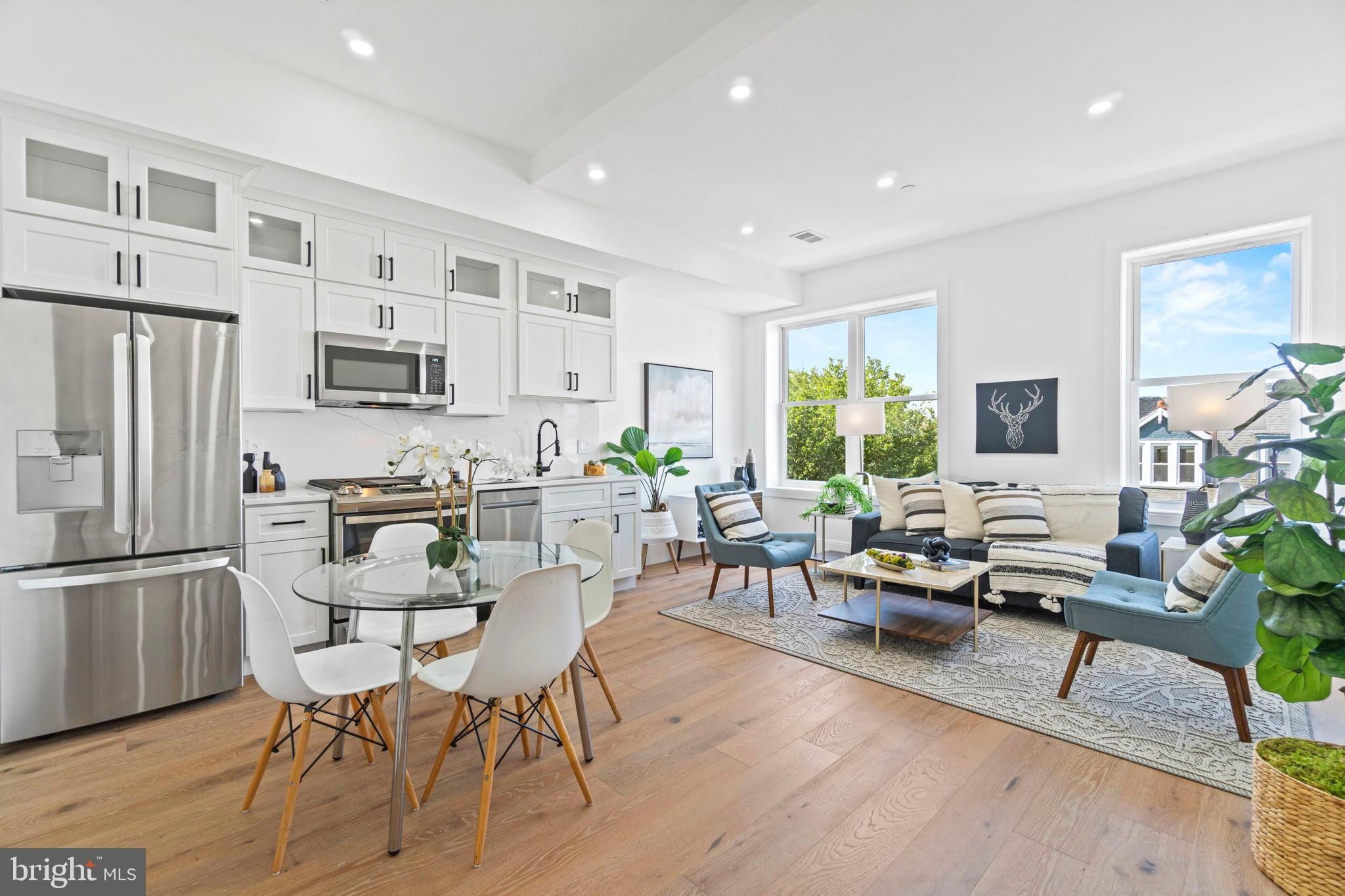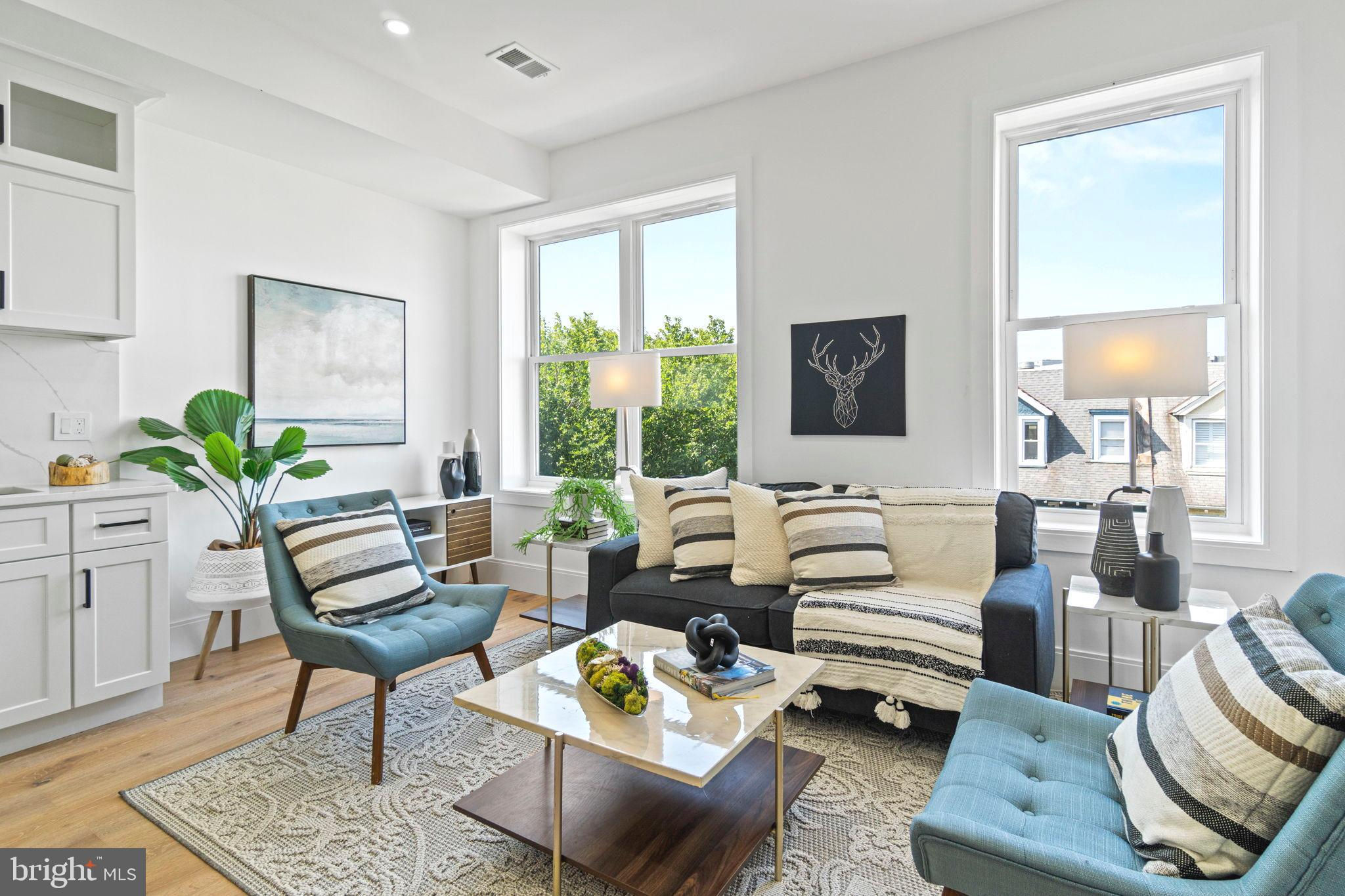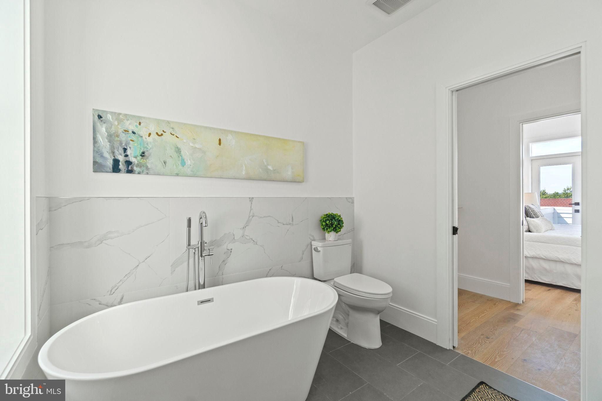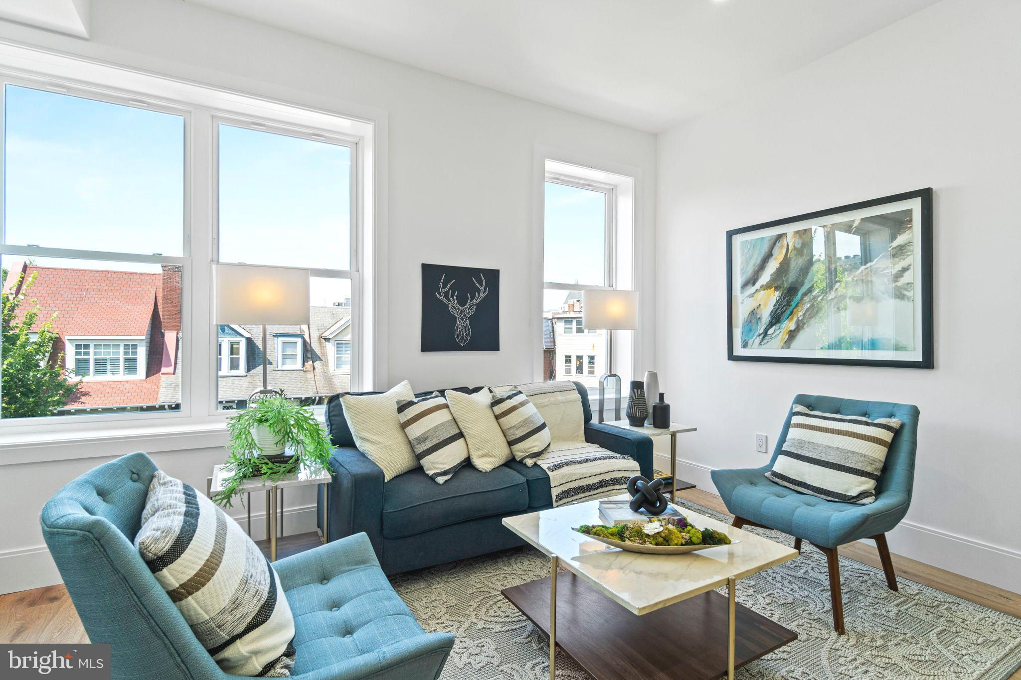 BRAND NEW LUXURY PENTHOUSE CONDO IN ADAMS MORGAN! This bright and open two-level luxury condo features a two bedroom, two bathroom layout with PRIVATE OUTDOOR SPACE! The main level has a nicely sized living space with area for dining and updated kitchen featuring white cabinets, quartz counters, and new stainless appliances! Down the hallway, you'll find a full stylish bathroom, W/D, and a bedroom with nice closet space. Upstairs, you'll find the relaxing primary bedroom suite with a walk-in closet, spa-like en-suite bathroom with separate soaking tub, chic glass shower and double vanity. The primary bedroom also has a LARGE PRIVATE BALCONY that provides beautiful natural light and is the perfect place to relax and enjoy the view! The building is pet-friendly and has a low monthly fee too. The Adams Morgan location can't be beat- close to Harris Teeter, popular parks, and all the restaurants and nightlife that Adams Morgan has to offer! Photos shown of Unit #7, but finishes and layout are similar.