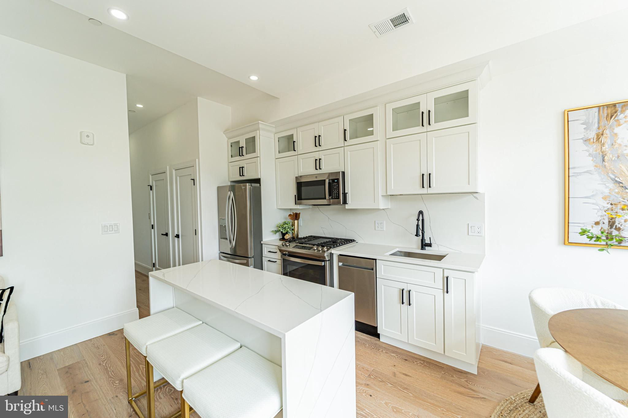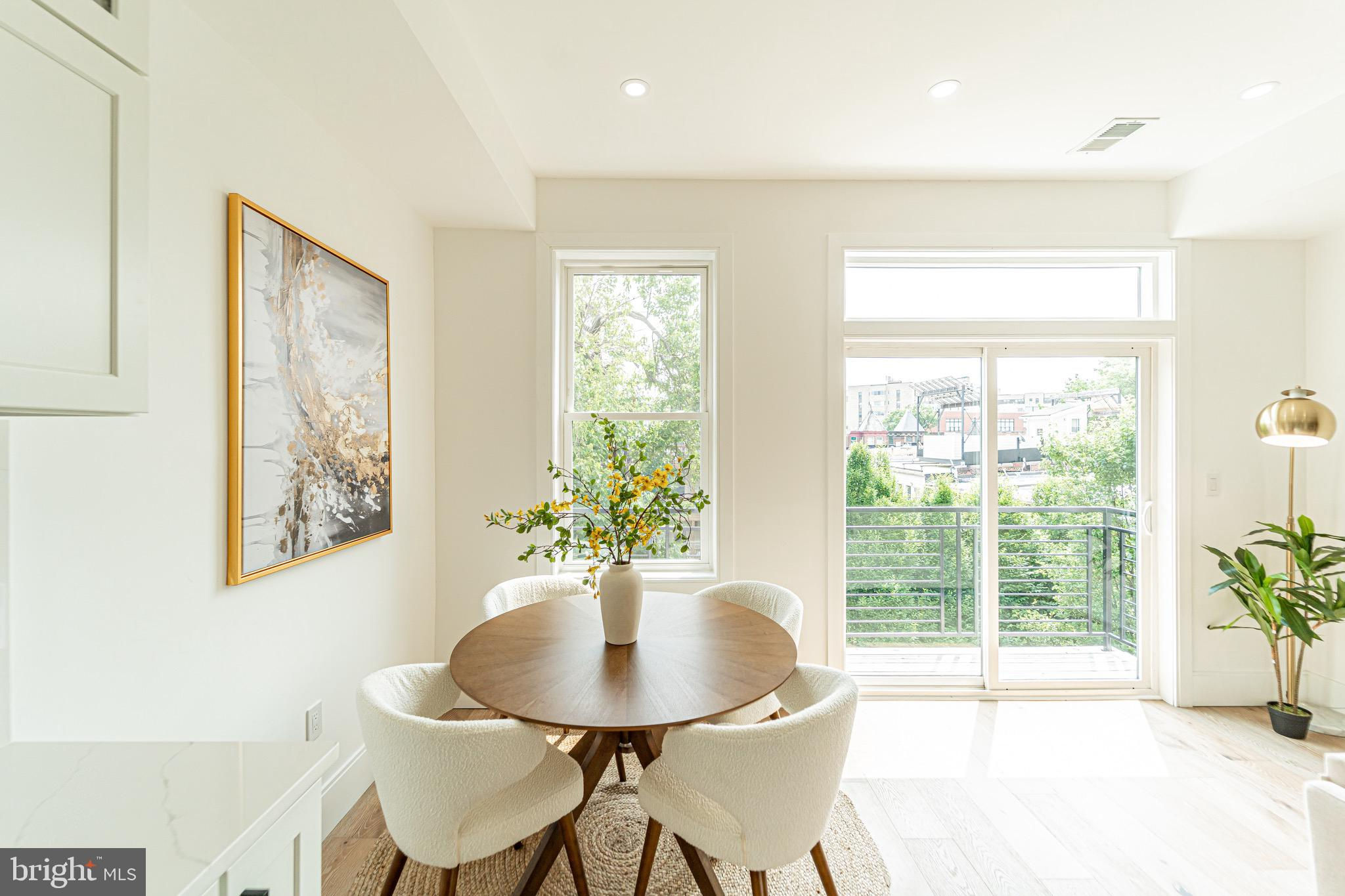BRAND NEW CONSTRUCTION. Elevated Living with Warmth & Style – Penthouse Unit 8 Penthouse 8 delivers sophisticated city living across two well-appointed levels, offering the perfect blend of modern design, comfort, and privacy. This 2-bedroom, 2-bath residence is flooded with natural light and features tall windows, airy ceilings, and treetop views that bring the outside in. The main level offers a gracious open-concept layout where the kitchen, dining, and living spaces flow effortlessly. Anchoring the living area is a sleek electric fireplace, adding warmth and ambiance—whether you're hosting friends or enjoying a quiet evening at home. A stylish full bathroom, in-unit laundry, and a lovely bedroom with ample closet space complete this floor. Upstairs, you'll find a true retreat: the primary suite features a spa-inspired bath with a soaking tub, frameless glass shower, fog-free lighted mirrors, dual vanities, and custom closets. The private terrace extends the living space outdoors, offering sweeping city views and the perfect spot for morning coffee or sunset wind-downs. Designed with the same modern elegance as its three-bedroom counterpart, Unit 8 offers a more streamlined layout ideal for those who want a bit less space—but all the luxury. From thermostatic fixtures to thoughtful storage and a smart, functional footprint, this home delivers style without compromise. Located in the heart of Adams Morgan, steps from Meridian Hill Park, Harris Teeter, and the neighborhood's best restaurants, shops, and nightlife. CHECK OUT ALL 4 STUNNING UNITS THAT ARE STILL AVAILABLE!
