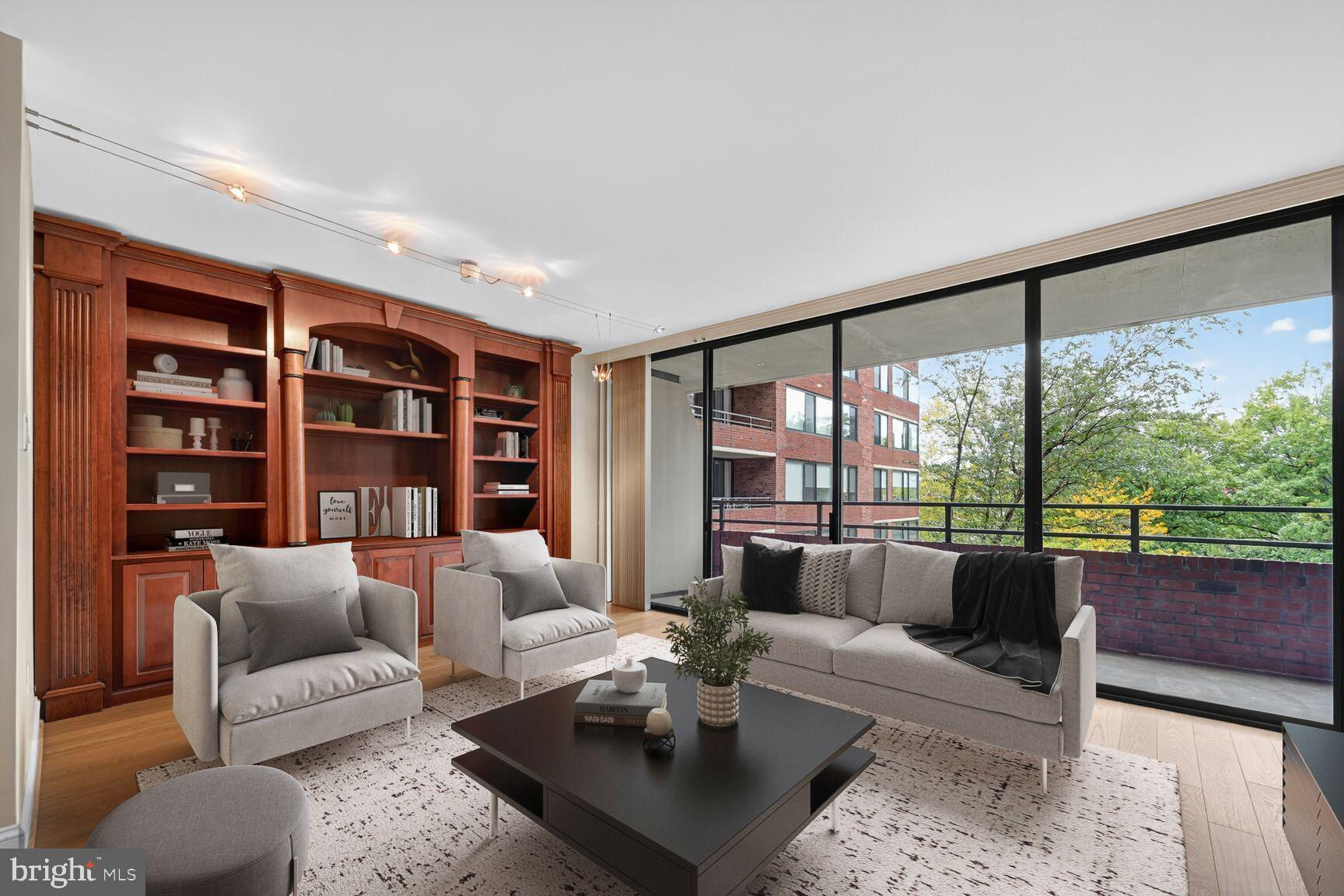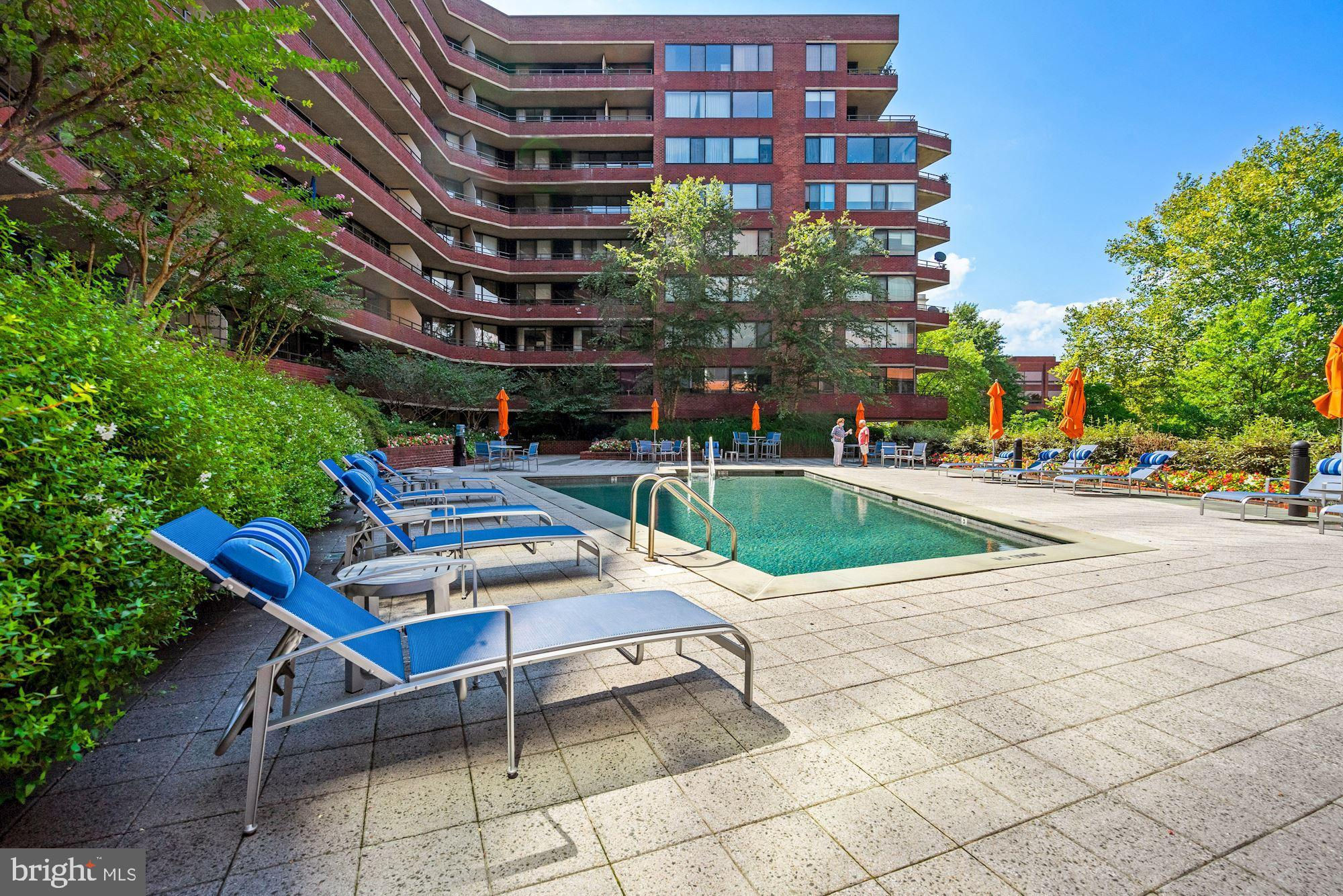 RARELY AVAILABLE -- WESTBRIDGE CONDOMINIUM - ONE BLOCK TO GEORGETOWN IN THE VIBRANT WEST END. Almost 1400 square feet of living area with fantastic sunset views from every room this spacious two bedroom, two full bath unit has brand new hardwood floors throughout. Enjoy the out door heated swimming pool and new fitness center. The open kitchen is highlighted with a large island and granite counters. There are beautiful custom cabinets and top of the line appliances - including a sub-zero refrigerator and Bosch double ovens. The living room has a lovely built-in bookcase with cabinets. Sliding floor to ceiling glass doors from every room gives you access to the balcony and Georgetown views. Convenient side by side washer and dryer are included The primary bedroom is spacious with a walk-in closet plus an additional closet. There is a double vanity and a tub and separate shower. The second bedroom also has a walk-in closet. Parking and storage unit is included in this fabulous unit. The Westbridge offers 24 hour security, concierge, full time manager, full time building engineer, plus full time porters. All of the corridors were recently updated with new lighting, carpeting and paint. The Westbridge is a 'pet friendly'" building. The West End enjoys many 5 star restaurants and hotels,. Trader Joe's is just around the corner and Foggy Bottom Metro is nearby. Short walk to World Bank, IMF and Rock Creek trails. VIRTUALLY STAGED. This lifetime unit is vacant and easy to show by appointment.
