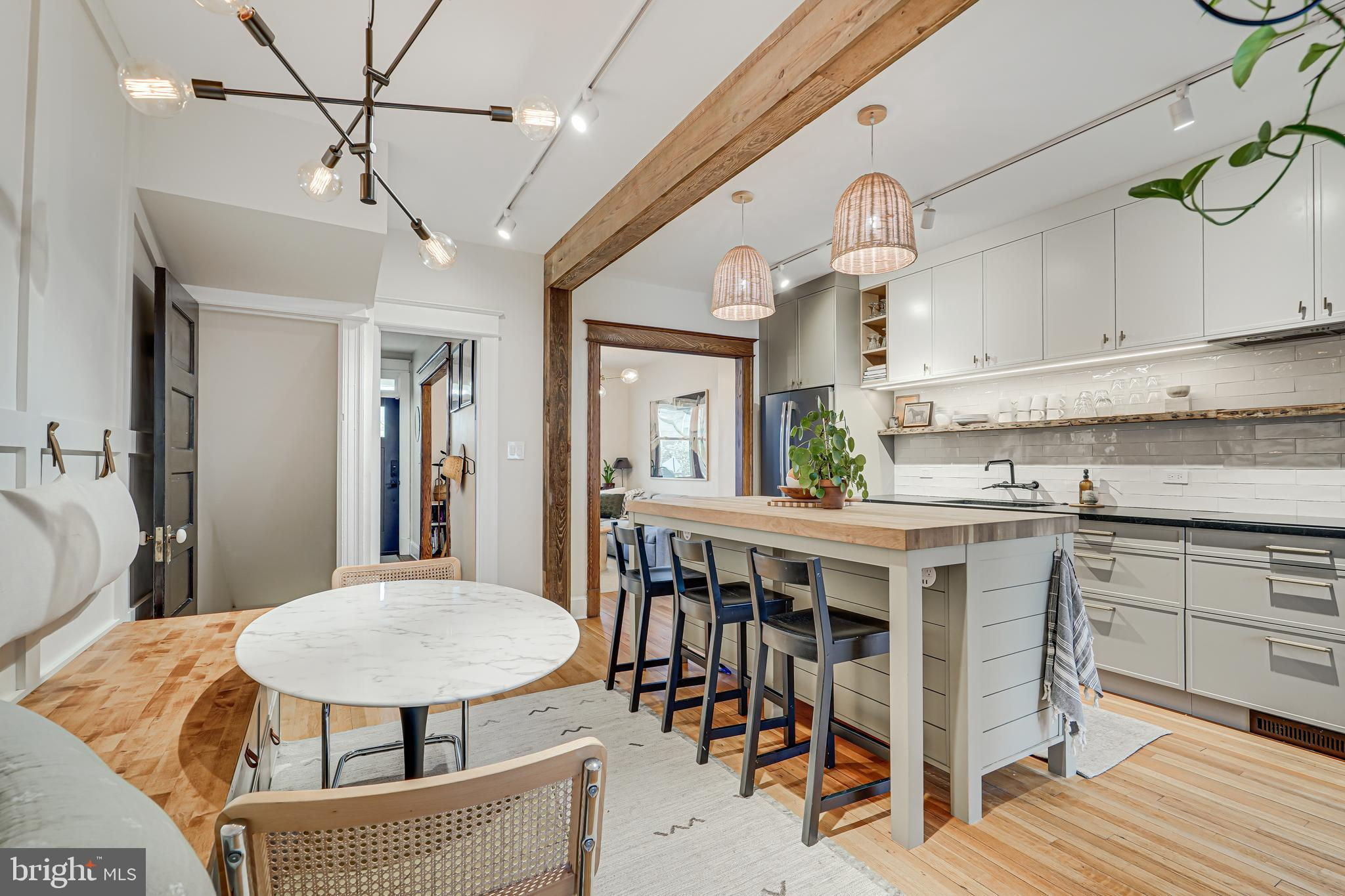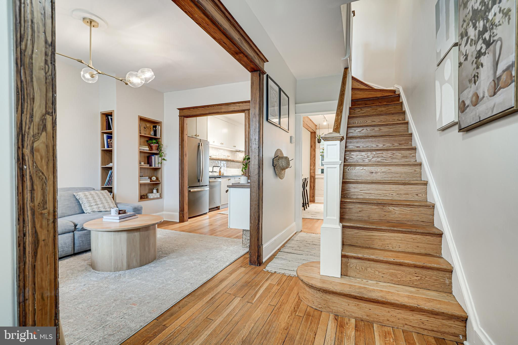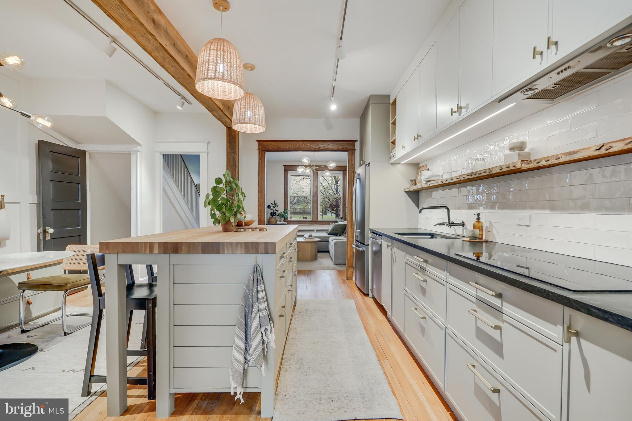 Immerse yourself in the timeless elegance of this classic 1928 DC rowhome, masterfully restored and renovated by its architect owner. Blending historical charm with modern functionality, this 3-bedroom, 2.5-bathroom abode boasts an inviting front porch that leads into an interior where original hardwood floors and meticulously refinished original chestnut trim narrate stories of the past. At the heart of this home lies a fully renovated kitchen, highlighted in SemiStories Blog and the Washington Post for its white and sage modern shaker cabinetry, soapstone counters, and a bespoke island with seating centered around new GE appliances and integrated under-cabinet lighting. This culinary haven adjoins a dining area designed for gatherings, enhanced by a dining banquette with storage. Other updates include a new gas furnace and heat pump, new insulation in the attic, a full-house water filtration system, and upgraded electrical and plumbing systems, marrying the legacy of the past with modern living conveniences. A newly added half bath on the main level features a wall-hung toilet and subway tile surround, complemented by built-in cabinetry for stylish storage solutions. The home's thoughtful renovations extend upstairs, where a second washer and dryer, a spacious rear bedroom with abundant natural light, and a primary bedroom at the front exemplify comfortable living. The hall bathroom, both renovated and expanded, mirrors the home’s commitment to elegance and utility with a new tub, vanity, toilet and skylight. The lower level introduces a fully finished walkout basement with a full bath, enhancing the living space. Outside, the fully fenced backyard offers a versatile outdoor area with alley access for off-street parking. With significant updates like central heating, cooling, a new front porch roof, and kitchen appliances all less than five years old, this home melds the legacy of the past with the conveniences of modern living, creating a truly enchanting living experience. Nestled in the heart of Edgewood, this home sits in a neighborhood that feels like a well-kept secret amidst the vibrancy of the city. The recent addition of Bryant Street's amenities—a collection of bars, restaurants, and entertainment options, including The Bevy Food Hall with bars and restaurants including Alegria, Taquiera Habanero, Grassfed Griddle, Tiger Sugar, neighborhood HIIT fitness studio F45, Alamo cinema and draft house and Metro bar —brings a slice of the city's best right to your doorstep. Additional phases of the Bryant St Development will bring new dining and retail options within the next few years. With the Rhode Island Ave metro station a short walk away, and the Metropolitan Branch Trail offering a scenic route to Union Market and beyond, Edgewood positions you perfectly for an enriched city life. This isn't just a home; it's a gateway to a lifestyle where the past and future harmoniously coexist, inviting you to become part of a community that's as welcoming as it is dynamic.