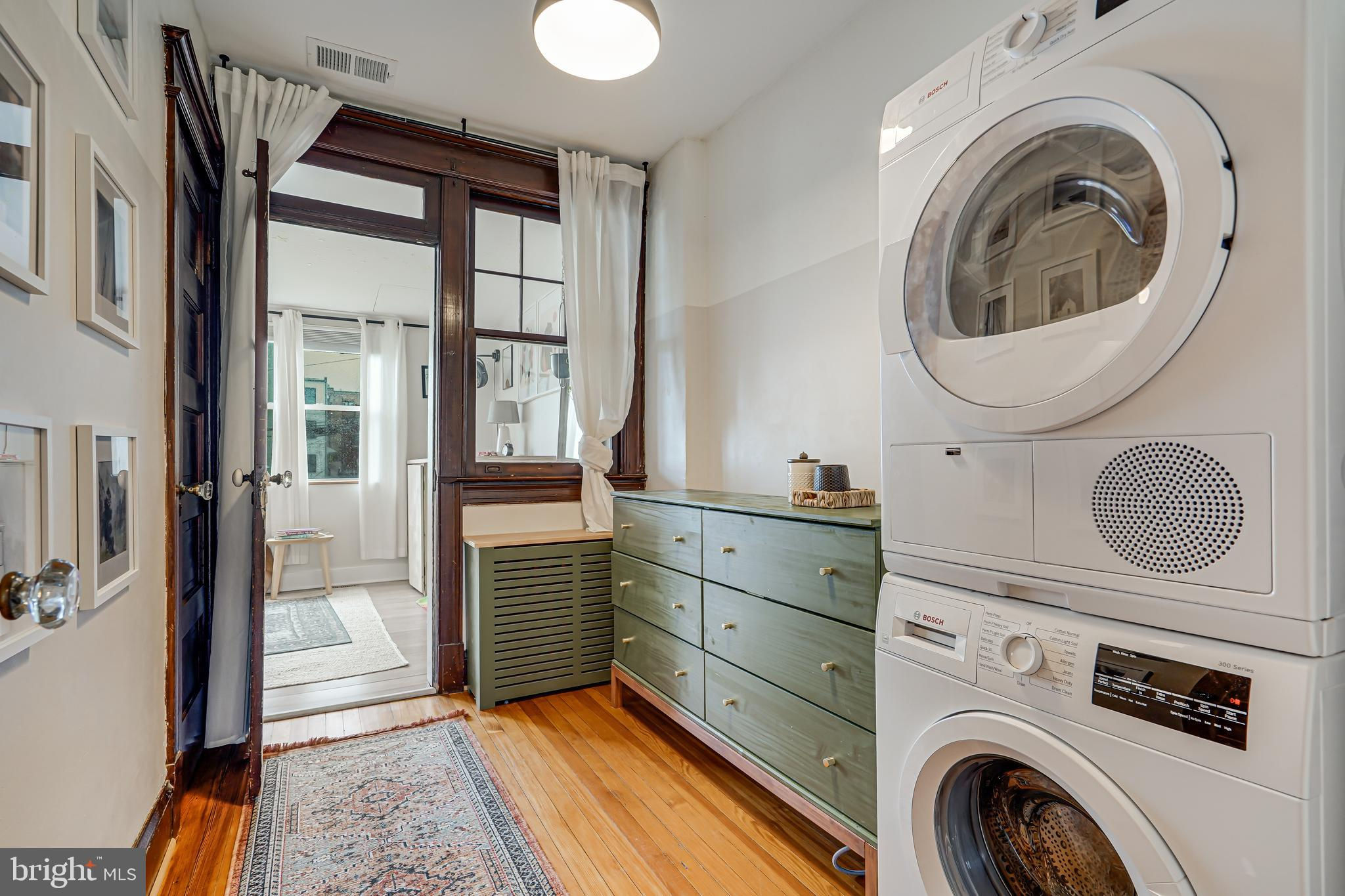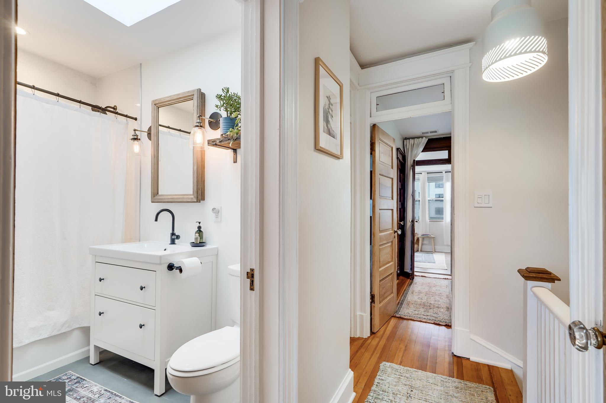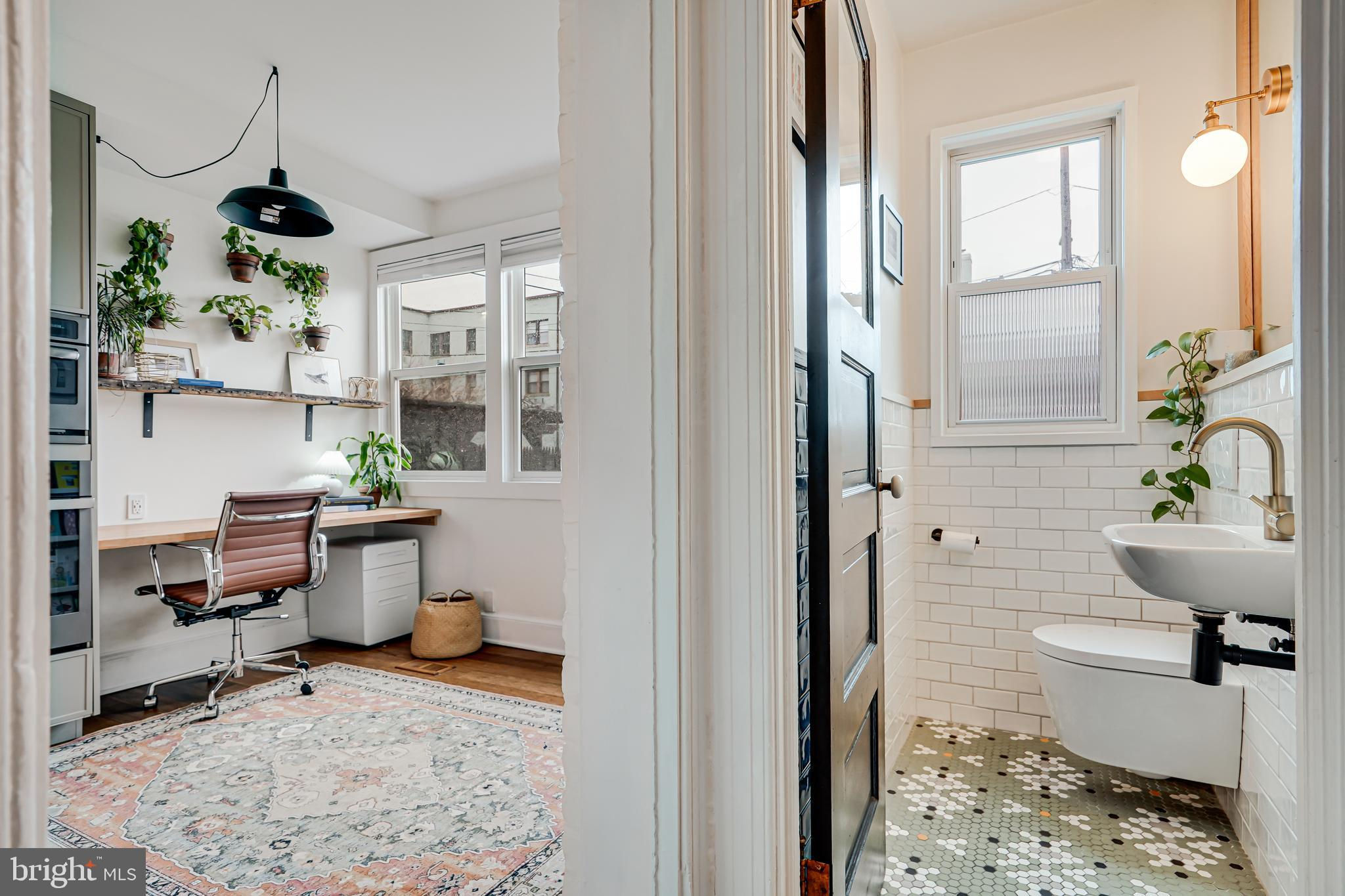 Immerse yourself in the timeless elegance of this classic 1928 DC rowhome, masterfully restored and renovated by its architect owner. Blending historical charm with modern functionality, this 3-bedroom, 2.5-bathroom abode boasts an inviting front porch that leads into an interior where original hardwood floors and meticulously refinished original chestnut trim narrate stories of the past. At the heart of this home lies a fully renovated kitchen, highlighted in SemiStories Blog and the Washington Post for its white and sage modern shaker cabinetry, soapstone counters, and a bespoke island with seating centered around new GE appliances and integrated under-cabinet lighting. This culinary haven adjoins a dining area designed for gatherings, enhanced by a dining banquette with storage. Other updates include a new gas furnace and heat pump, new insulation in the attic, a full-house water filtration system, and upgraded electrical and plumbing systems, marrying the legacy of the past with modern living conveniences. A newly added half bath on the main level features a wall-hung toilet and subway tile surround, complemented by built-in cabinetry for stylish storage solutions. The home's thoughtful renovations extend upstairs, where a second washer and dryer, a spacious rear bedroom with abundant natural light, and a primary bedroom at the front exemplify comfortable living. The hall bathroom, both renovated and expanded, mirrors the home’s commitment to elegance and utility with a new tub, vanity, toilet and skylight. The lower level introduces a fully finished walkout basement with a full bath, enhancing the living space. Outside, the fully fenced backyard offers a versatile outdoor area with alley access for off-street parking. With significant updates like central heating, cooling, a new front porch roof, and kitchen appliances all less than five years old, this home melds the legacy of the past with the conveniences of modern living, creating a truly enchanting living experience. Nestled in the heart of Edgewood, this home sits in a neighborhood that feels like a well-kept secret amidst the vibrancy of the city. The recent addition of Bryant Street's amenities—a collection of bars, restaurants, and entertainment options, including The Bevy Food Hall with bars and restaurants including Alegria, Taquiera Habanero, Grassfed Griddle, Tiger Sugar, neighborhood HIIT fitness studio F45, Alamo cinema and draft house and Metro bar —brings a slice of the city's best right to your doorstep. Additional phases of the Bryant St Development will bring new dining and retail options within the next few years. With the Rhode Island Ave metro station a short walk away, and the Metropolitan Branch Trail offering a scenic route to Union Market and beyond, Edgewood positions you perfectly for an enriched city life. This isn't just a home; it's a gateway to a lifestyle where the past and future harmoniously coexist, inviting you to become part of a community that's as welcoming as it is dynamic.