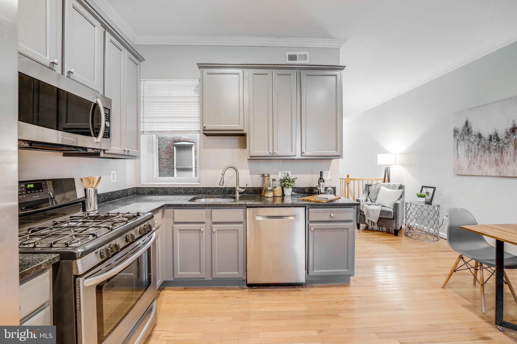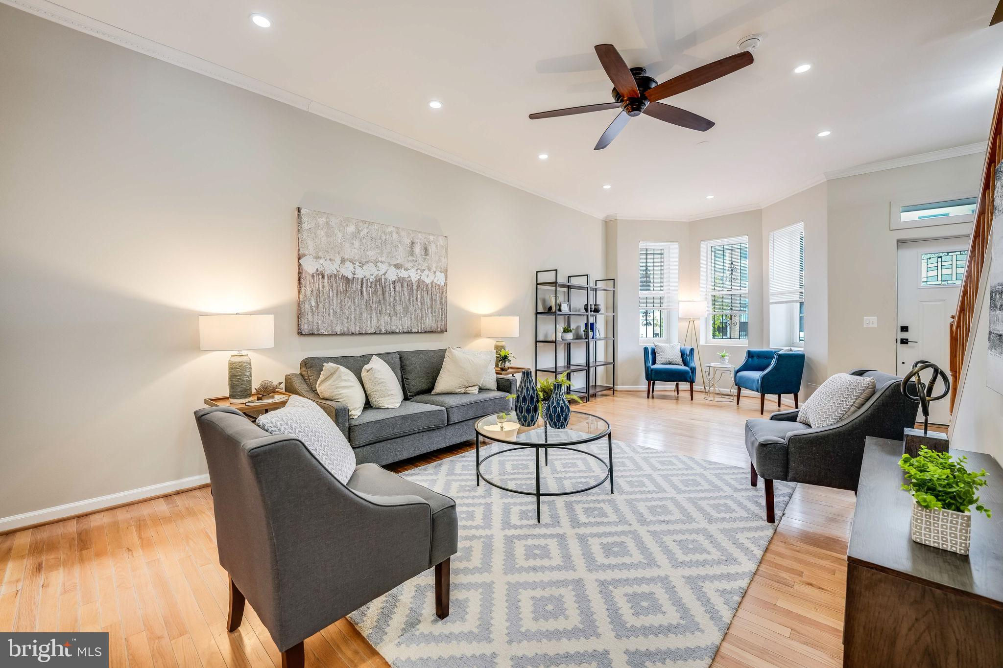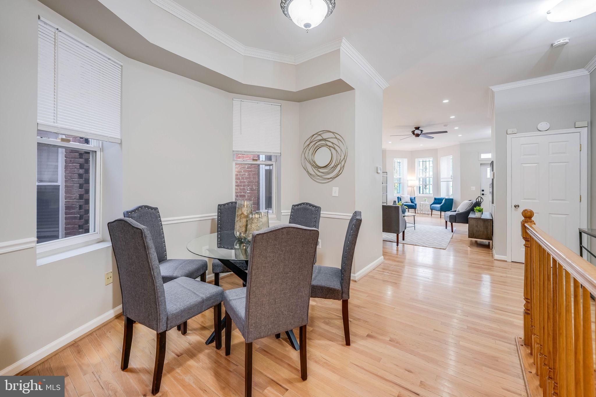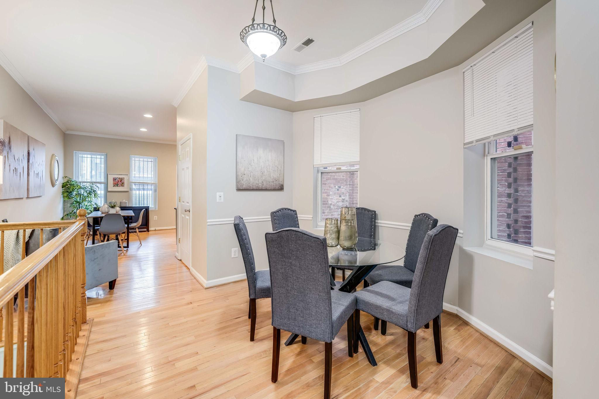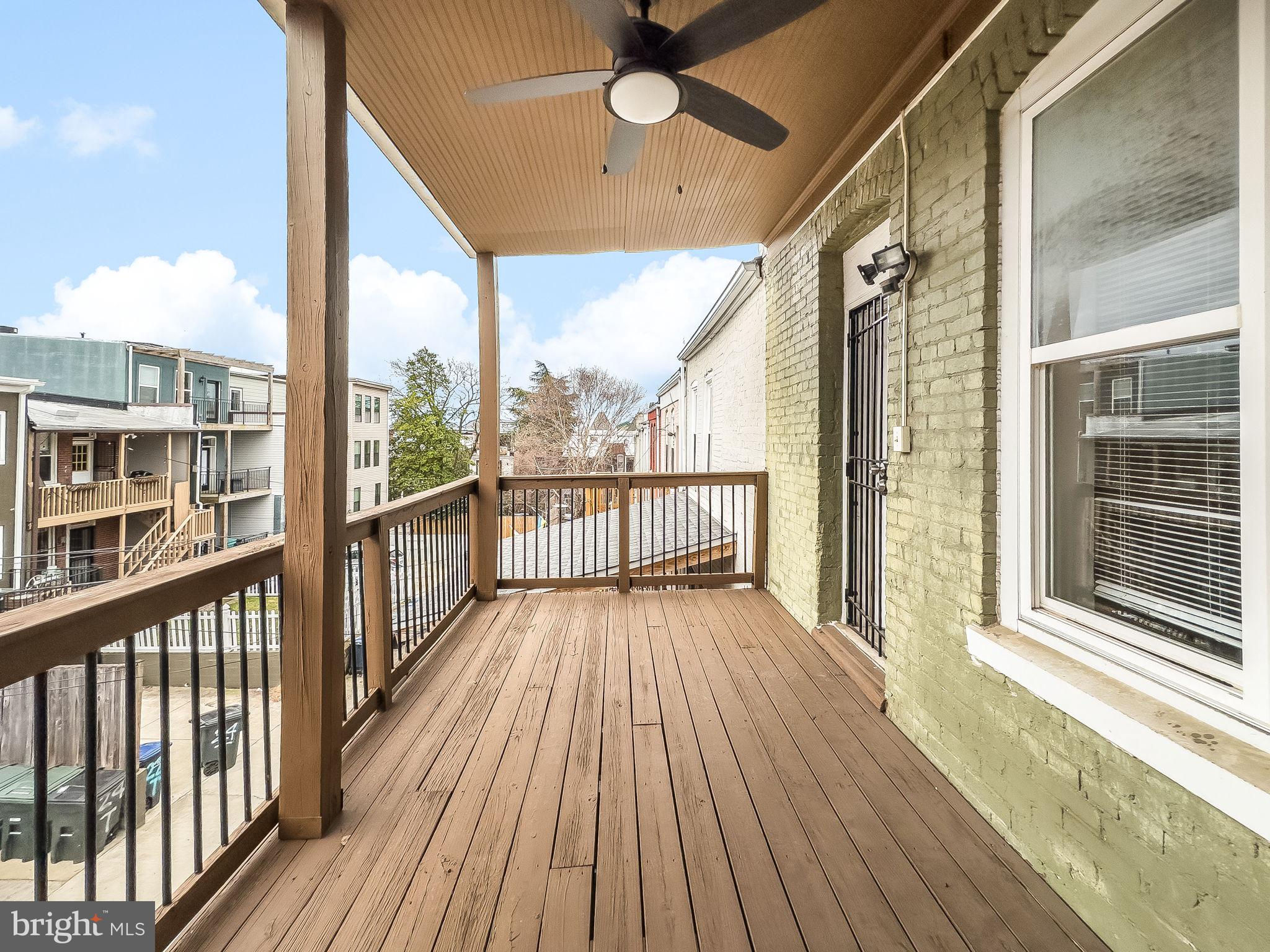 This beautiful 3 level townhome has been exquisitely maintained with many updates over the years. Pride in ownership is shown throughout the property. Boasting 2 fabulous and spacious balconies, including one off the primary bedroom, hosting guests while having your own privacy will feel like they go hand in hand. Generous space in both room sizes and a functional open floorplan, This move in ready home is as much a home for you and your guests as it is a sanctuary for you and your family. You are welcomed into a 10 foot tall and open foyer that gives you a luxury hotel like feel. Hardwood floors throughout the main and bedroom level accompanied with hardwood stairs leading to the bedroom level and the basement. A spacious kitchen complete with breakfast area and connecting entry to the first balcony in the rear of the home. Kitchen is charming with stainless steel appliances, gas cooking, granite countertops, and a picturesque window with inner courtyard views that is now uncommon in DC. Primary bedroom is spacious with plenty of light from tall windows. Primary bathroom features a standing glass shower, double vanity, and soaking jacuzzi tub. Front bedroom is generous in size as well featuring beautiful bay windows. Hallway bedroom has a window facing the courtyard for privacy. Basement features a main front entry door and a walk out rear door. Basement comes complete with laundry appliances, a wet bar, large open living room, and a bedroom suite complete with full bath. Floors are fully tiled from front to rear in this welcoming and spacious basement. Parking is available on the street or in a private parking space right behind the home. This home is truly one of a kind. It is great for both entertaining large gatherings and hosting long term guests. You will love touring this home. Home inspection report available. Staging furniture has been removed.