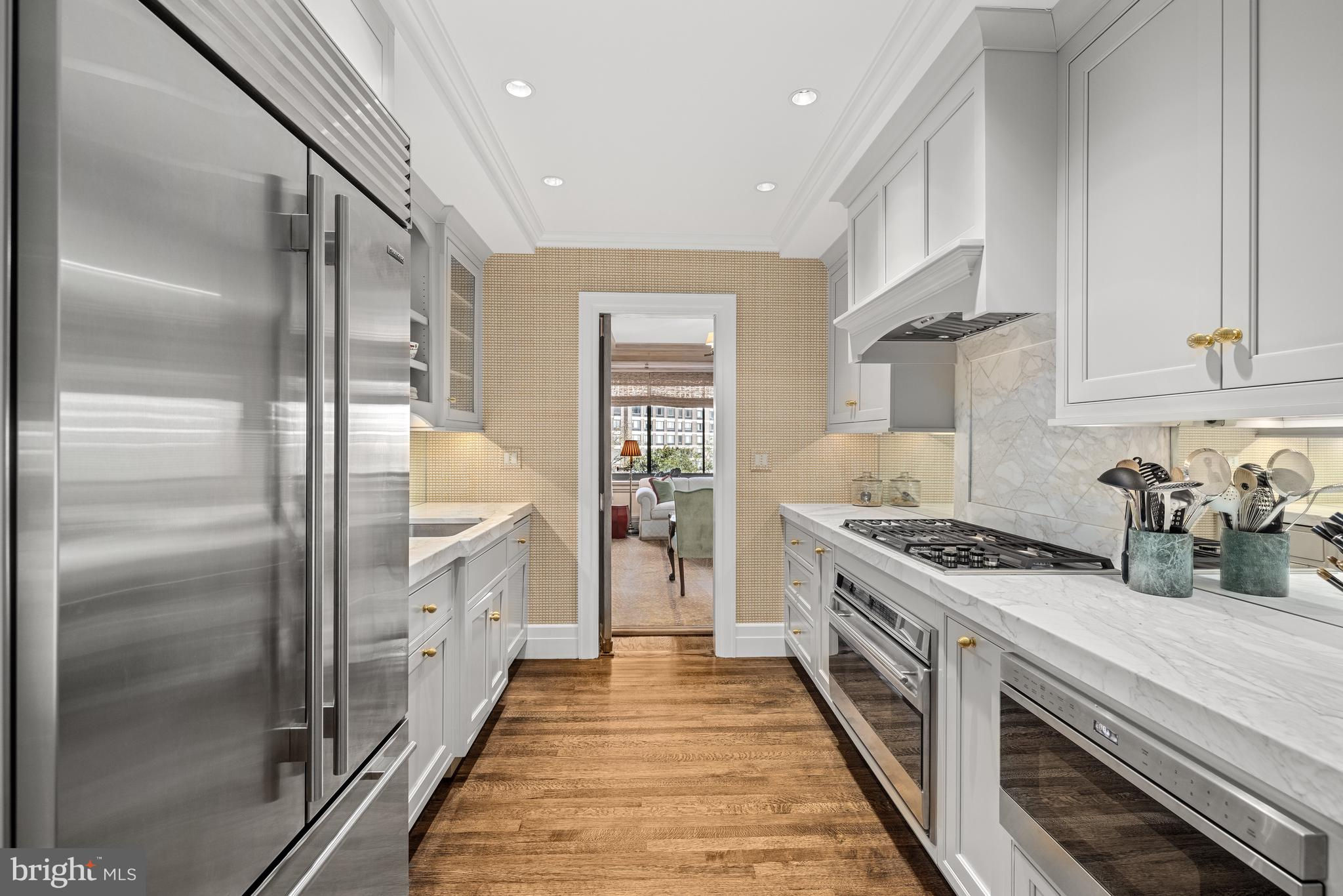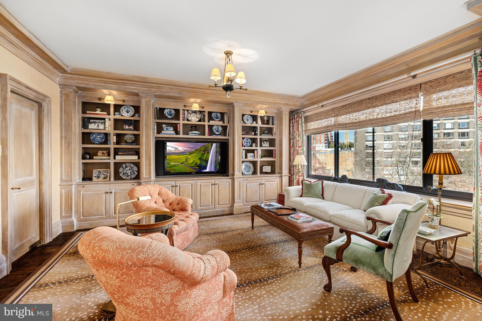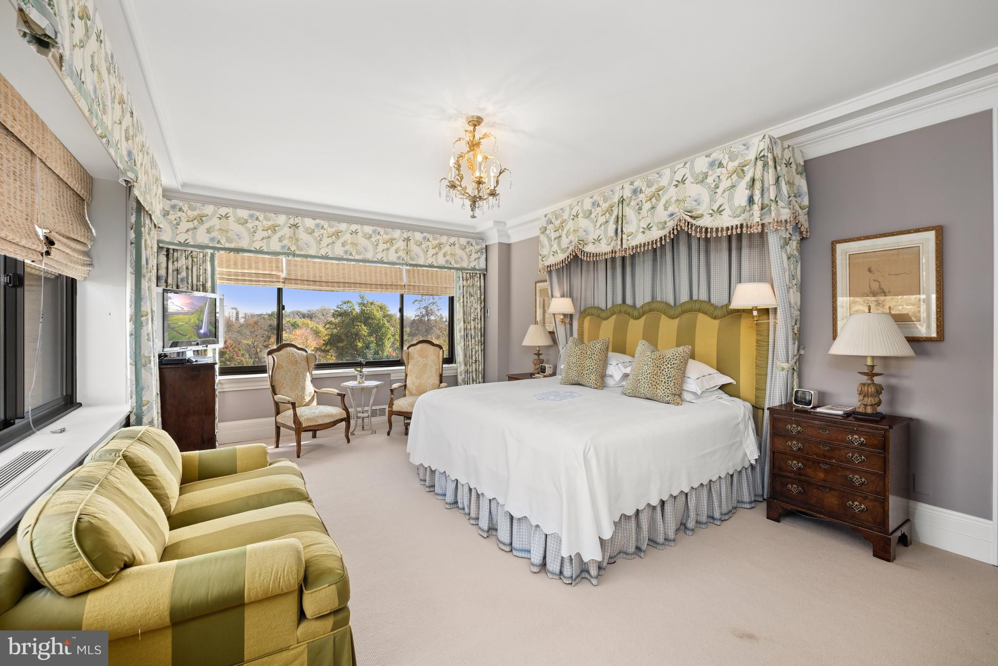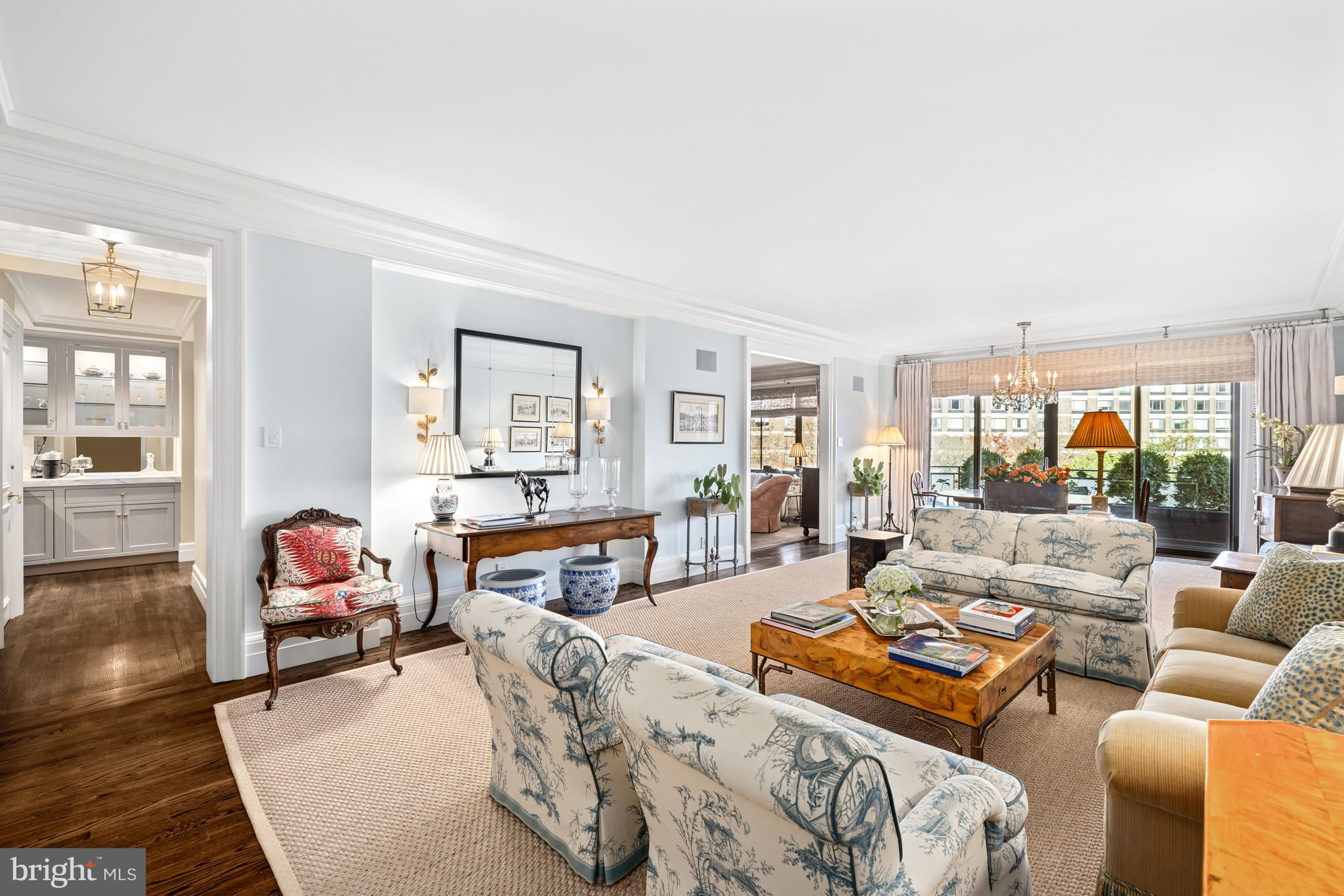 THIS IS A MUST SEE!! ABSOLUTELY STUNNING offering at Shoreham West, one of DC’s most desirable, full-service luxury residences! TURNKEY bright Corner unit, 1850 Sq Ft (Estimated) 1BR plus Family Room with secure 2-car Garage parking. LOW FEE, includes taxes and utilities, etc. This exceptional “Park Avenue” style apartment has undergone a HIGH-END RENOVATION throughout. Meticulously redesigned with discerning taste, you will notice quality craftsmanship and attention to detail in every corner. A welcoming Foyer draws you in, and you won’t want to leave! Beautifully appointed, graciously scaled rooms with 9+ foot ceilings, deep crown and baseboard moldings, enlarged doorways, Travertine marble and gleaming wood floors, custom built-ins and cabinetry, Carrera marble countertops…All add a touch of timeless elegance. The redesigned very COMFORTABLE floor plan includes an open and SPACIOUS Living and Dining Room, offering the perfect setting for formal entertaining or casual living. The custom Kitchen with top-of-the-line stainless steel appliances, wine refrigerator and separate service entrance is a chef’s delight. The handsome Family Room provides space to read, watch TV or work from home. The private Bedroom Suite is spacious with 3 closets plus a Dressing Room and luxurious Bath. The covered BALCONY, a perfect retreat to enjoy morning coffee or evening relaxation, completes this very appealing and livable apartment. The unit also comes with in-unit washer/dryer and Storage Room. The building provides for short hallways with no more than 4 units per floor. There is an expansive ROOF TOP TERRACE with multiple seating areas for residents to enjoy panoramic views of the city. The Terrace surrounds a glass enclosed Gym, Lounge or Party Room, Kitchen and BBQ. This well-maintained building offers 24/7 concierge service, uniformed doorman, an on-site manager, Laundry Room and Wine Storage Room. Pet friendly. While Shoreham West offers a tranquil residential setting, it is conveniently located next door to the Shoreham Hotel and to shopping and dining options on Connecticut Avenue and close proximity to the Zoo and public transportation, including the Woodley Park Metro. Residents can enjoy walks in the neighborhood and on the paths of Rock Creek Park.