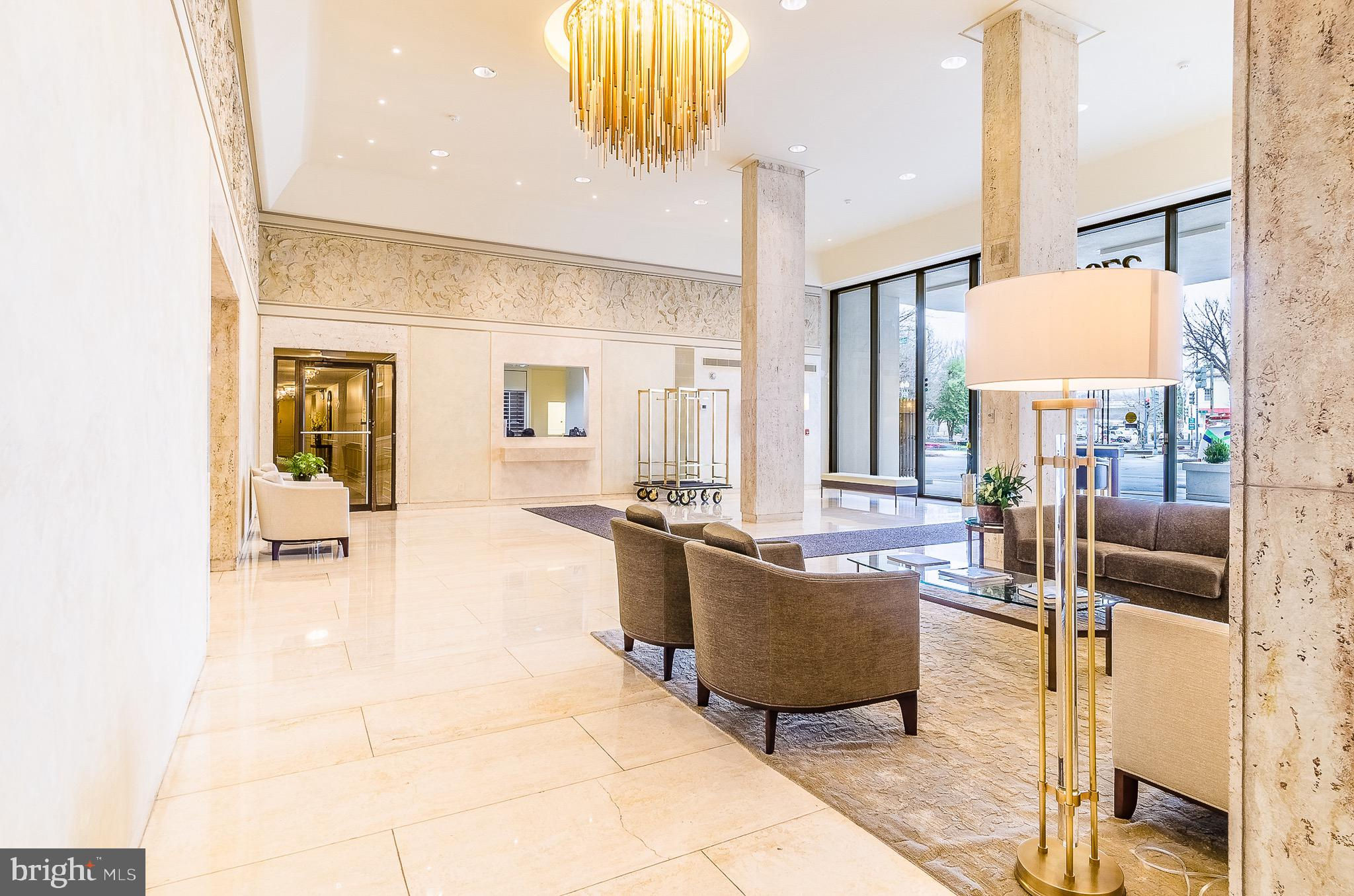 Enjoy a backyard barbecue at your in-town Watergate apartment! The amenities of a luxury building in a prime location WITH the outdoor space and easy access of a townhouse-style floor plan. This 1,735 sq ft Watergate 2 bedroom 2.5 baths residence is on 2 levels with a huge private patio. Terrific entertaining on private terrace garden with a gas grill. Floor-to-ceiling windows on both levels. Full-length glass doors lead to your private terrace space. Handsome new flooring, large bedrooms and living spaces. Open chef's kitchen with white stone counter, fine cabinetry, cooktop, and wall oven. Ample closet space. Rare washer/dryer in the apartment. All-inclusive fee includes property taxes, utilities, maintenance of HVAC and basic cable. Watergate West amenities include 24-hour front desk & doorman service, heated outdoor pool, roof terrace with spectacular river views, fitness center, beautifully landscaped gardens, plus on-site shops & restaurants. Walking distance to the Kennedy Center, Georgetown Waterfront, Foggy Bottom Metro, Watergate Hotel & Spa, and restaurants.